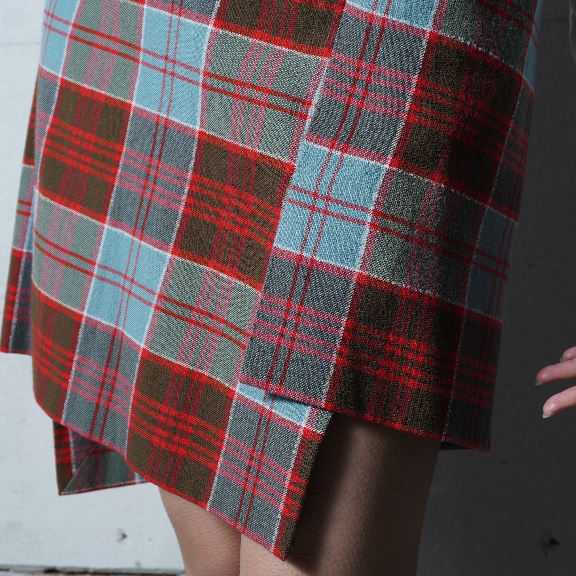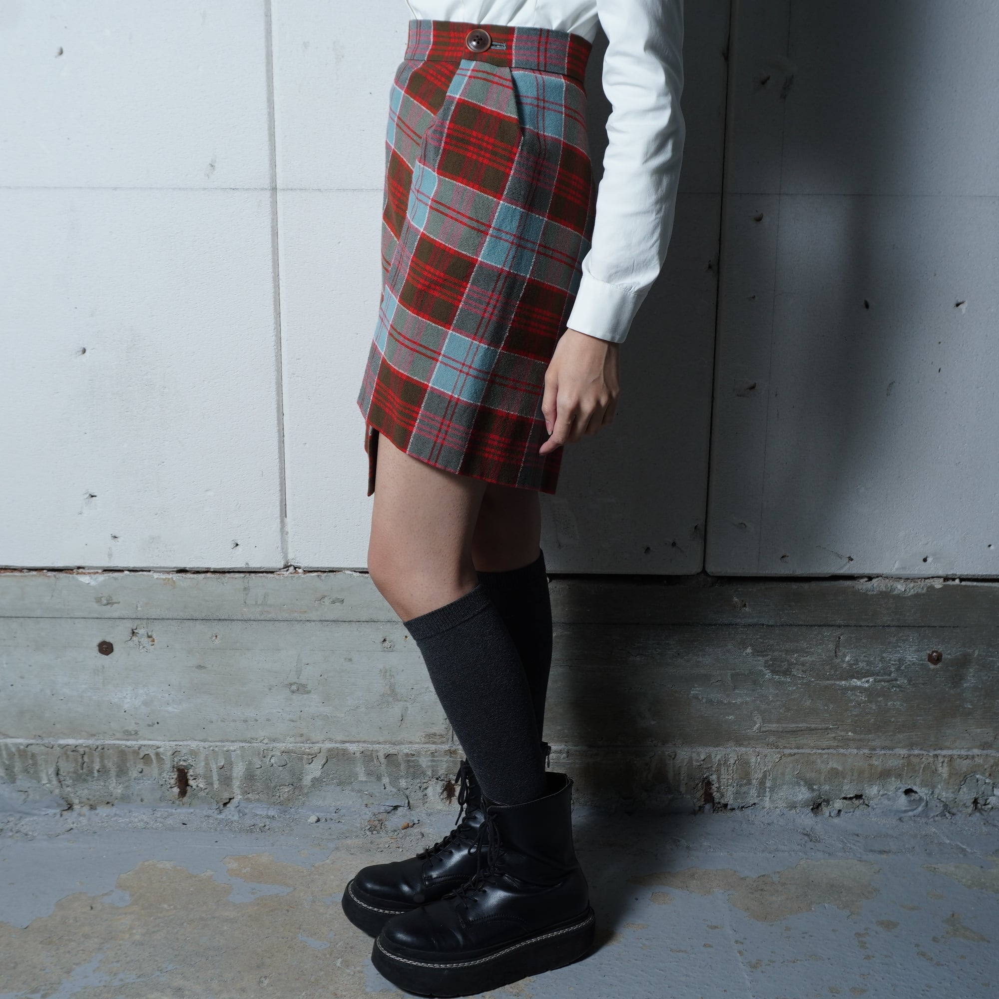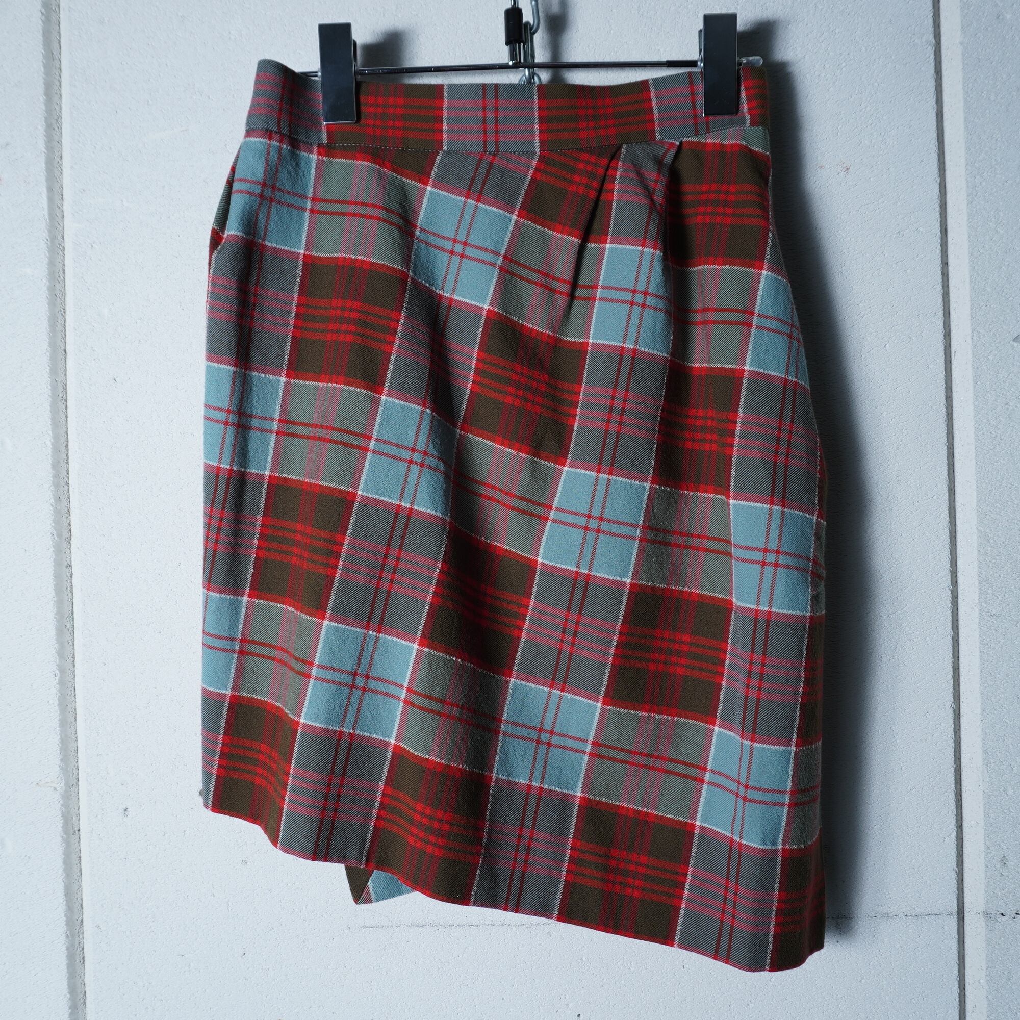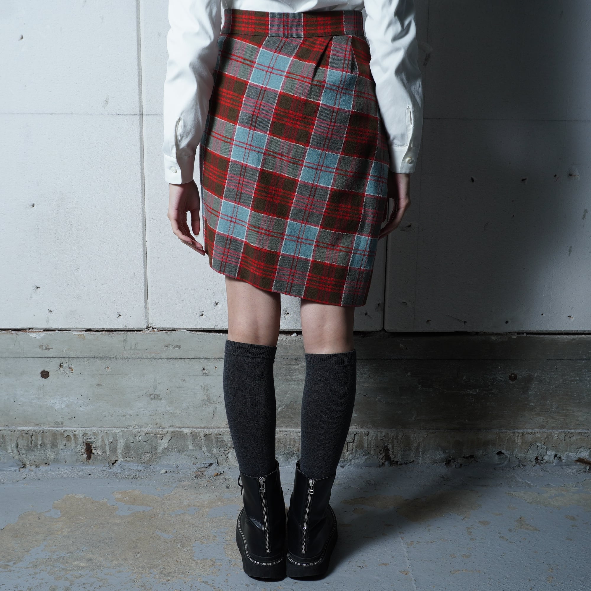 ・個性的なチェック柄と変形デザインが特徴的なタイトスカート
