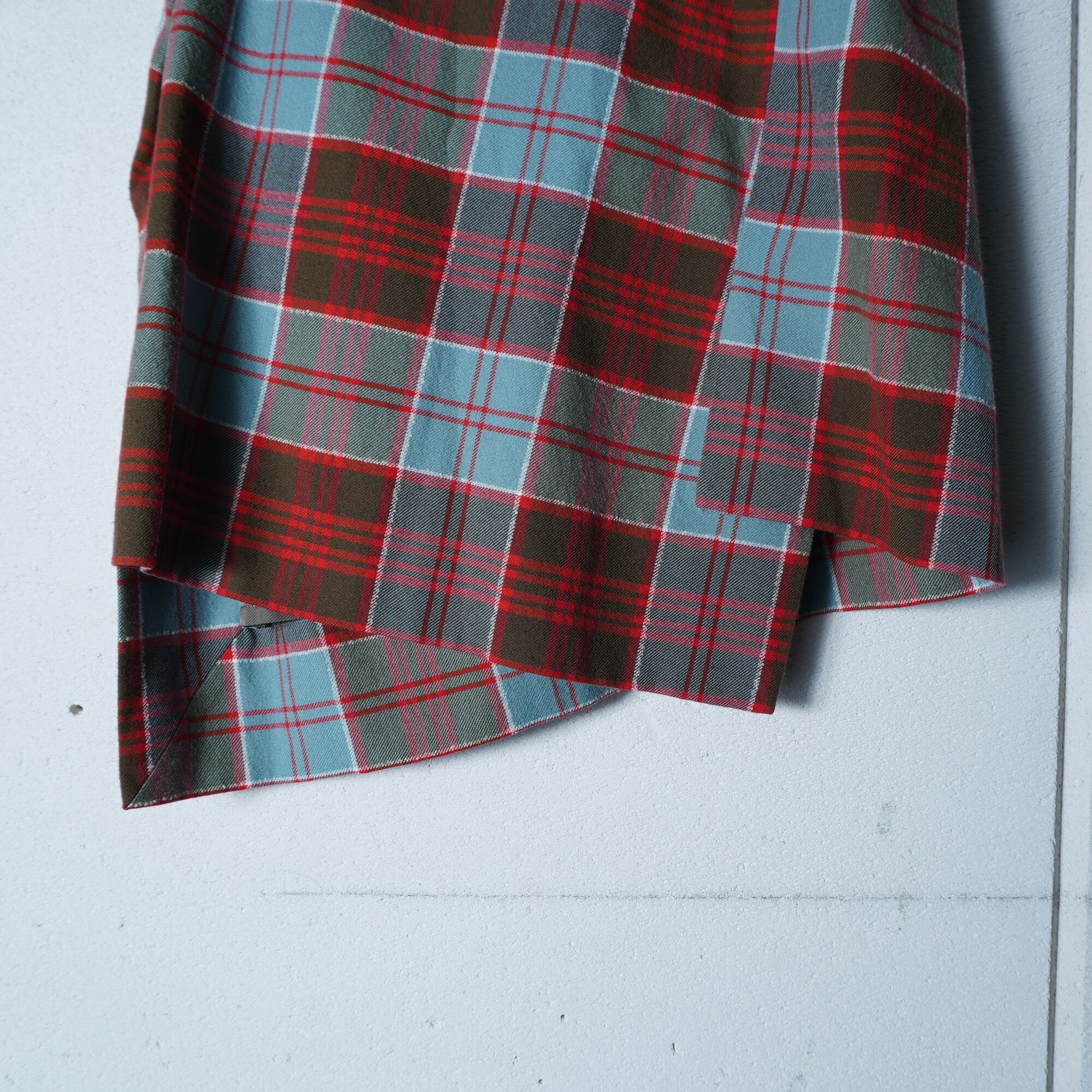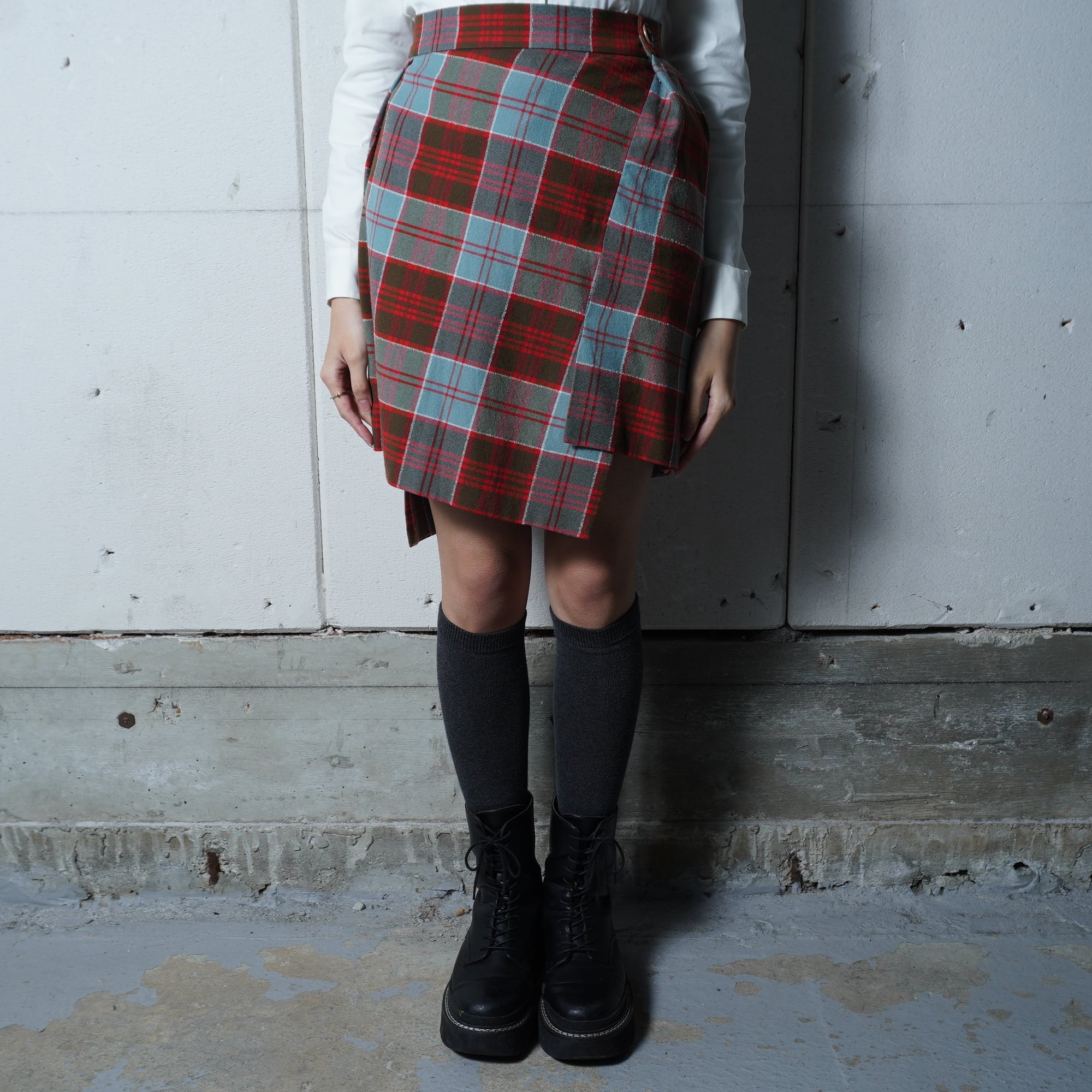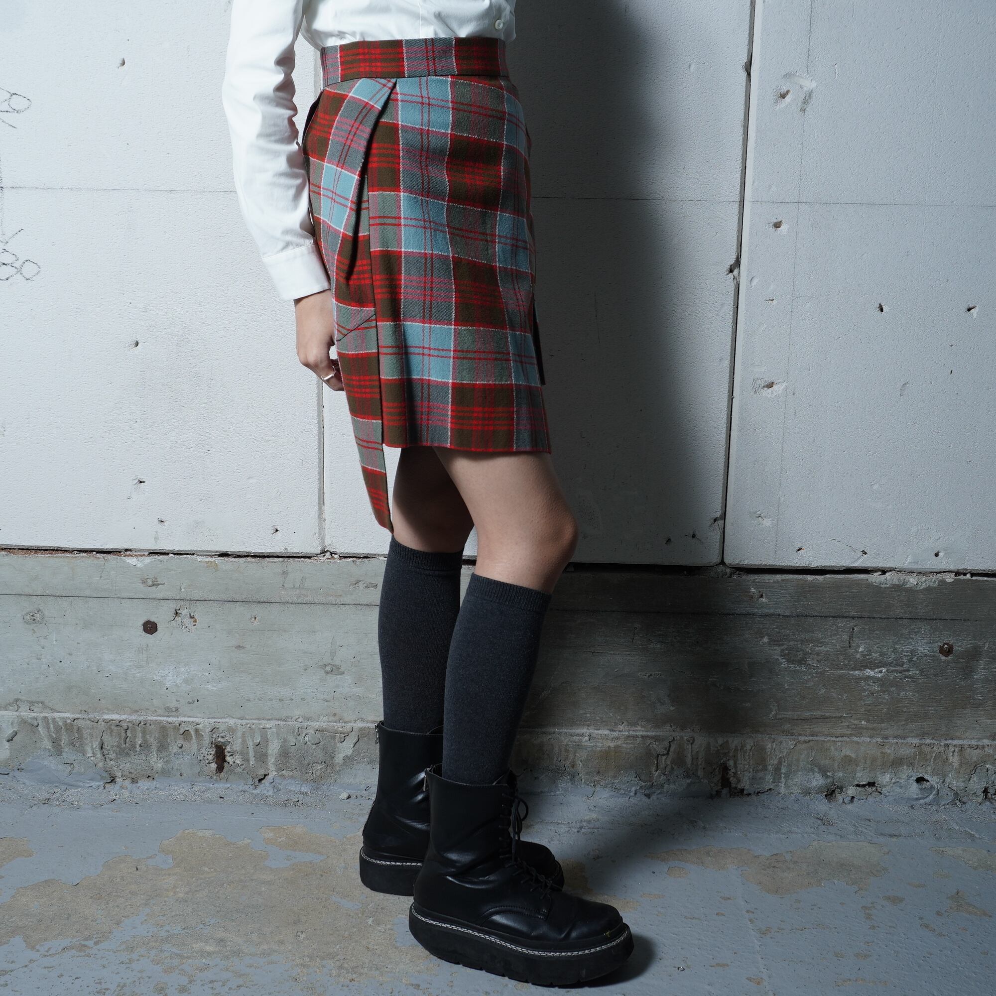 ・個性的なチェック柄と変形デザインが特徴的なタイトスカート