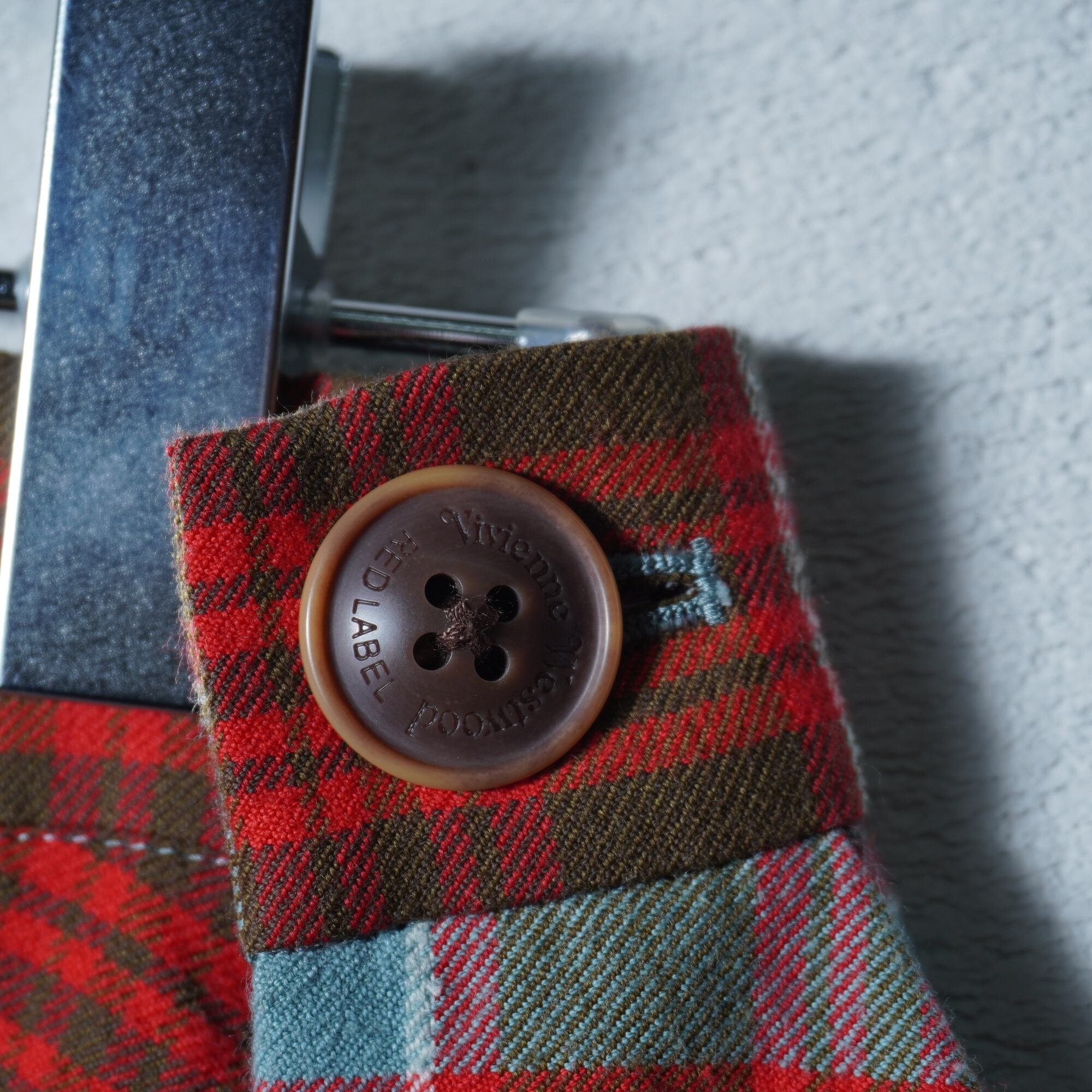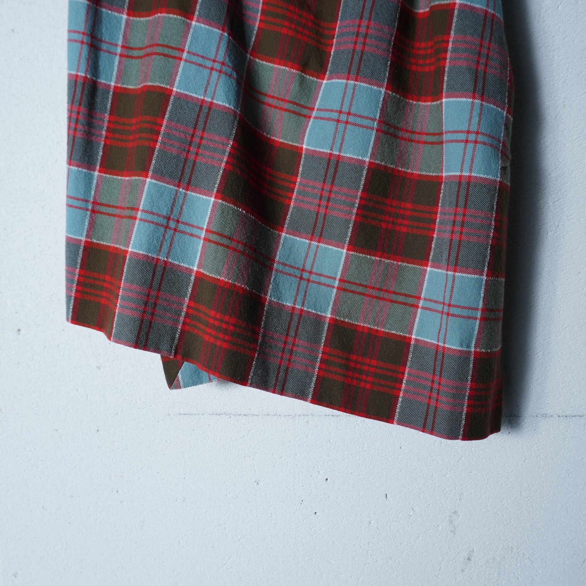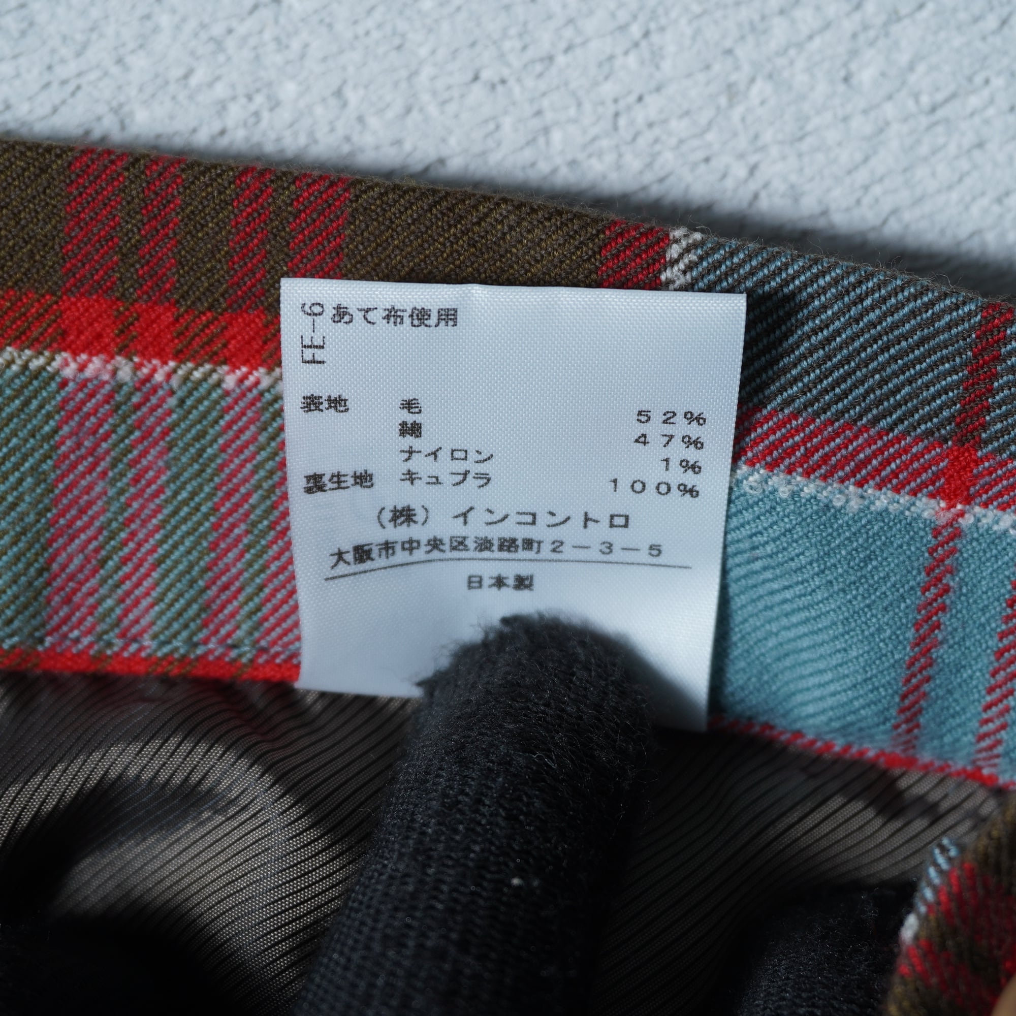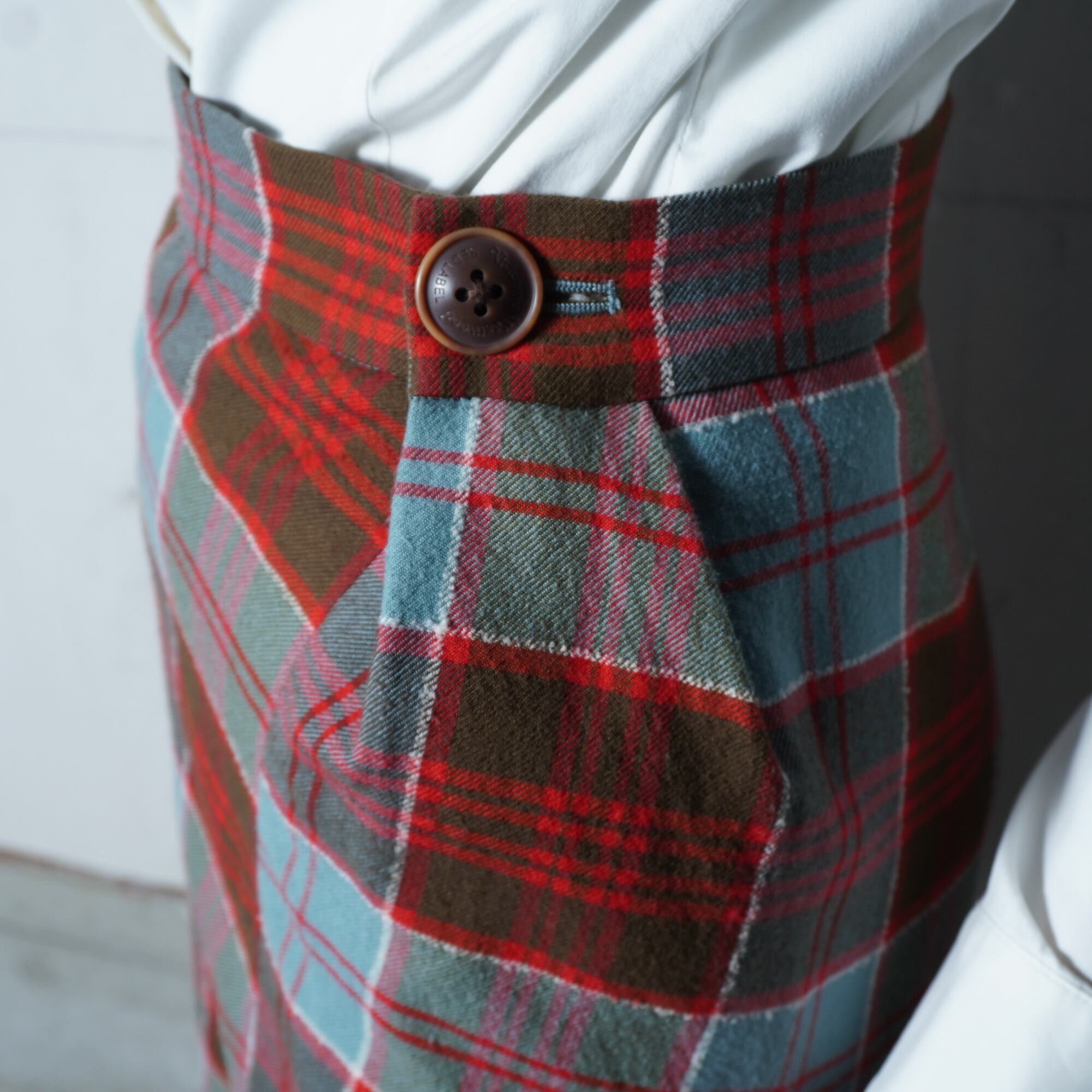 ・個性的なチェック柄と変形デザインが特徴的なタイトスカート