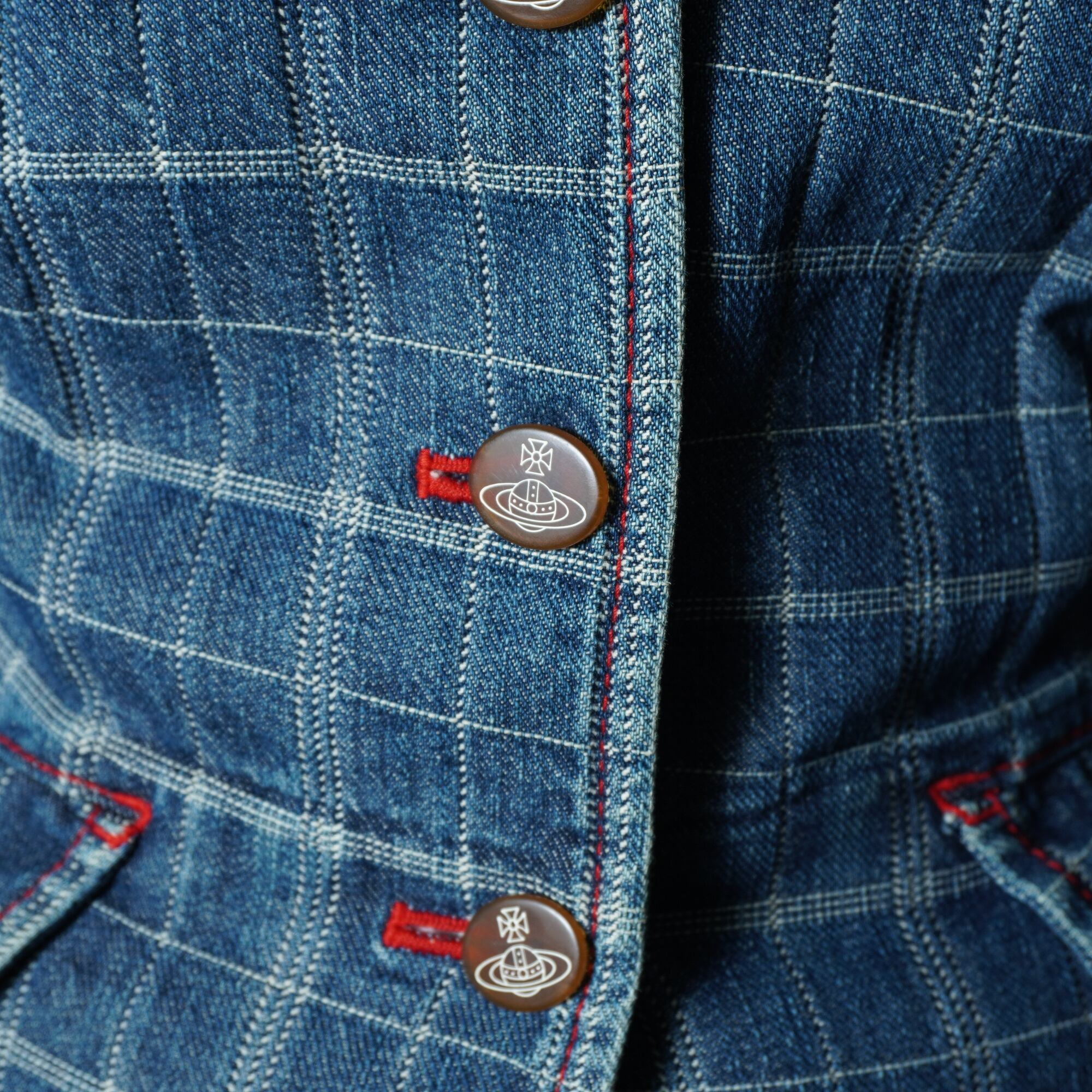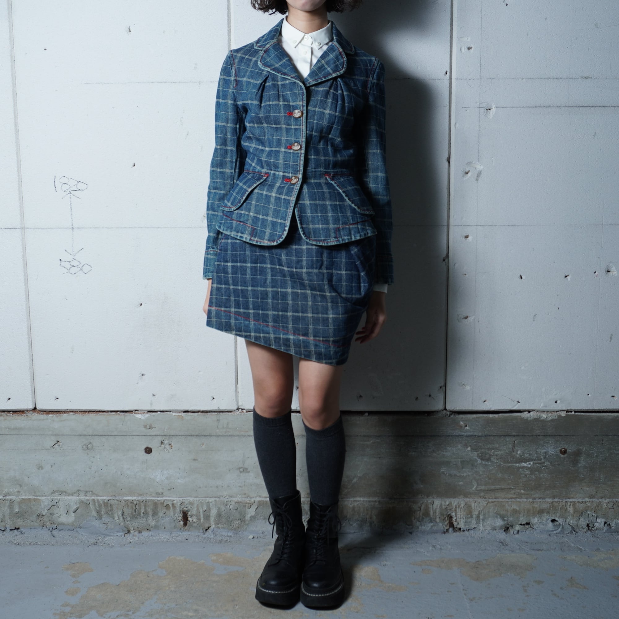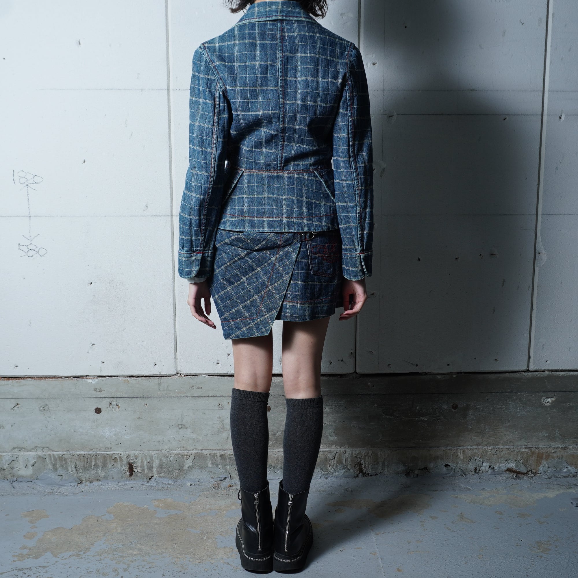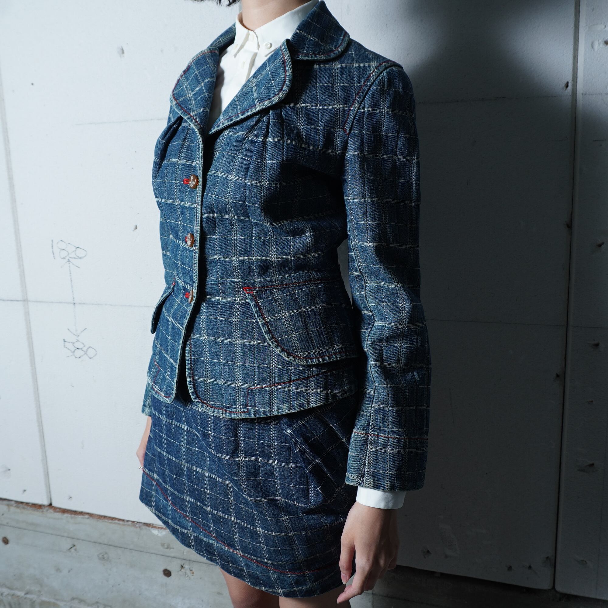 【Vivienne Westwood】ヴィヴィアンウエストウッド "オーブロゴボタン" チェックデニムジャケット・スカートセットアップ indigo