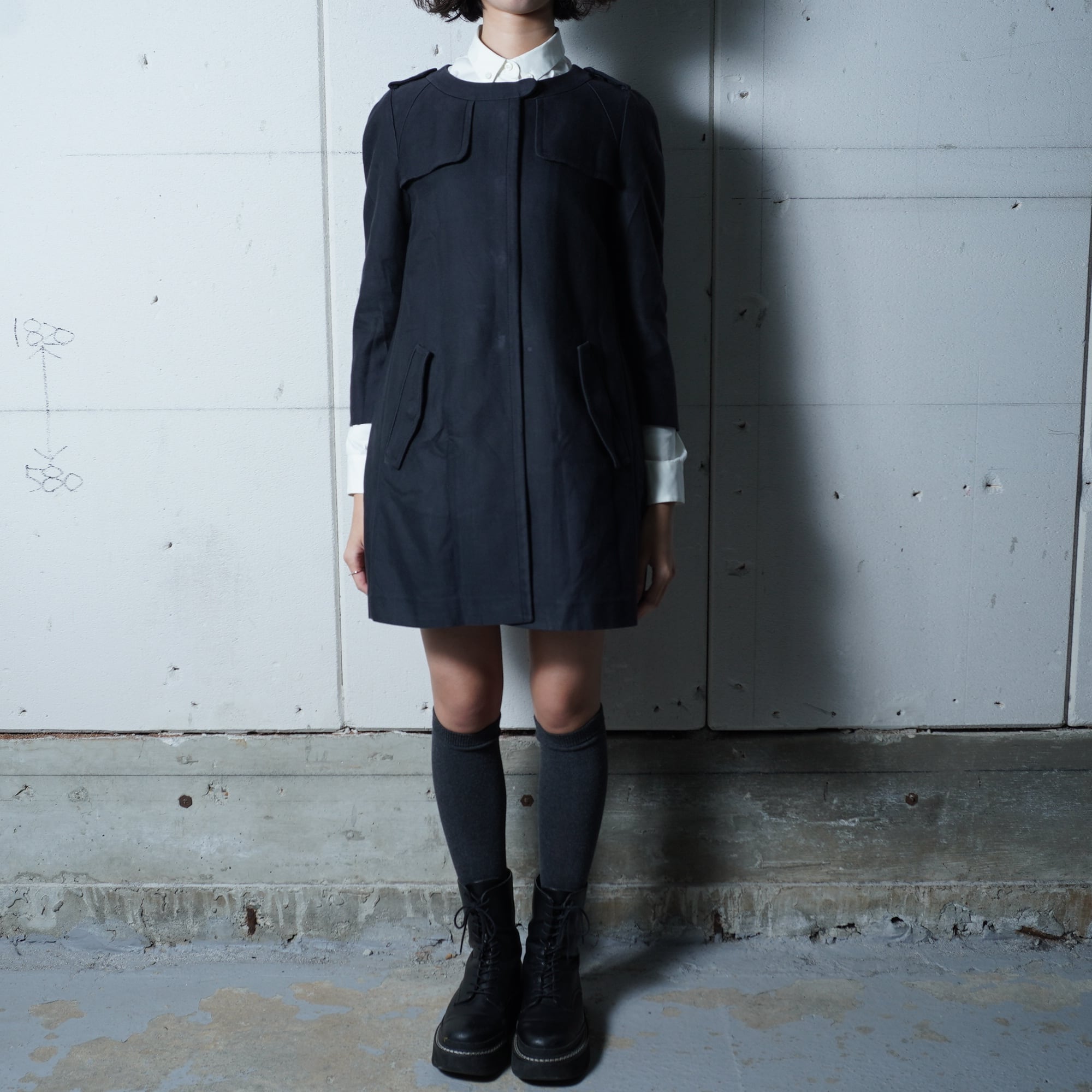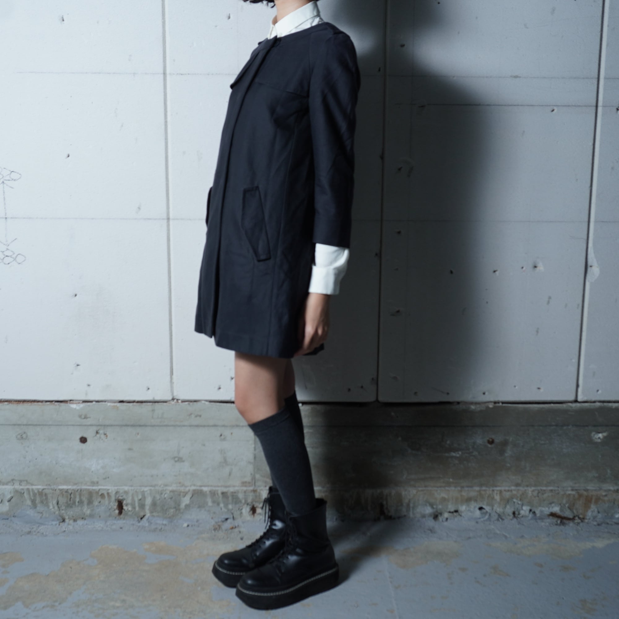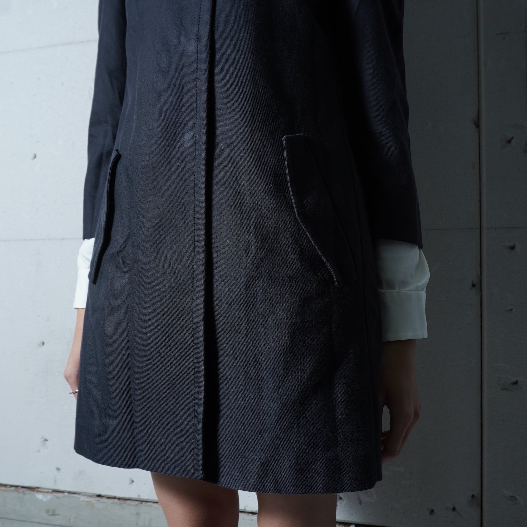 ・ノーカラー仕立てが上品さを引き立てる