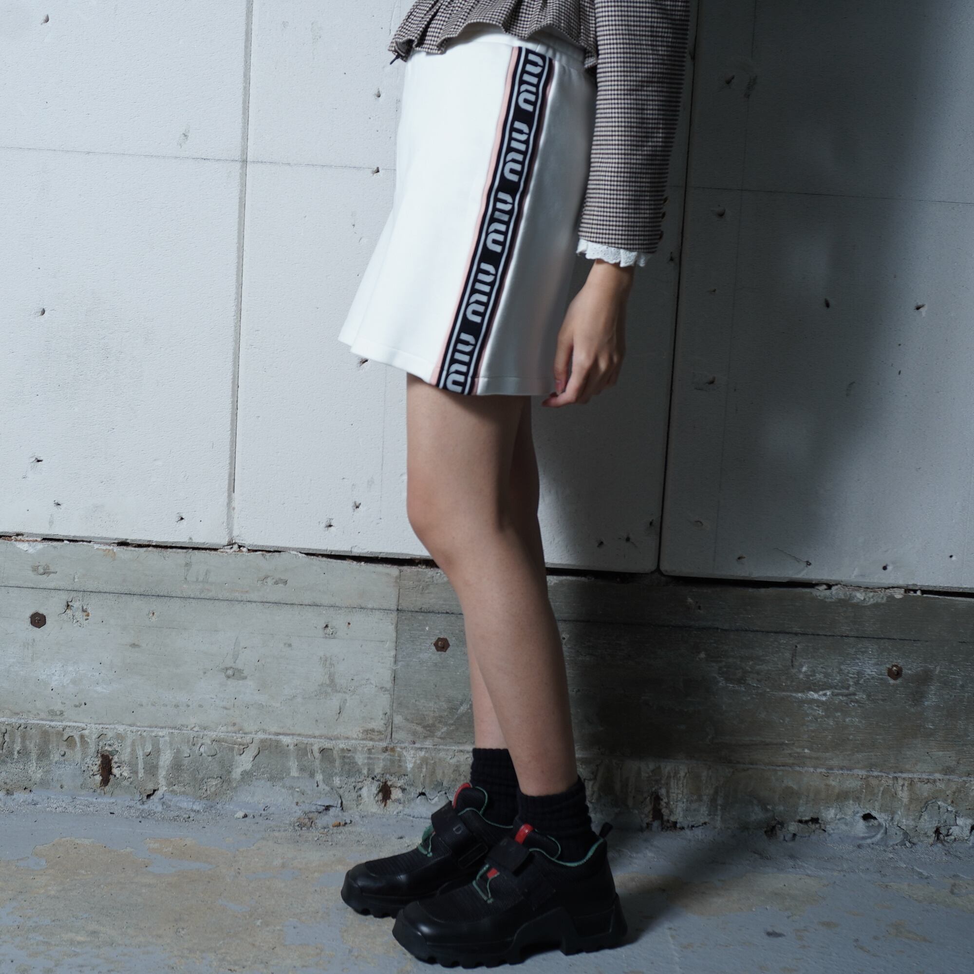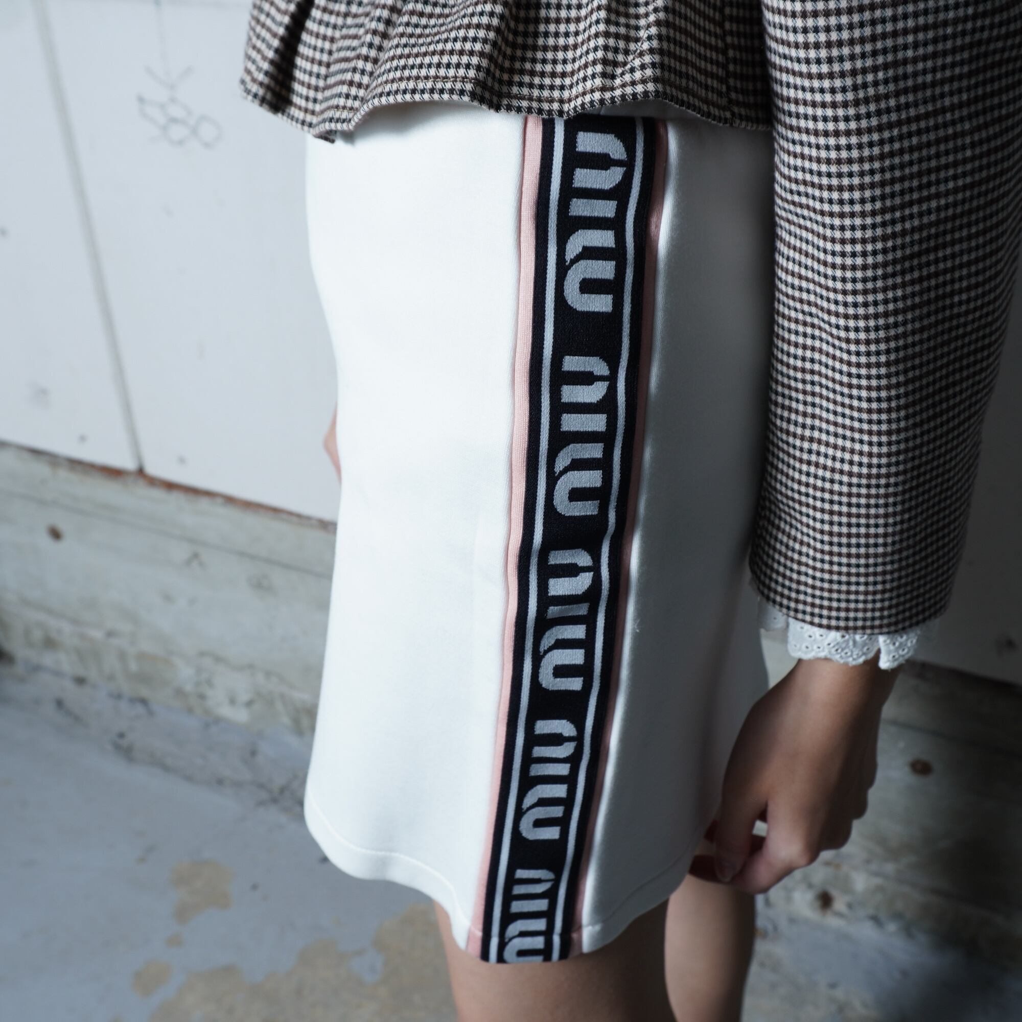 【MIU MIU】ミュウミュウ サイドロゴスウェットミニスカート white