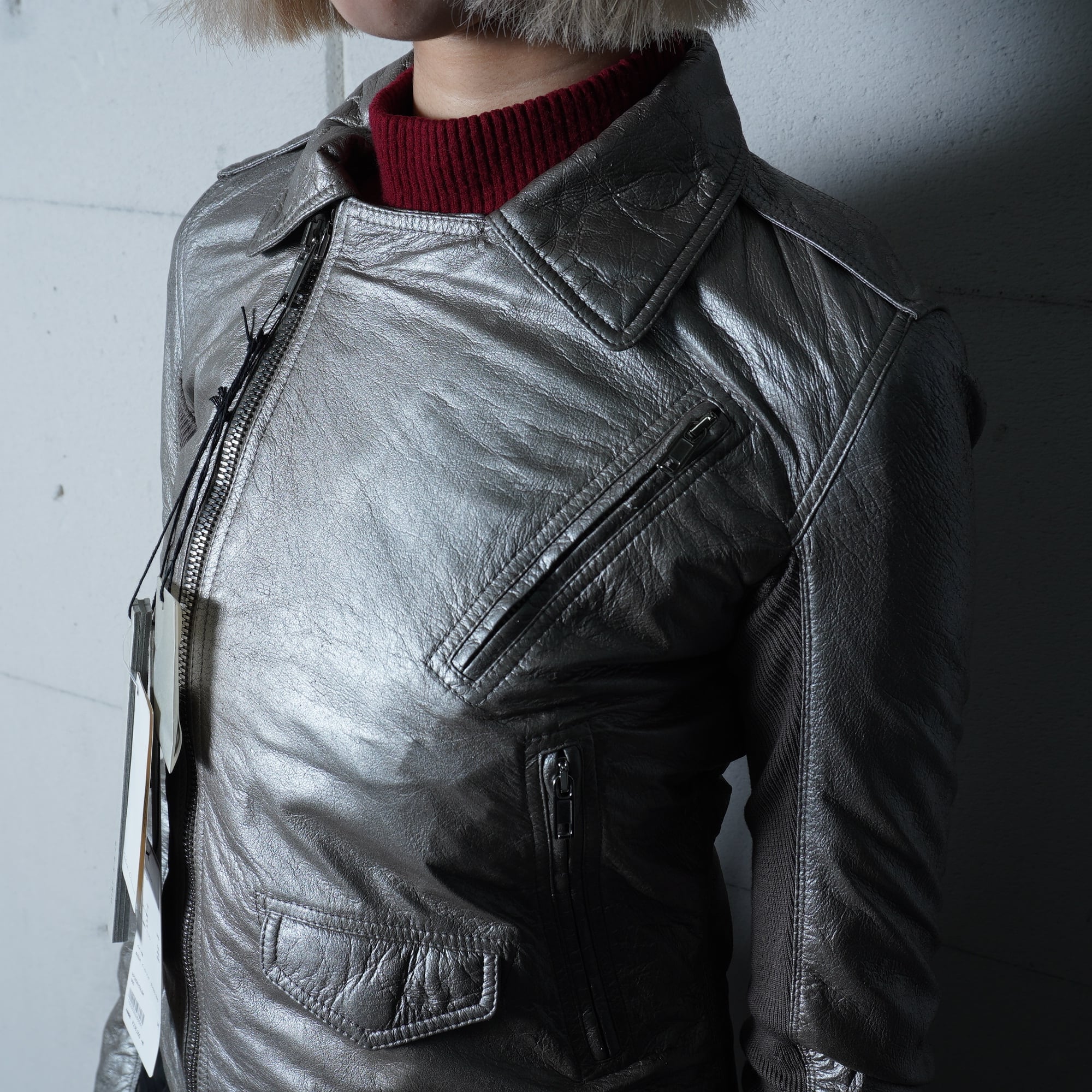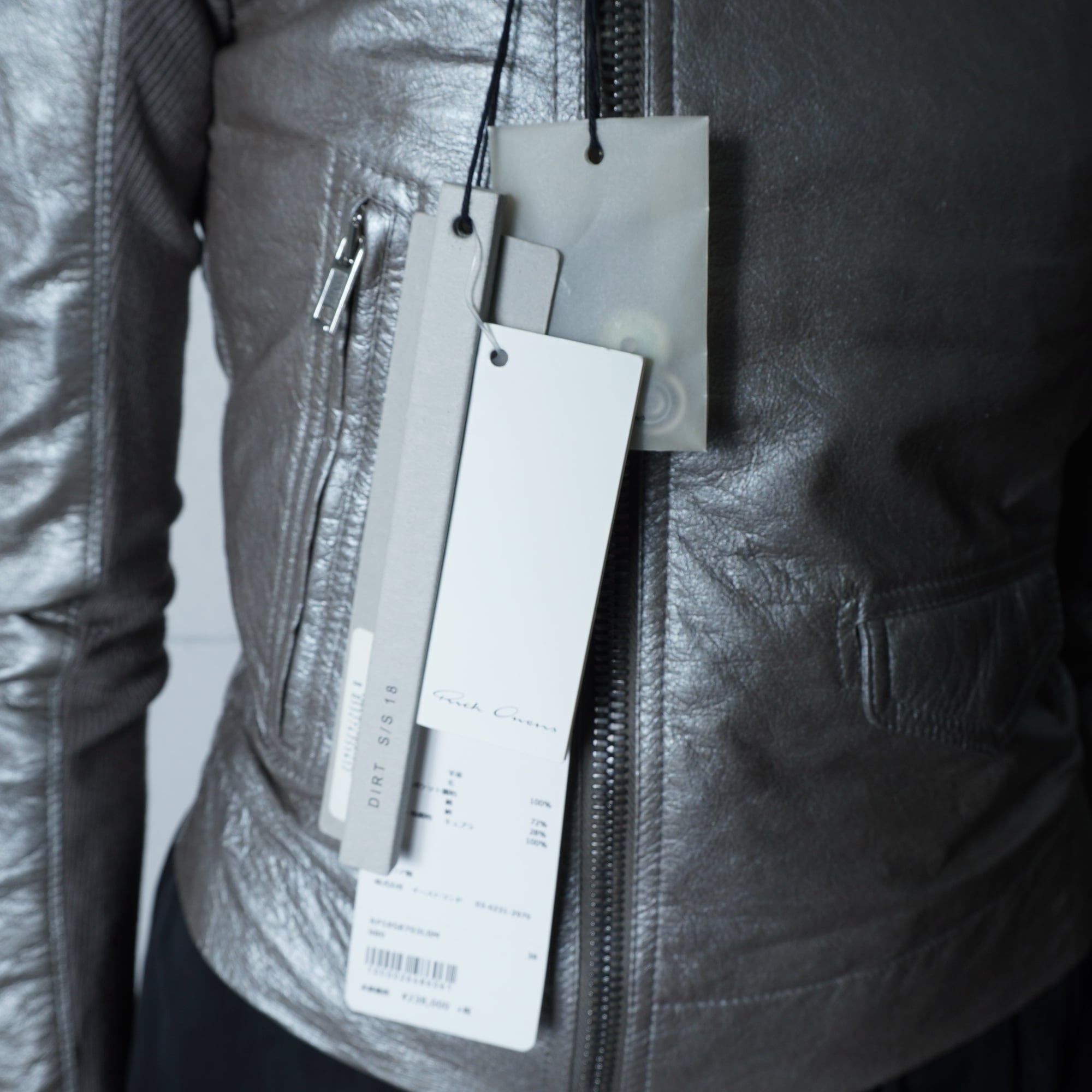 【Rick Owens】リックオウエンス 18SS DIRTコレクション タグ付ラムレザーダブルライダースジャケット silver