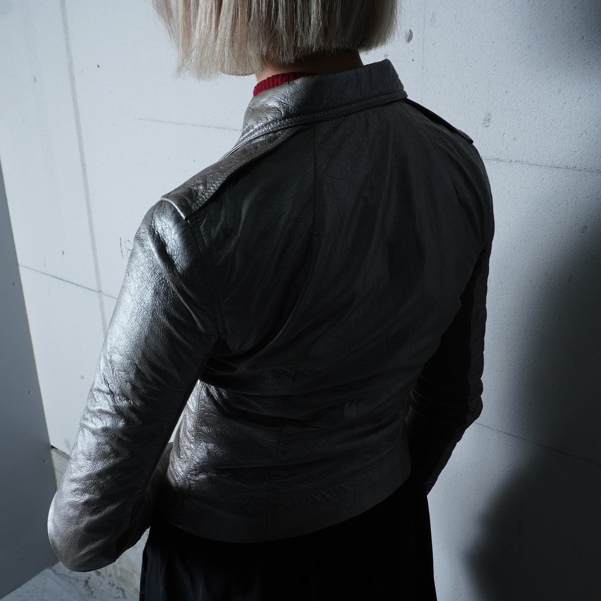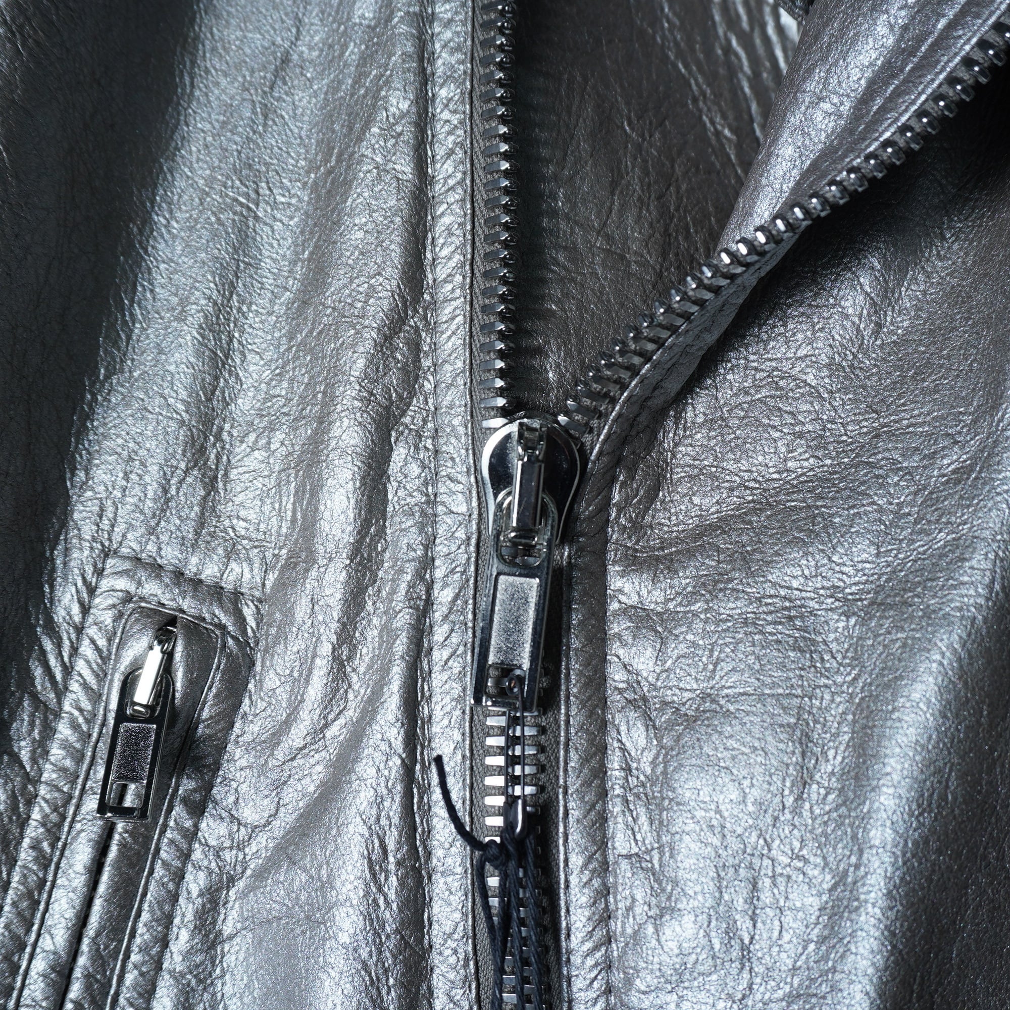 ・個性的でありながら洗練されたシルバーのラムレザー素材