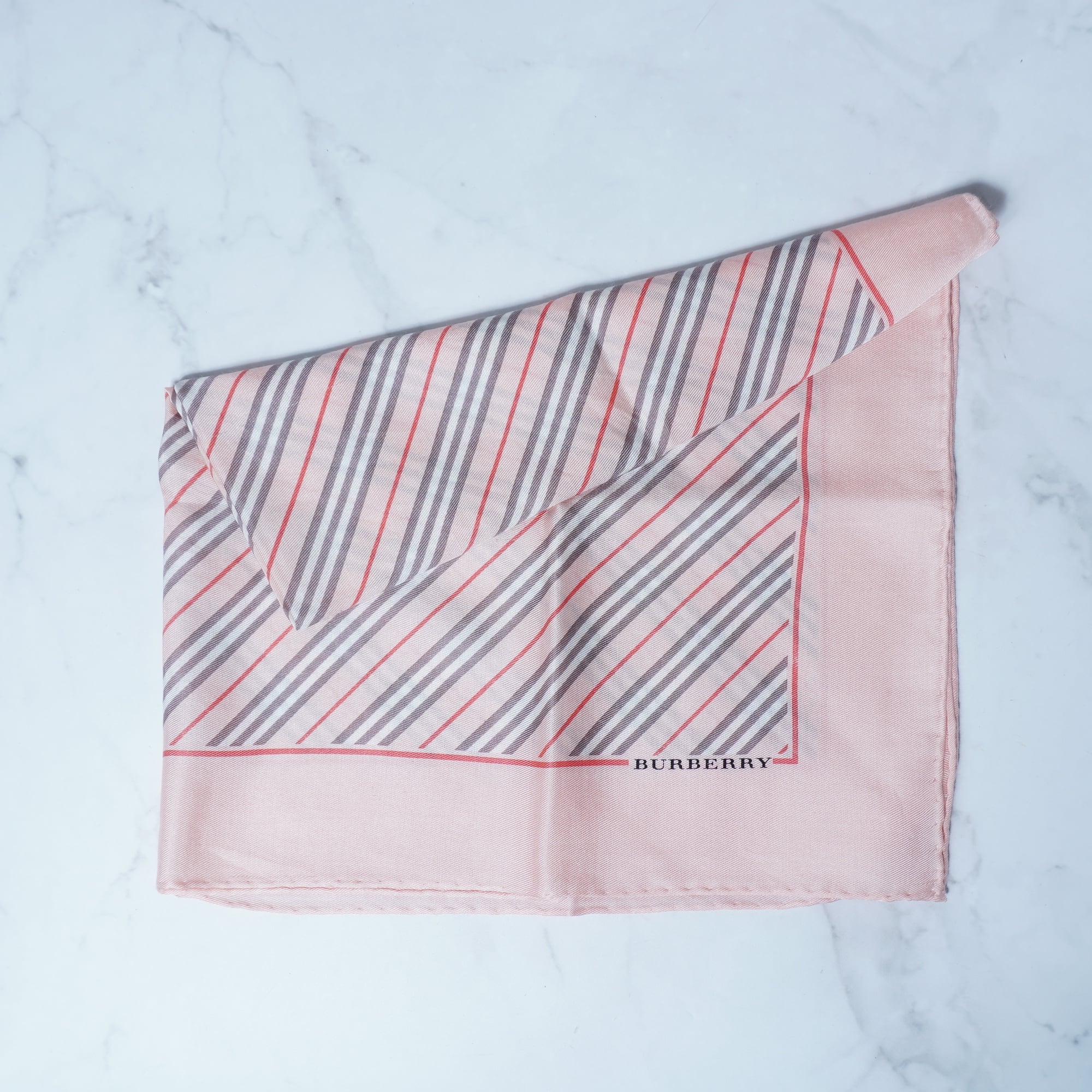 ・洗練された印象を与えるバーバリーのロゴ入りスカーフ