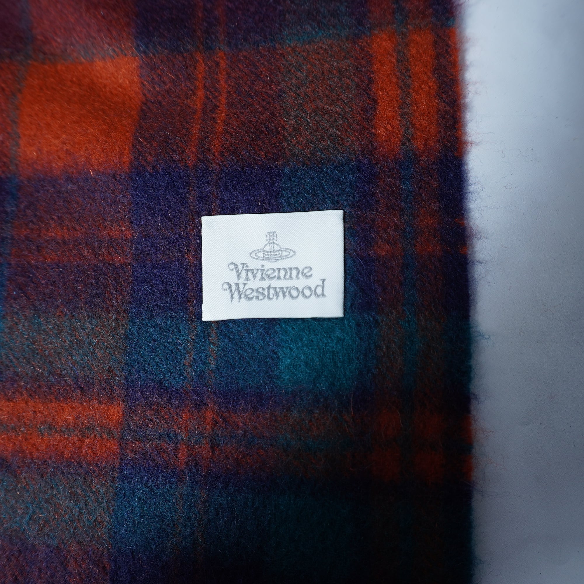 【Vivienne Westwood】ヴィヴィアンウエストウッド オーブロゴ刺繍 チェック柄カシミアマフラー orange&green