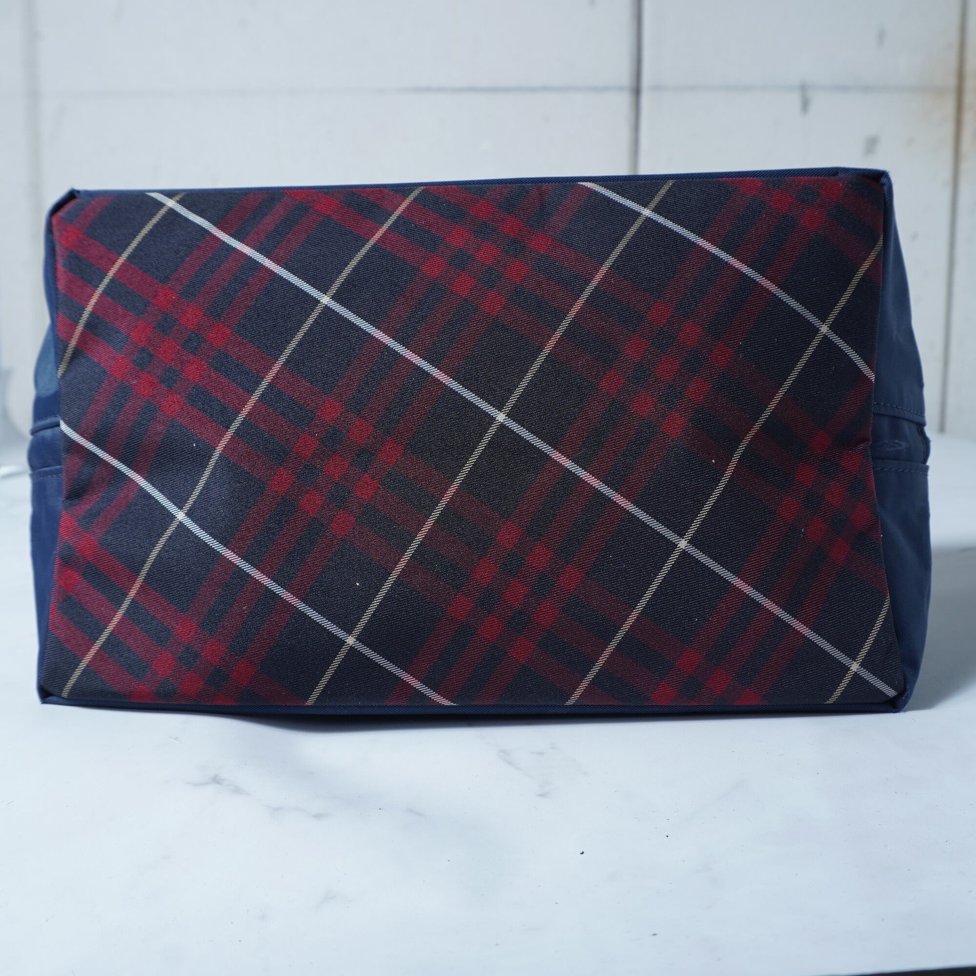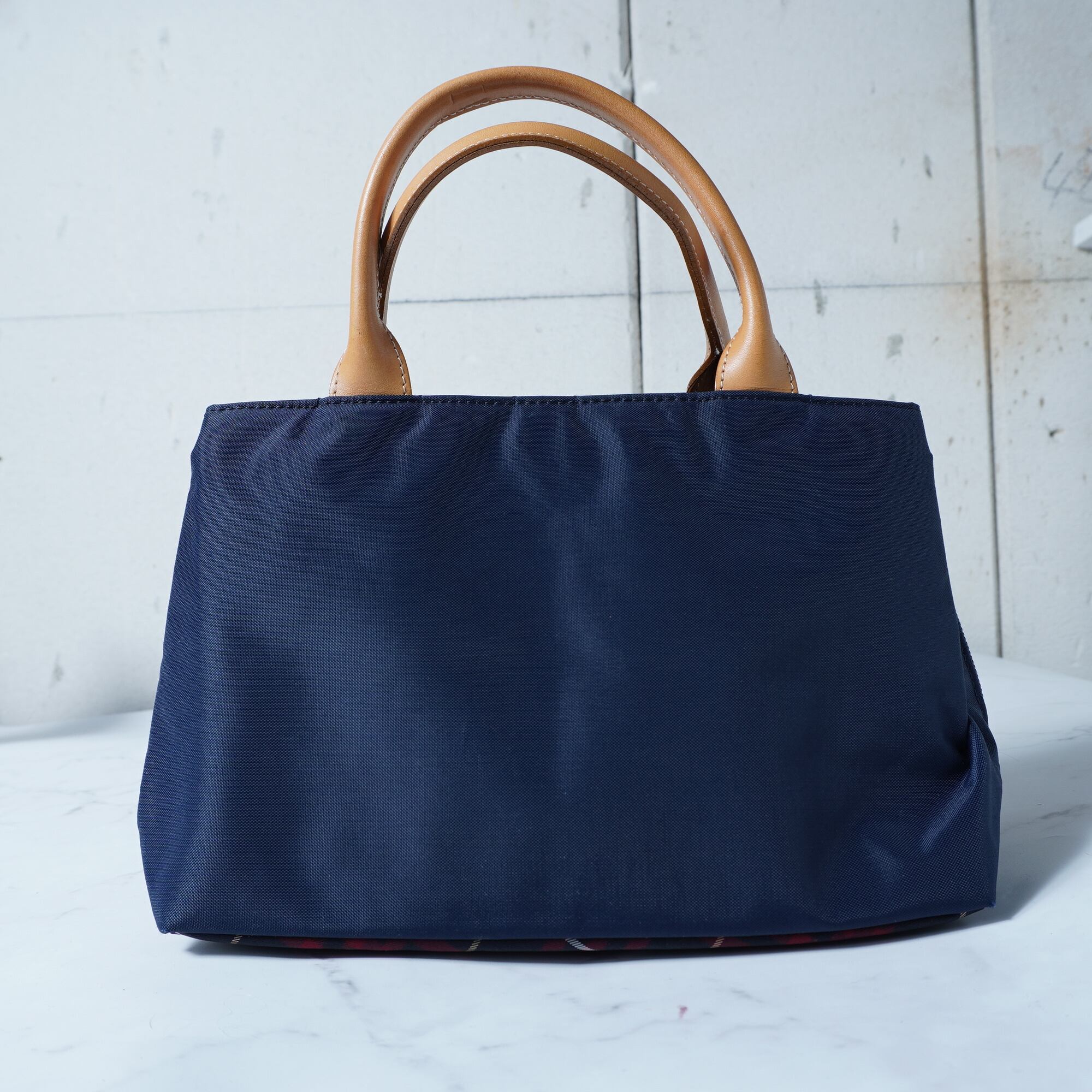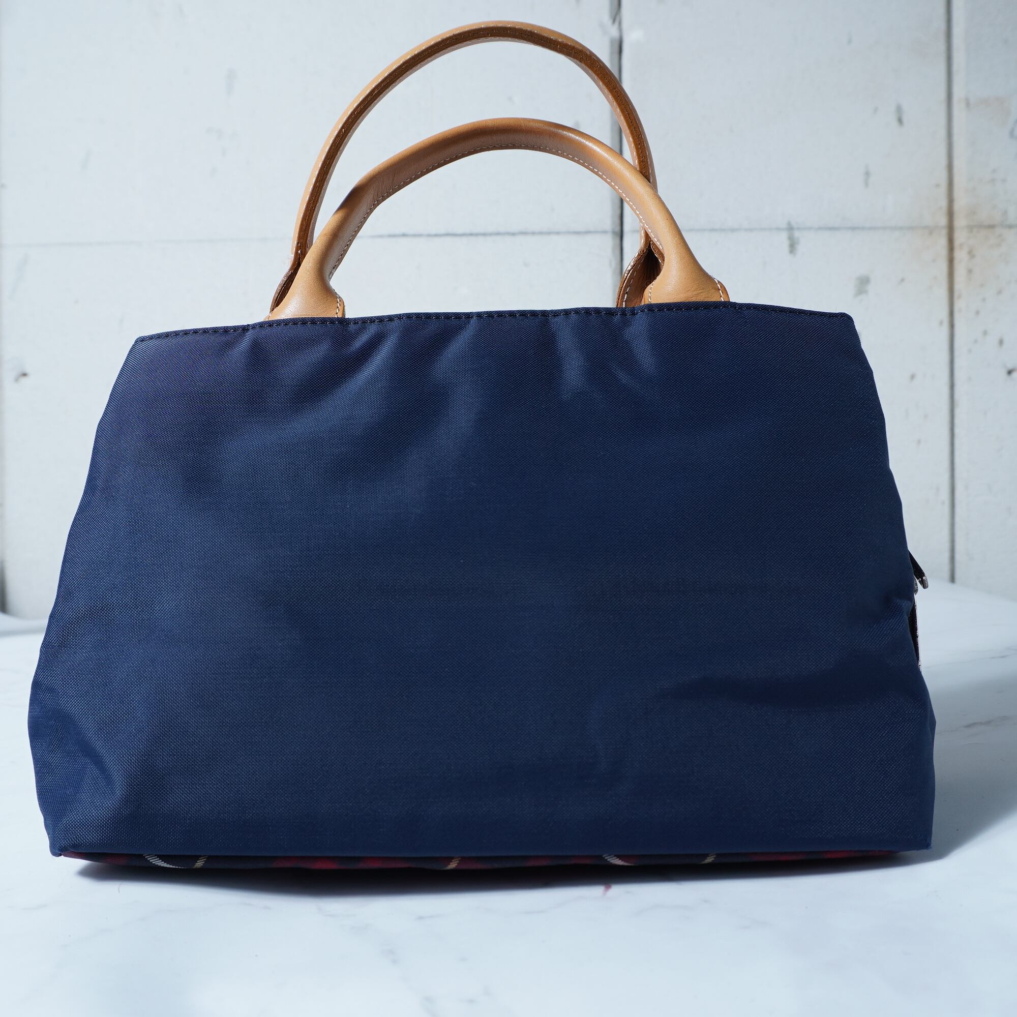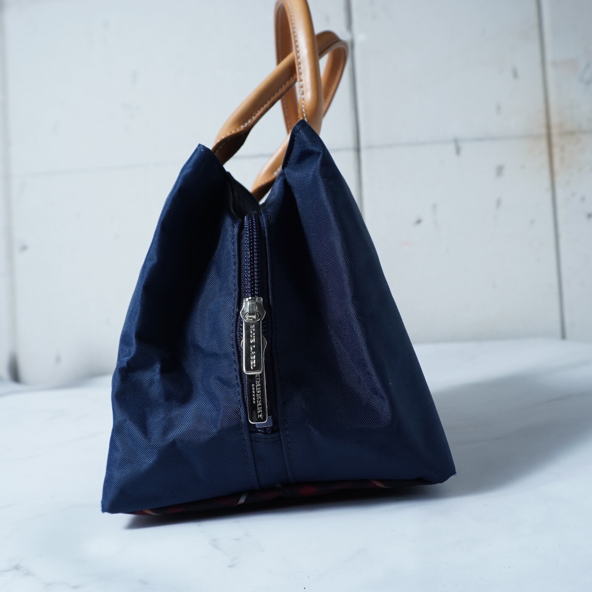 【BURBERRY】バーバリー クロスチェック切替ナイロン・レザーハンドバッグ navy