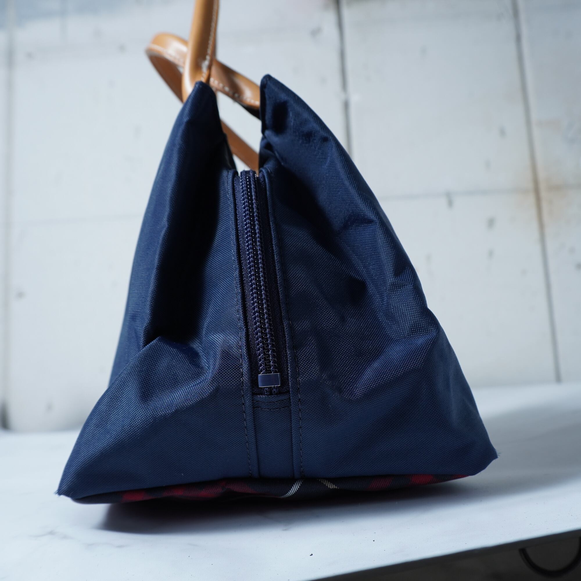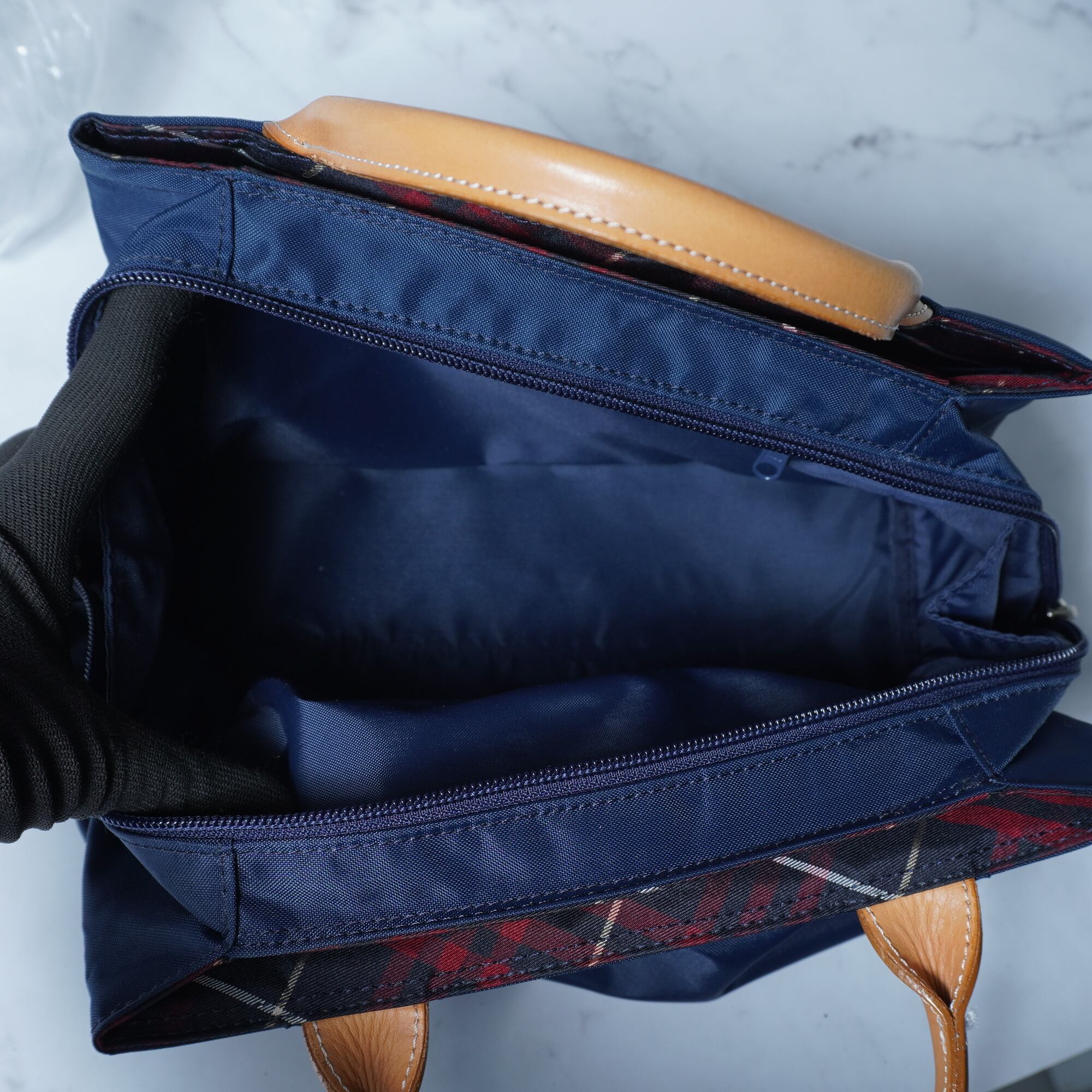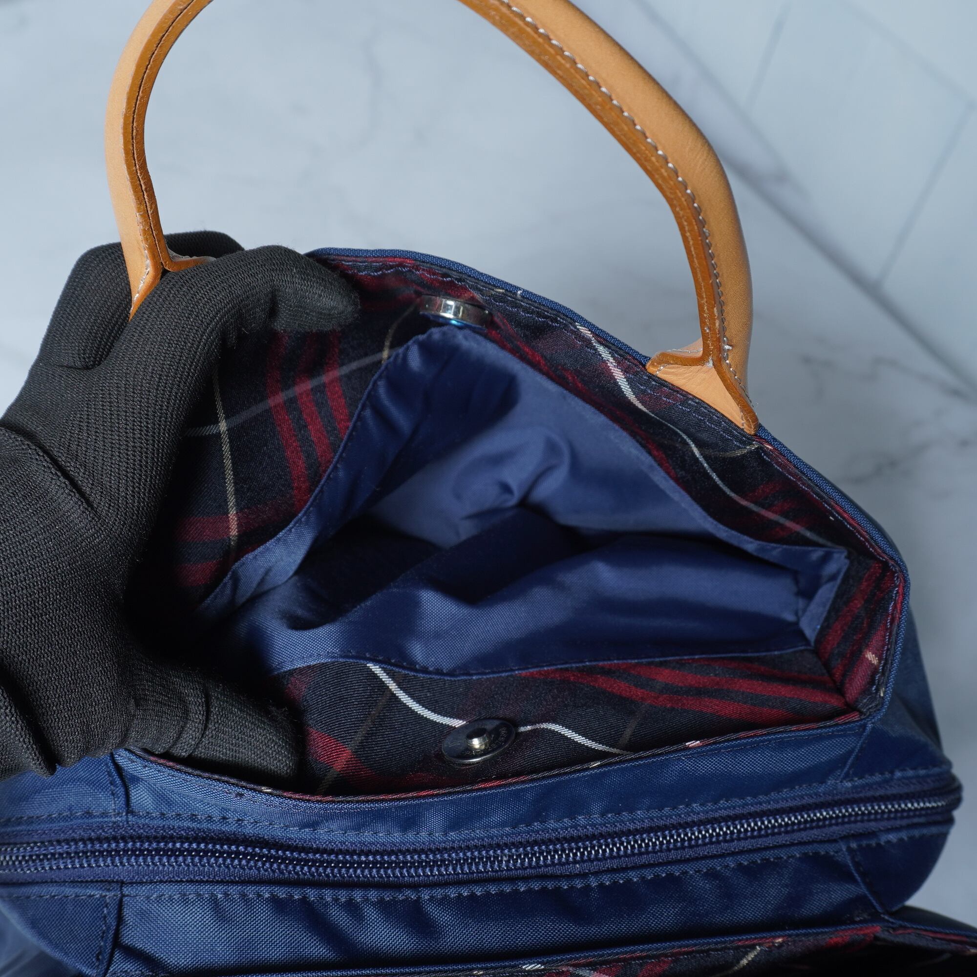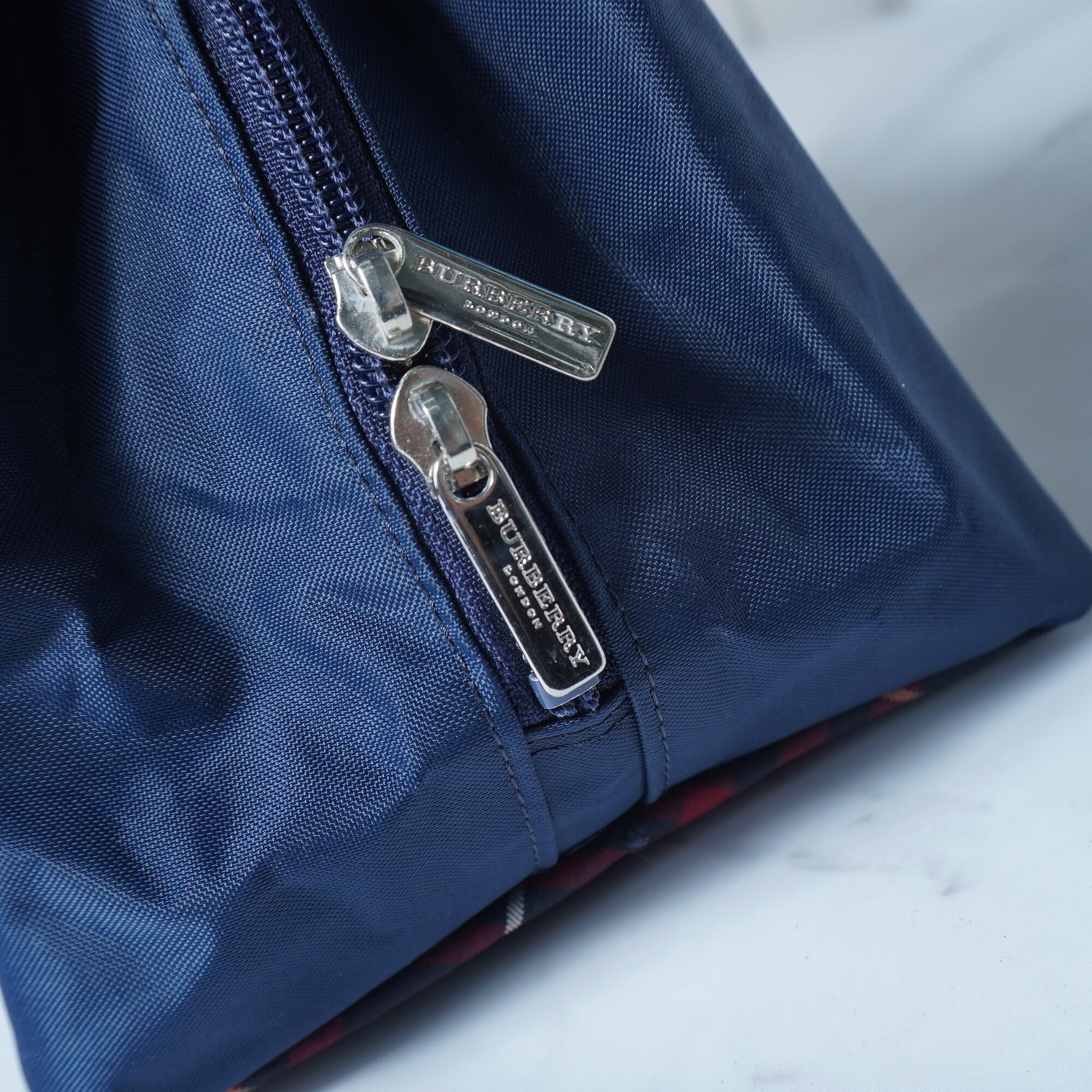 【BURBERRY】バーバリー クロスチェック切替ナイロン・レザーハンドバッグ navy