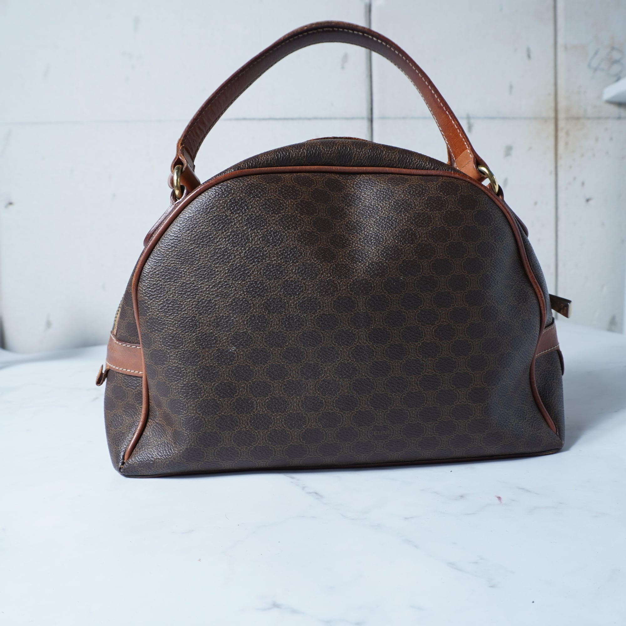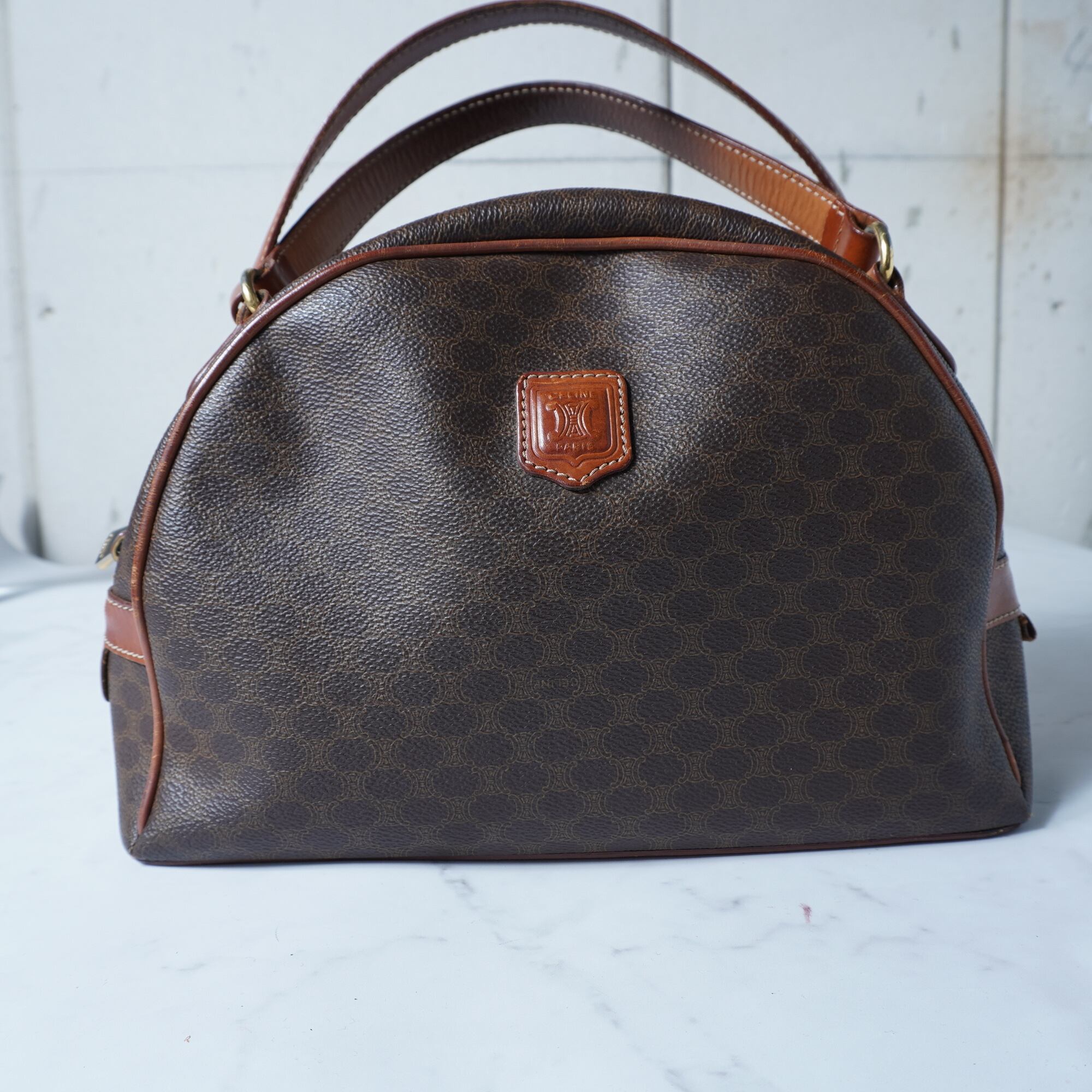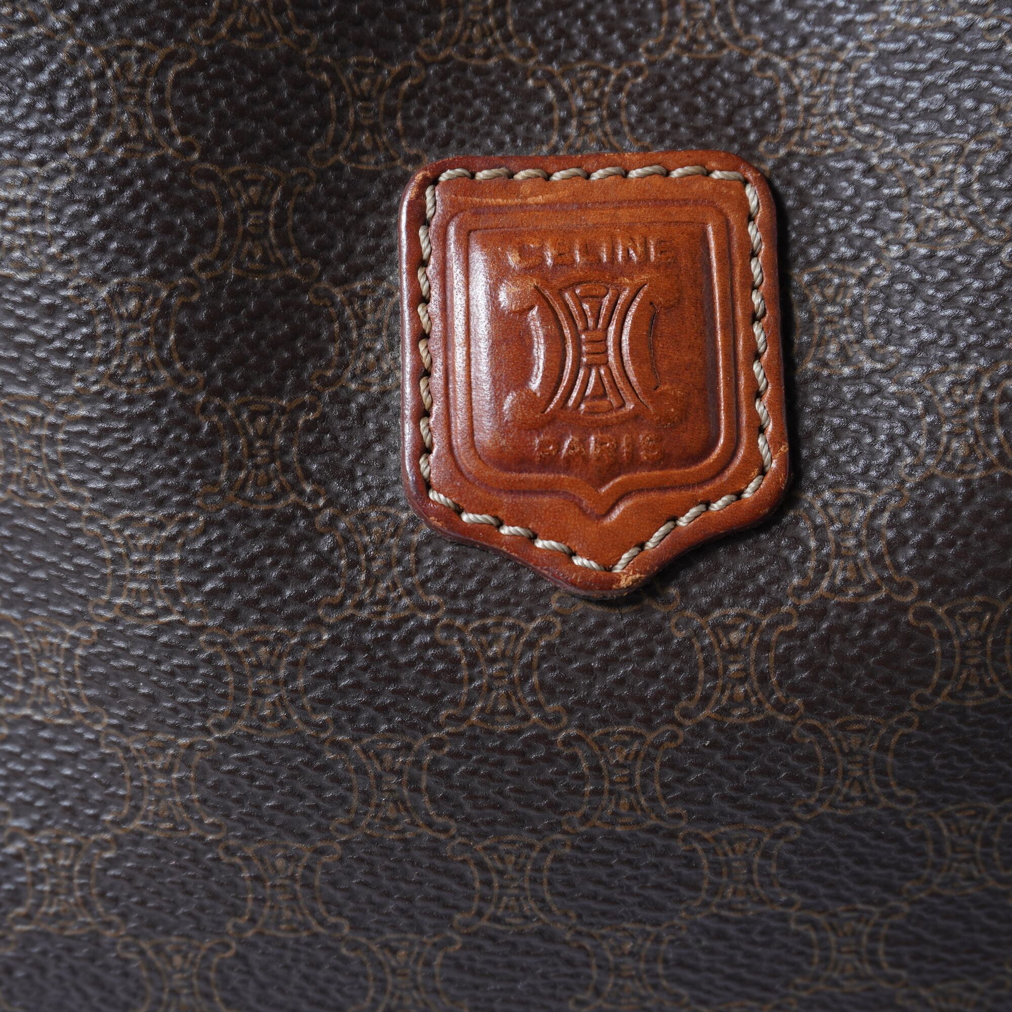 【CELINE】セリーヌ トリオンフロゴ マカダム柄ハーフムーンレザーハンドバッグ brown