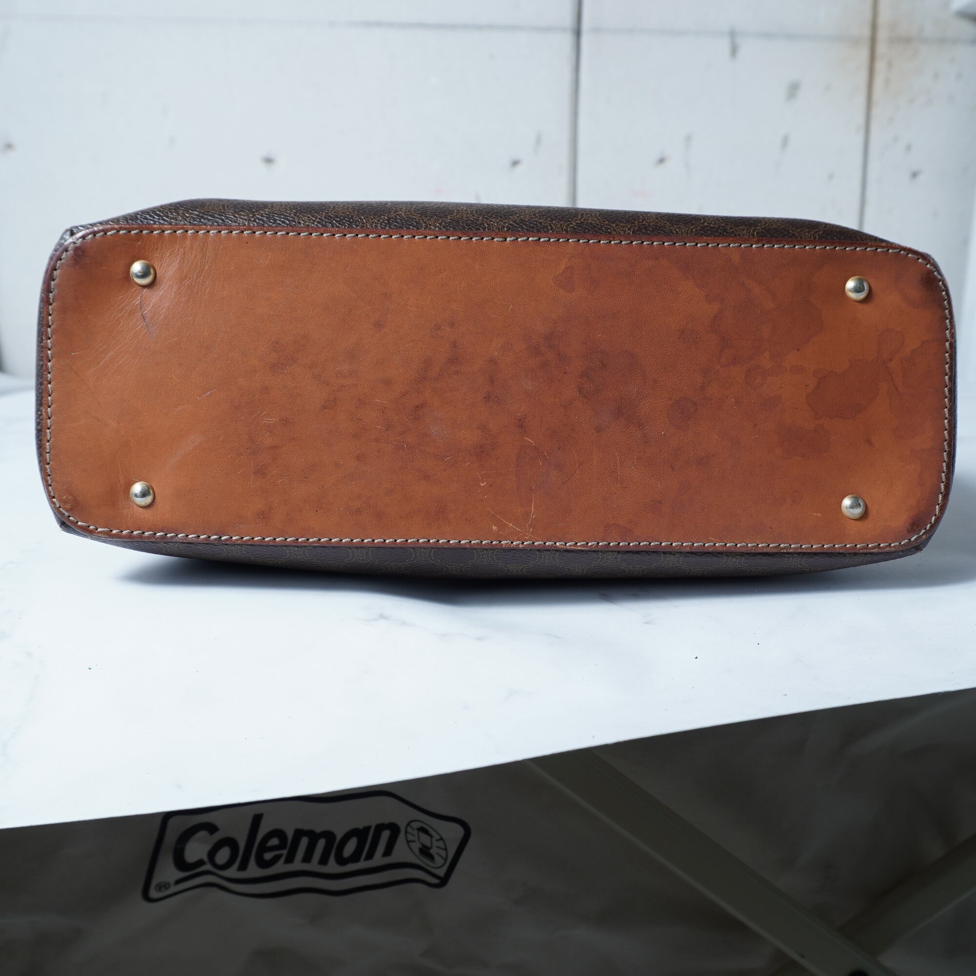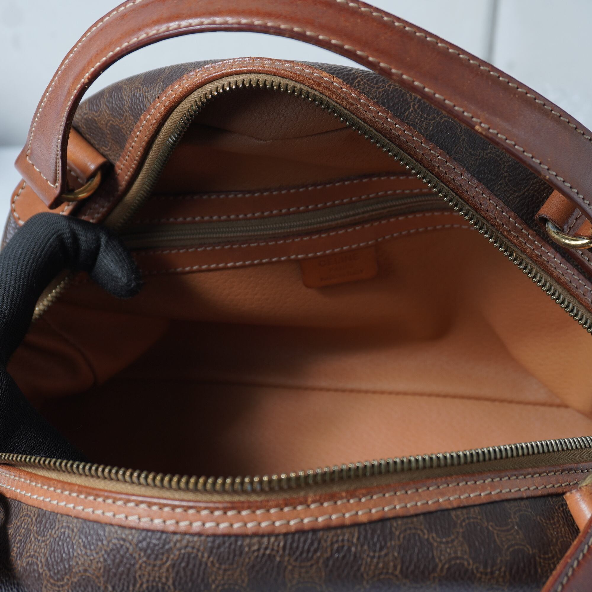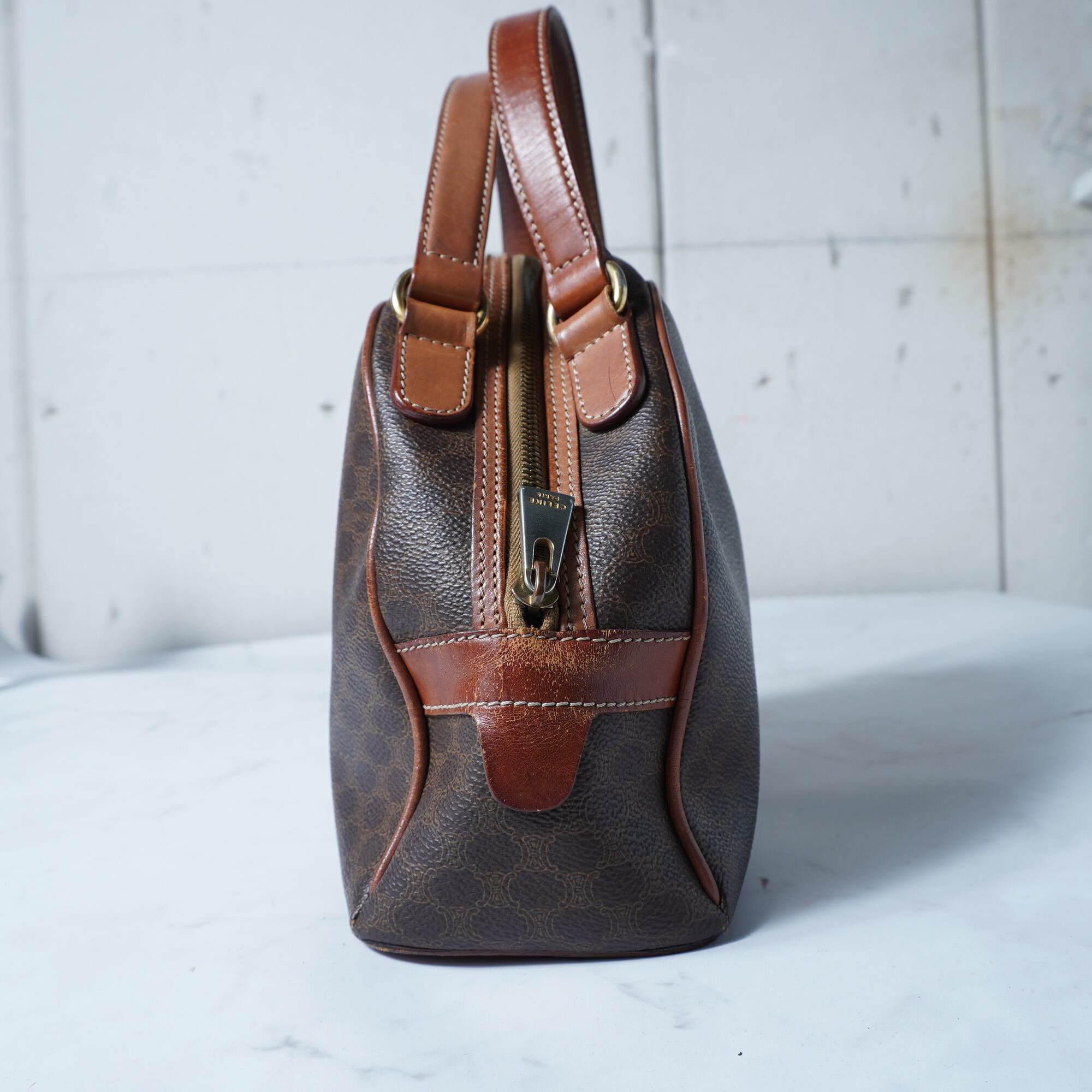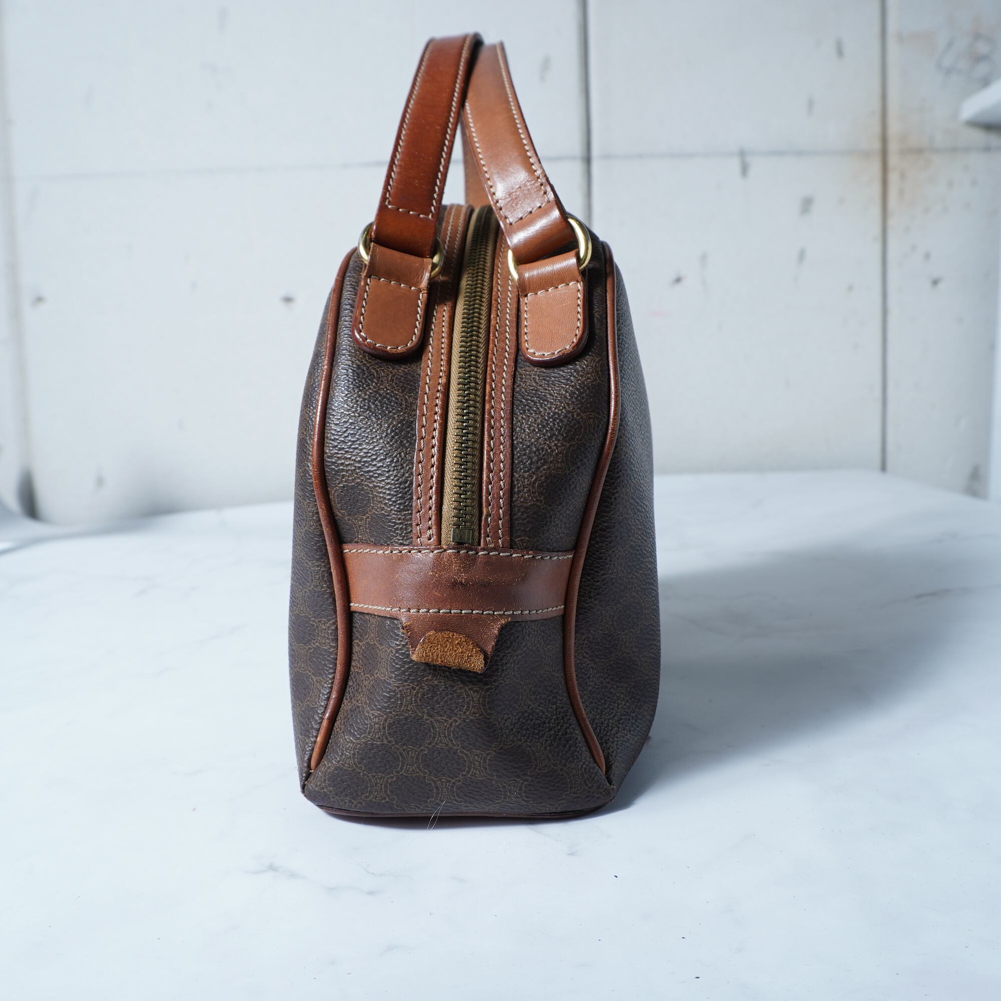 【CELINE】セリーヌ トリオンフロゴ マカダム柄ハーフムーンレザーハンドバッグ brown