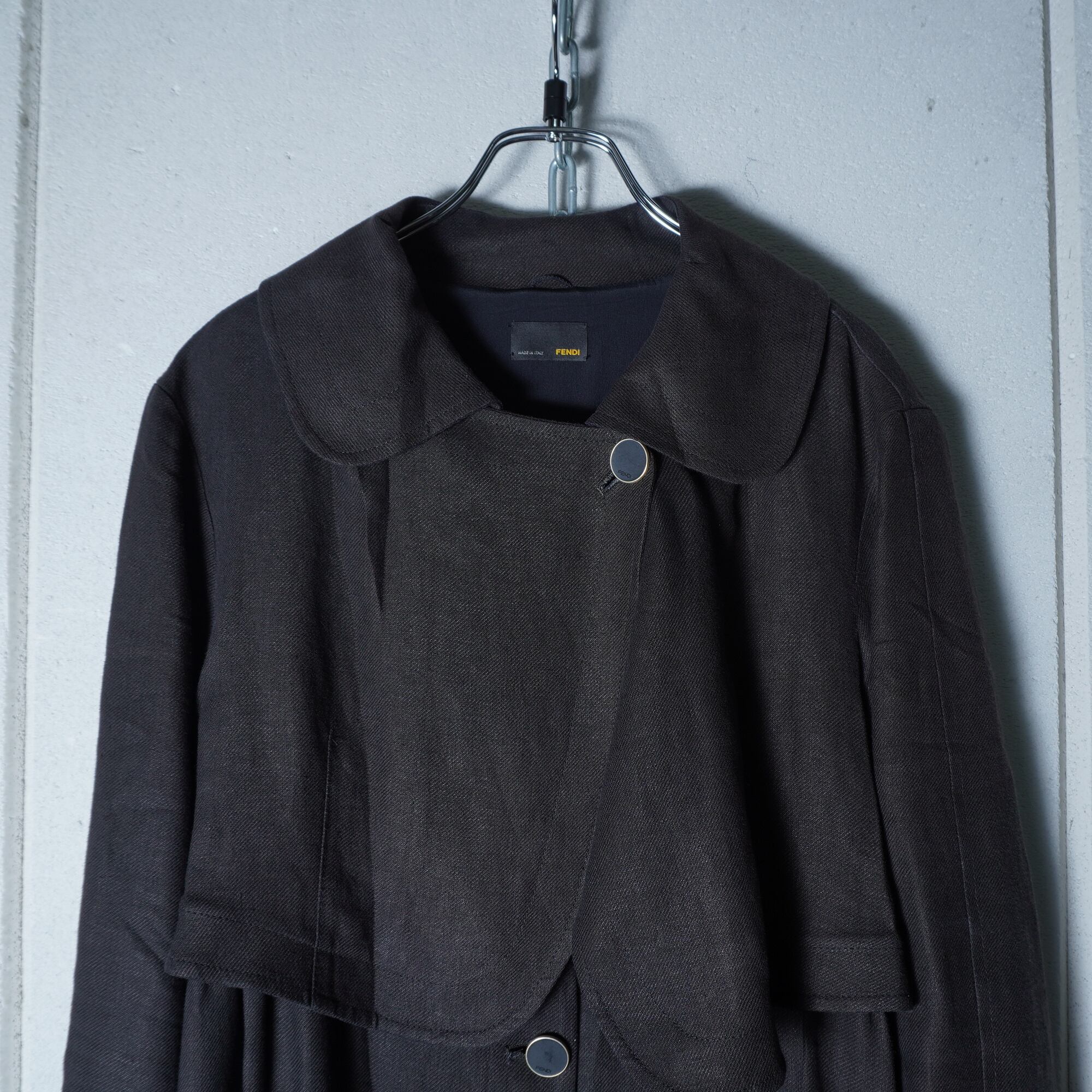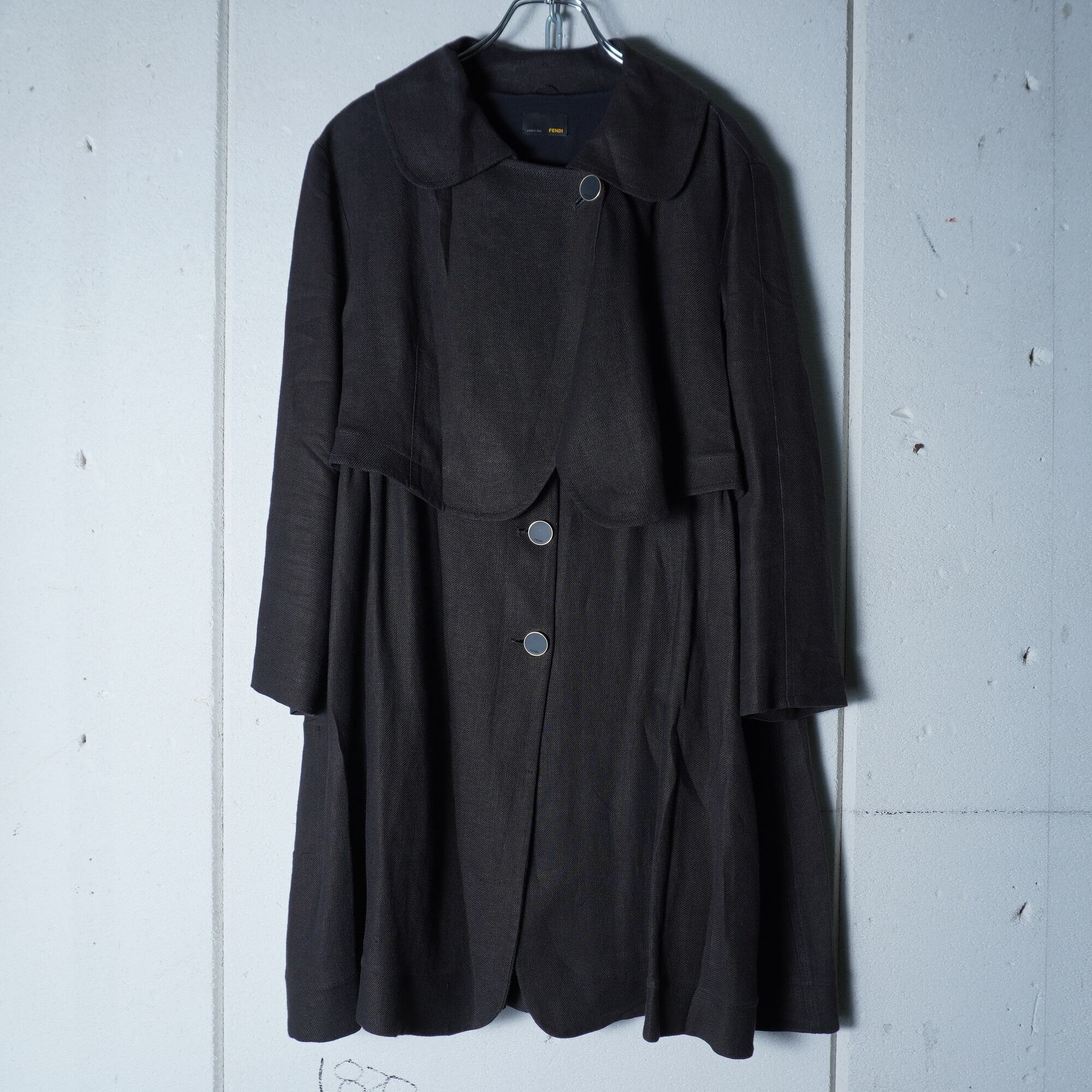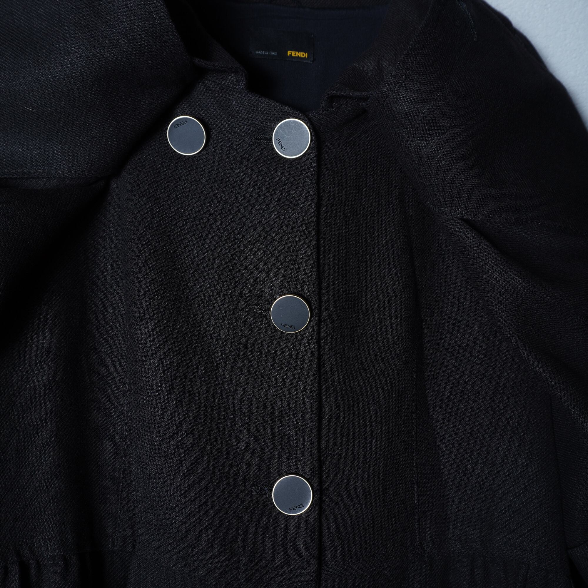 【FENDI】フェンディ ロゴボタンリネンケープトレンチコート black