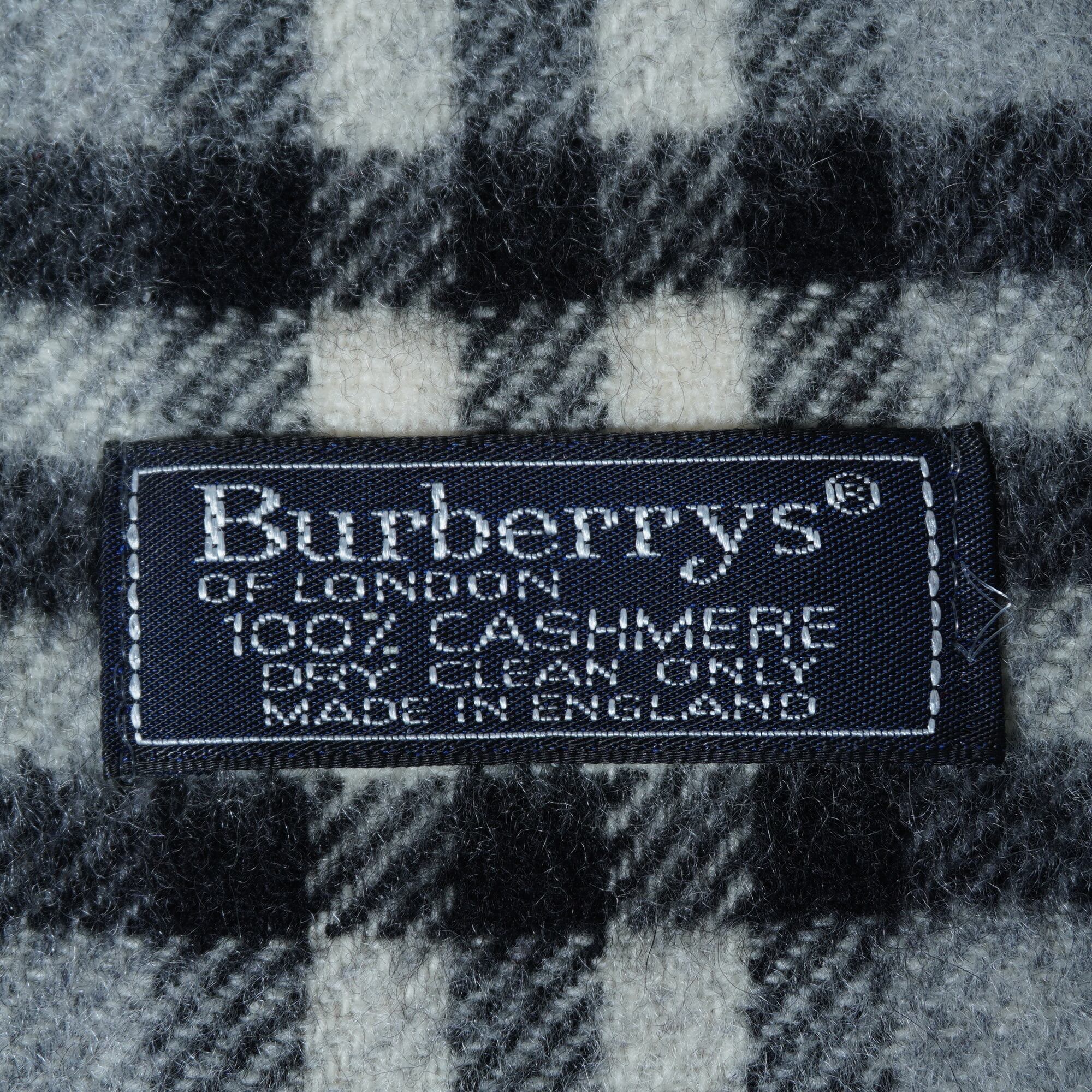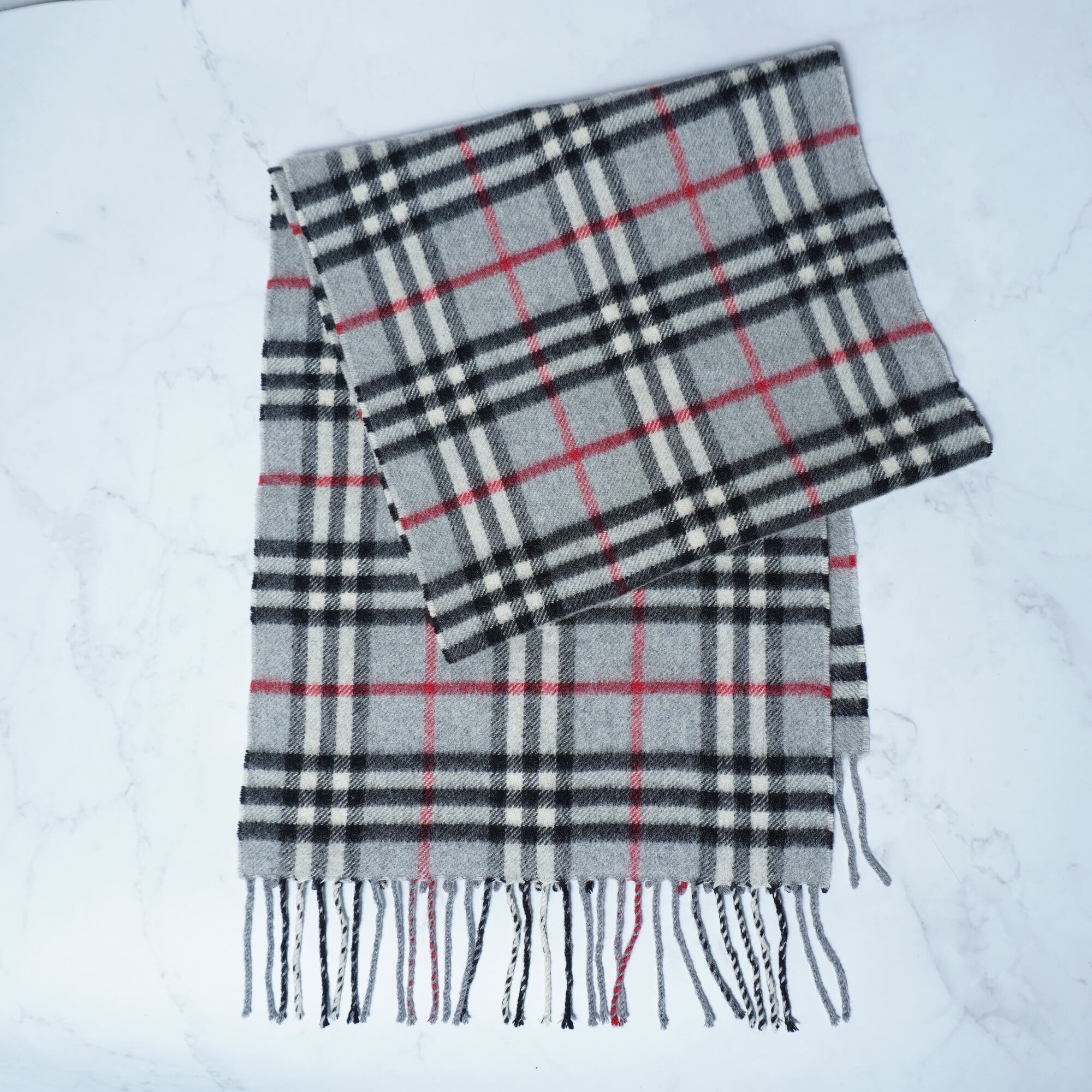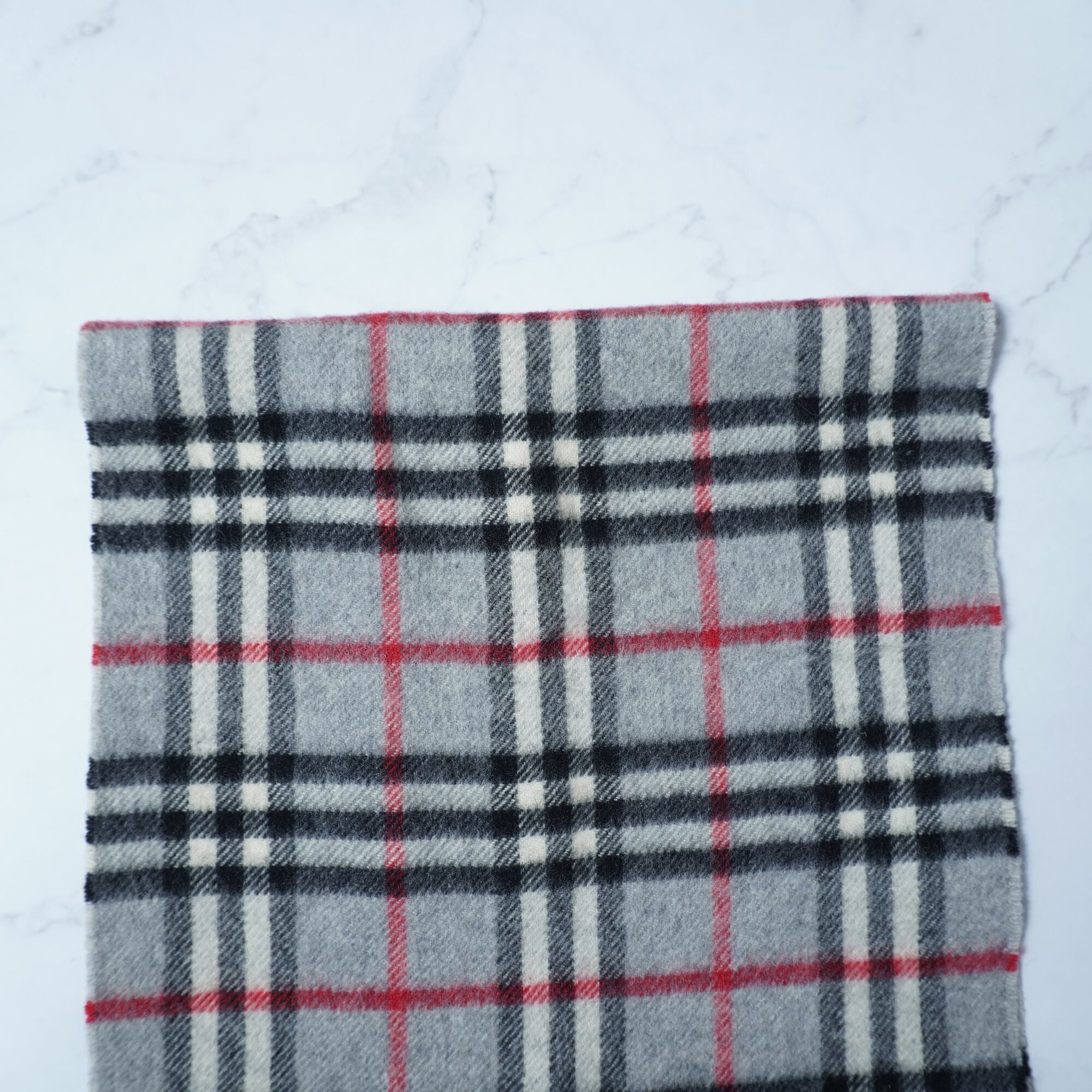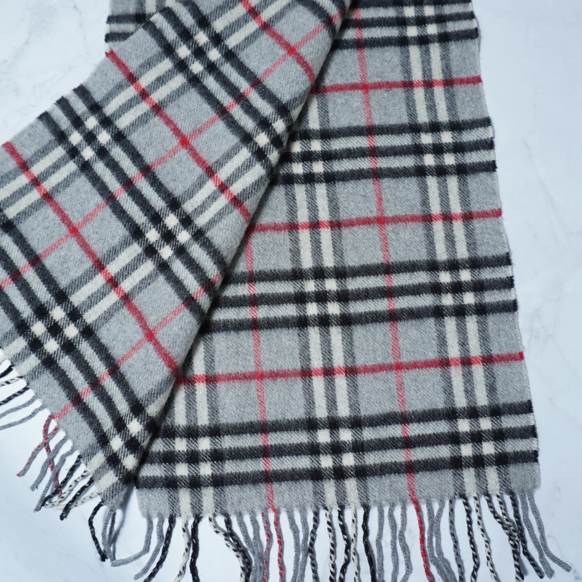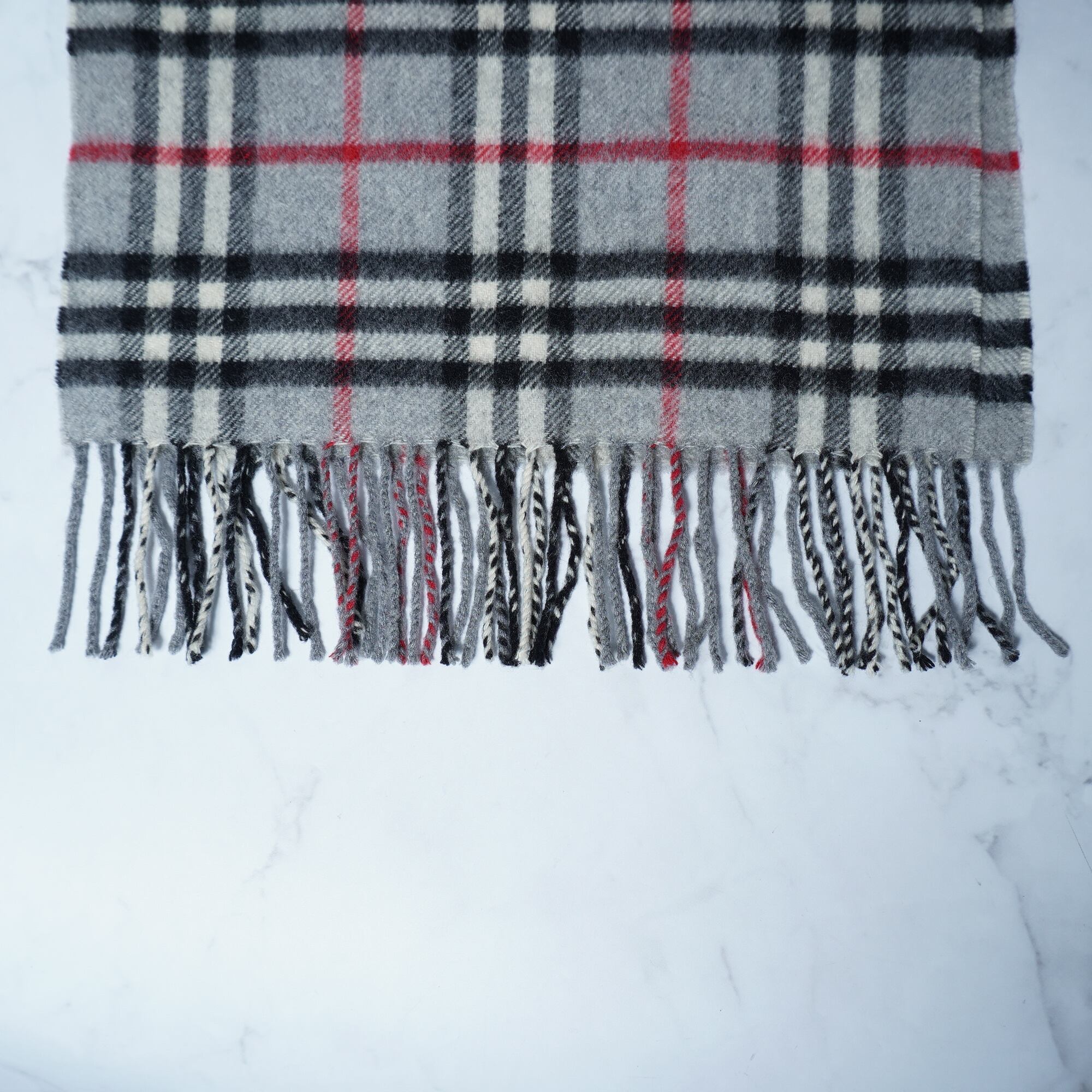 【BURBERRY】バーバリー カシミヤ100% チェック柄フリンジマフラー gray