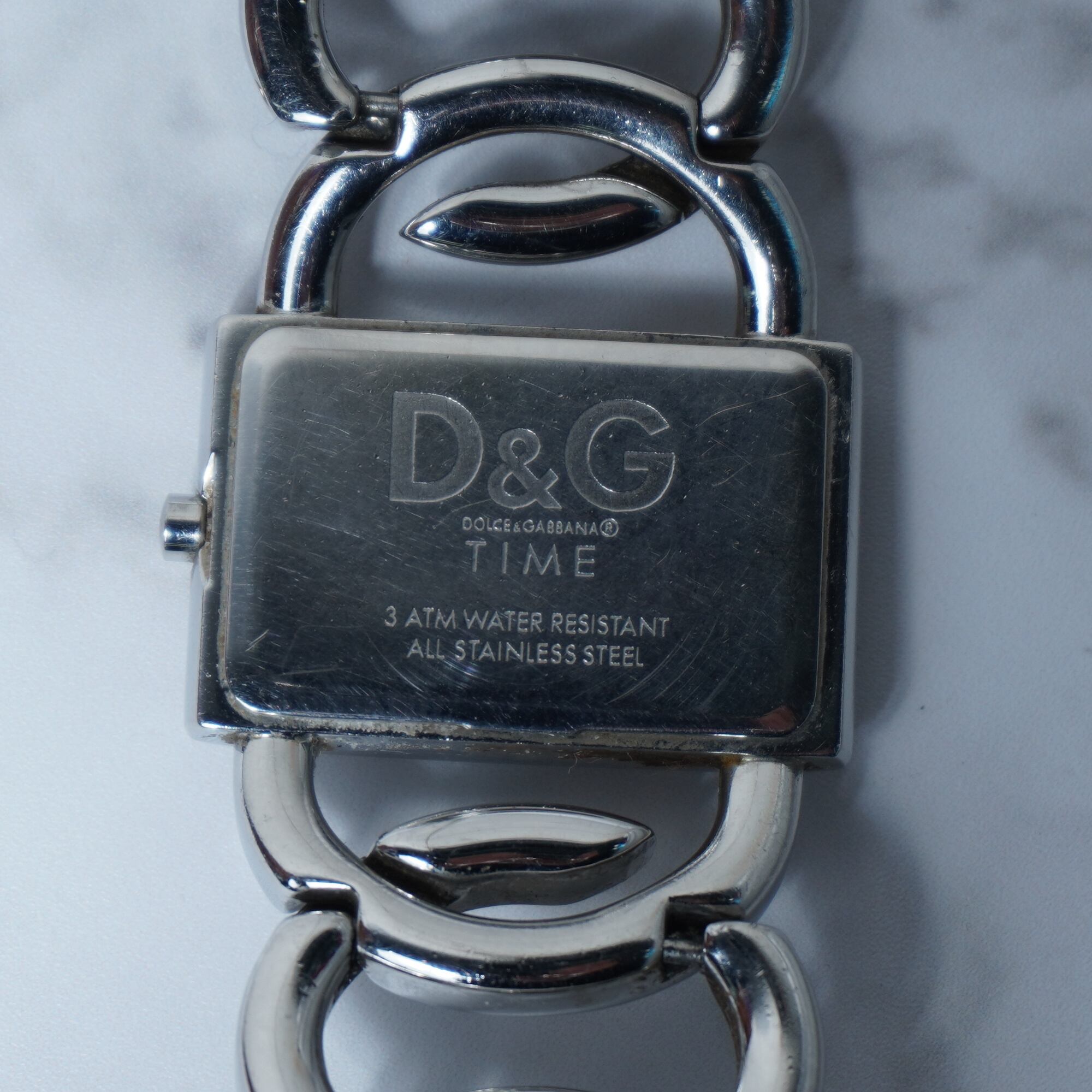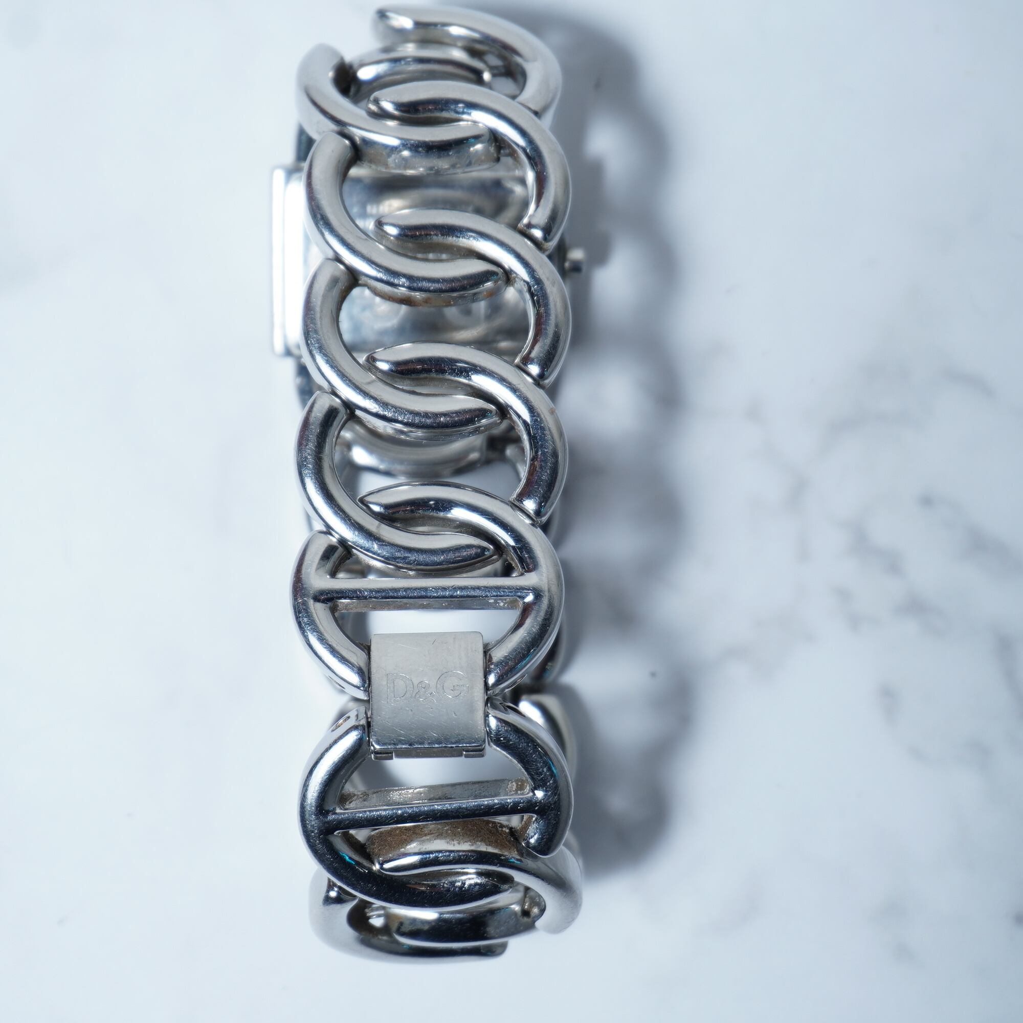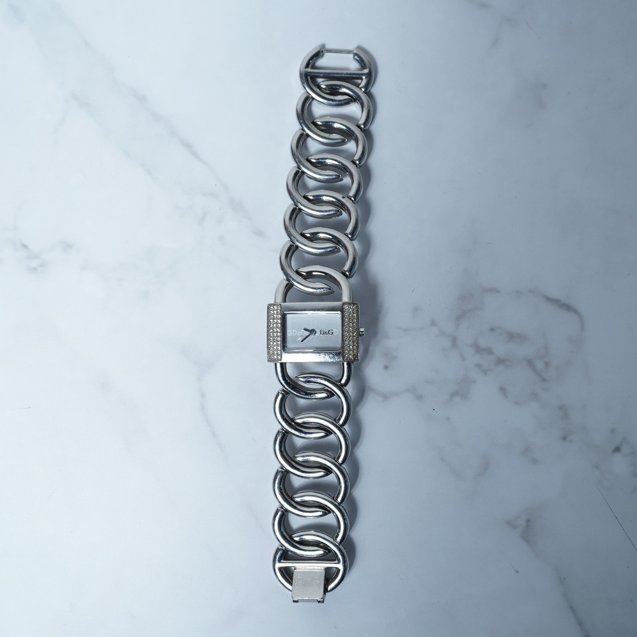 【DOLCE&GABBNA】ドルチェ&ガッバーナ 稼働品 D&Gロゴラインストーンベゼルバングルクォーツウォッチ