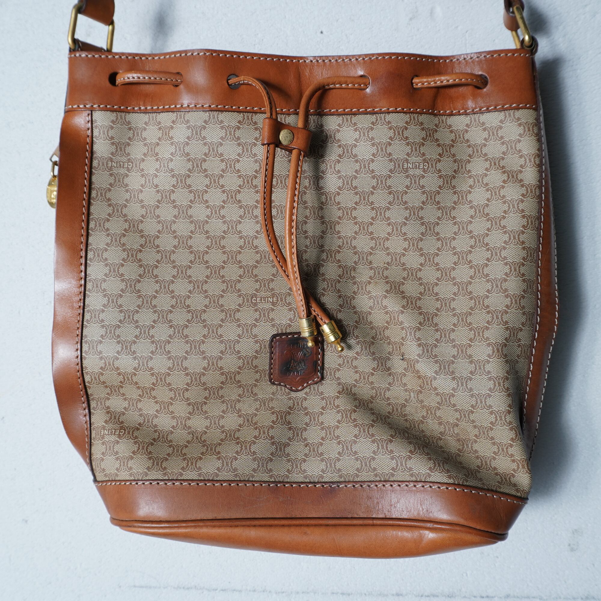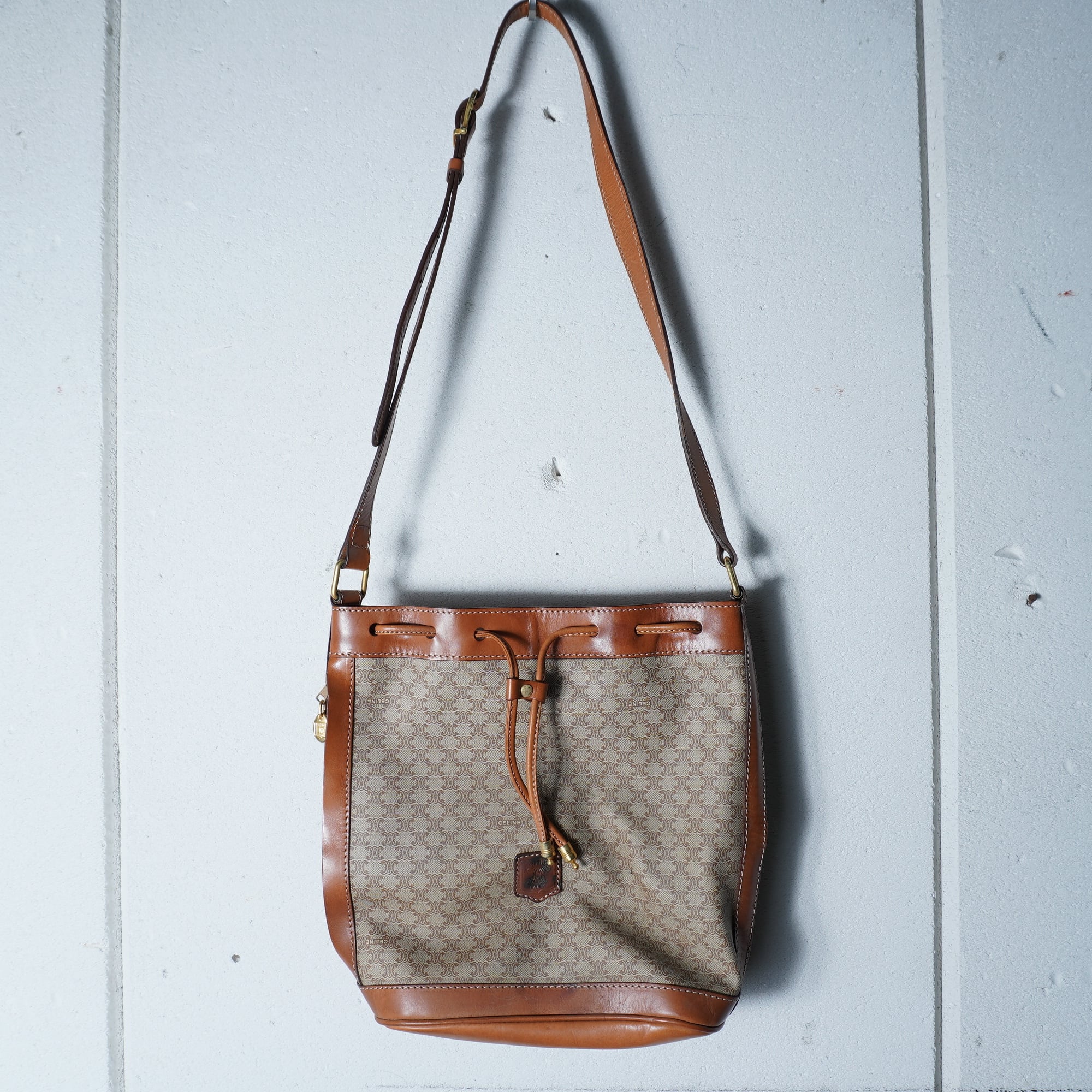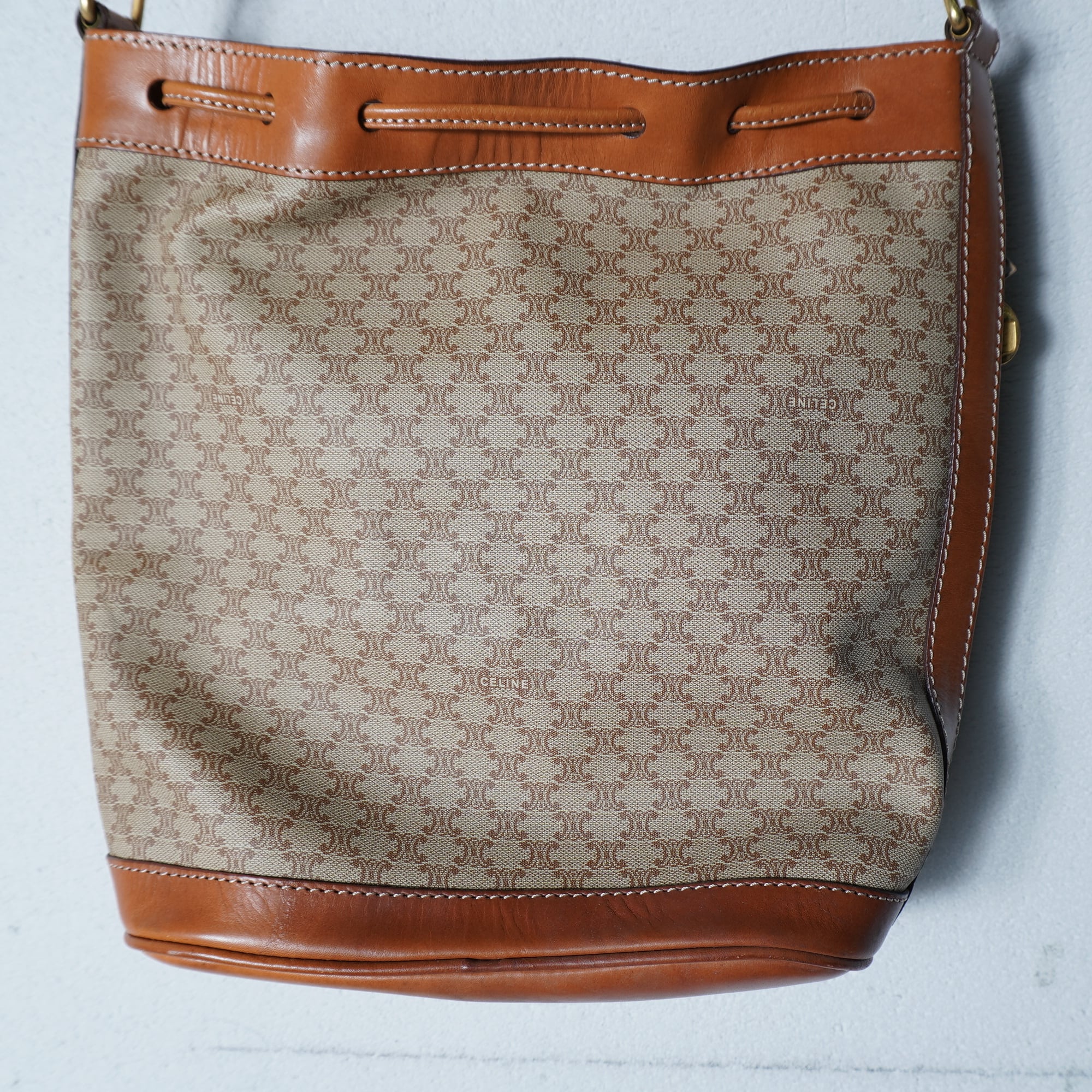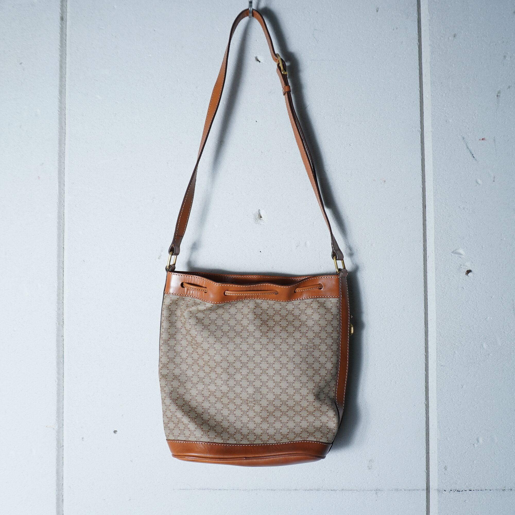 【CELINE】セリーヌ トリオンフログマカダム柄レザーショルダーバッグ beige&brown