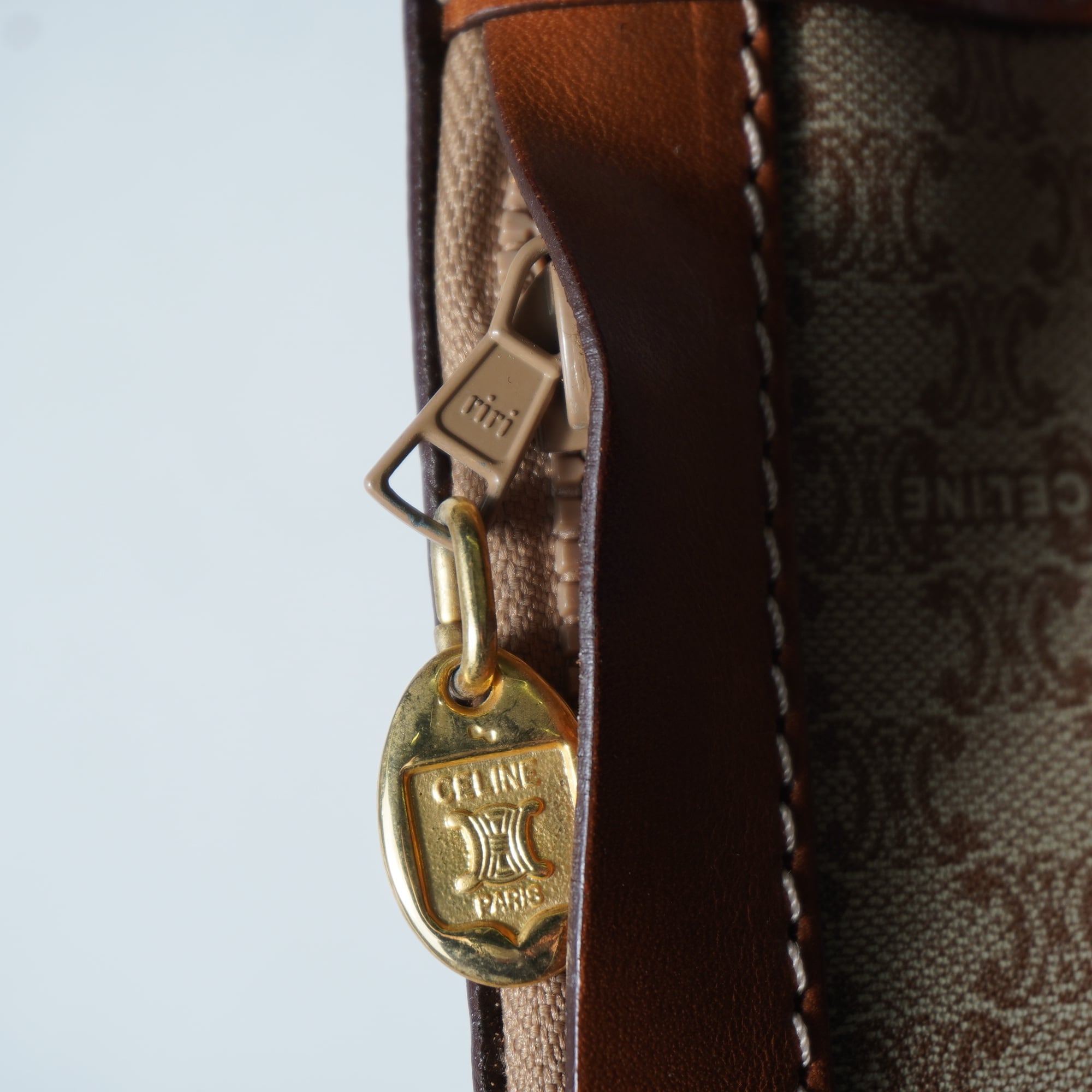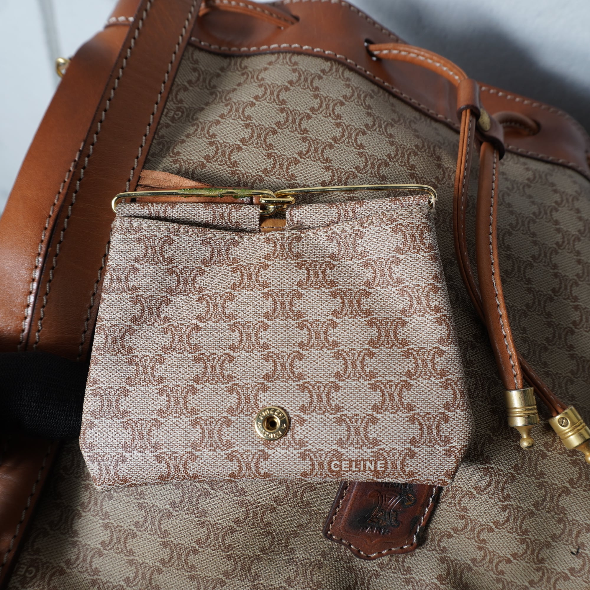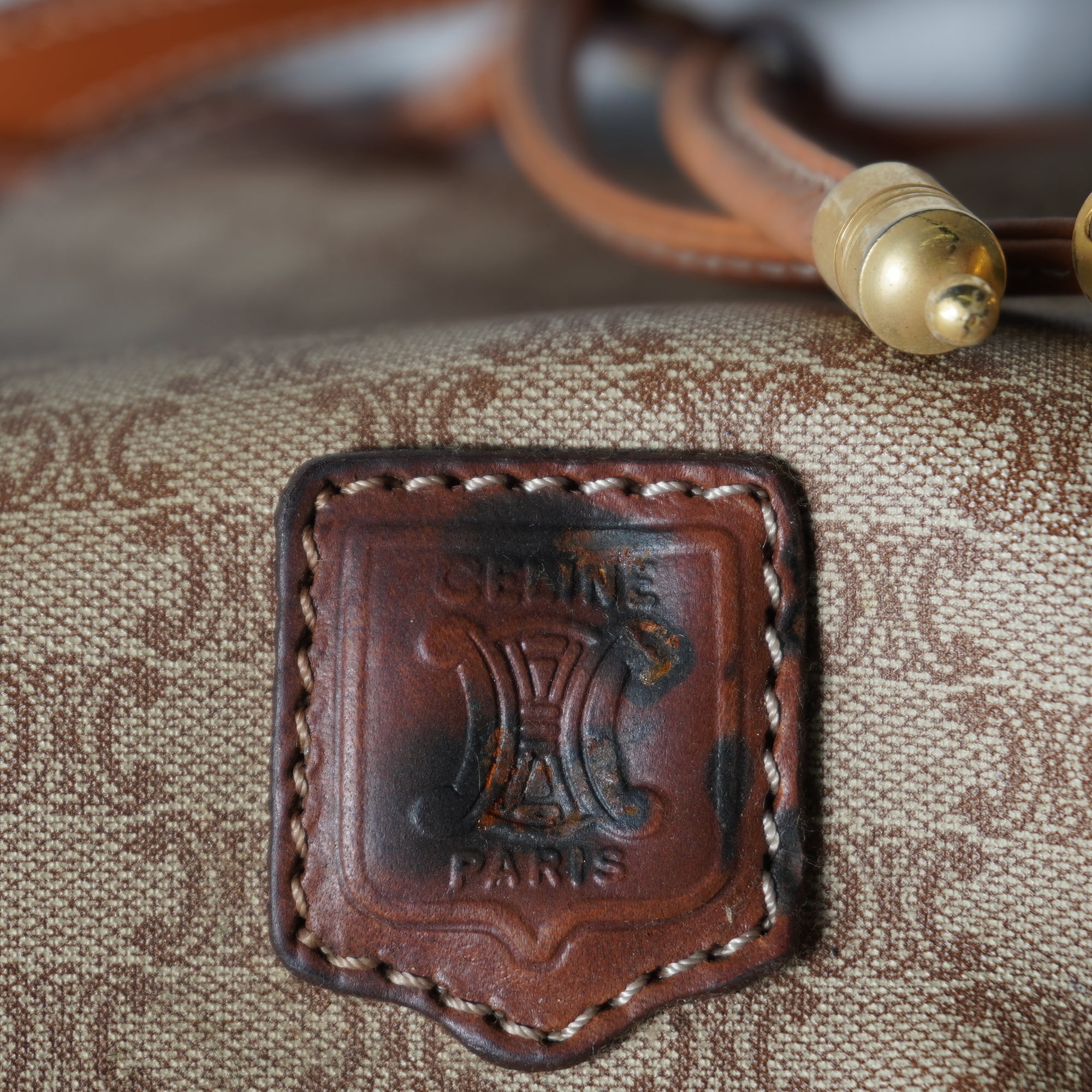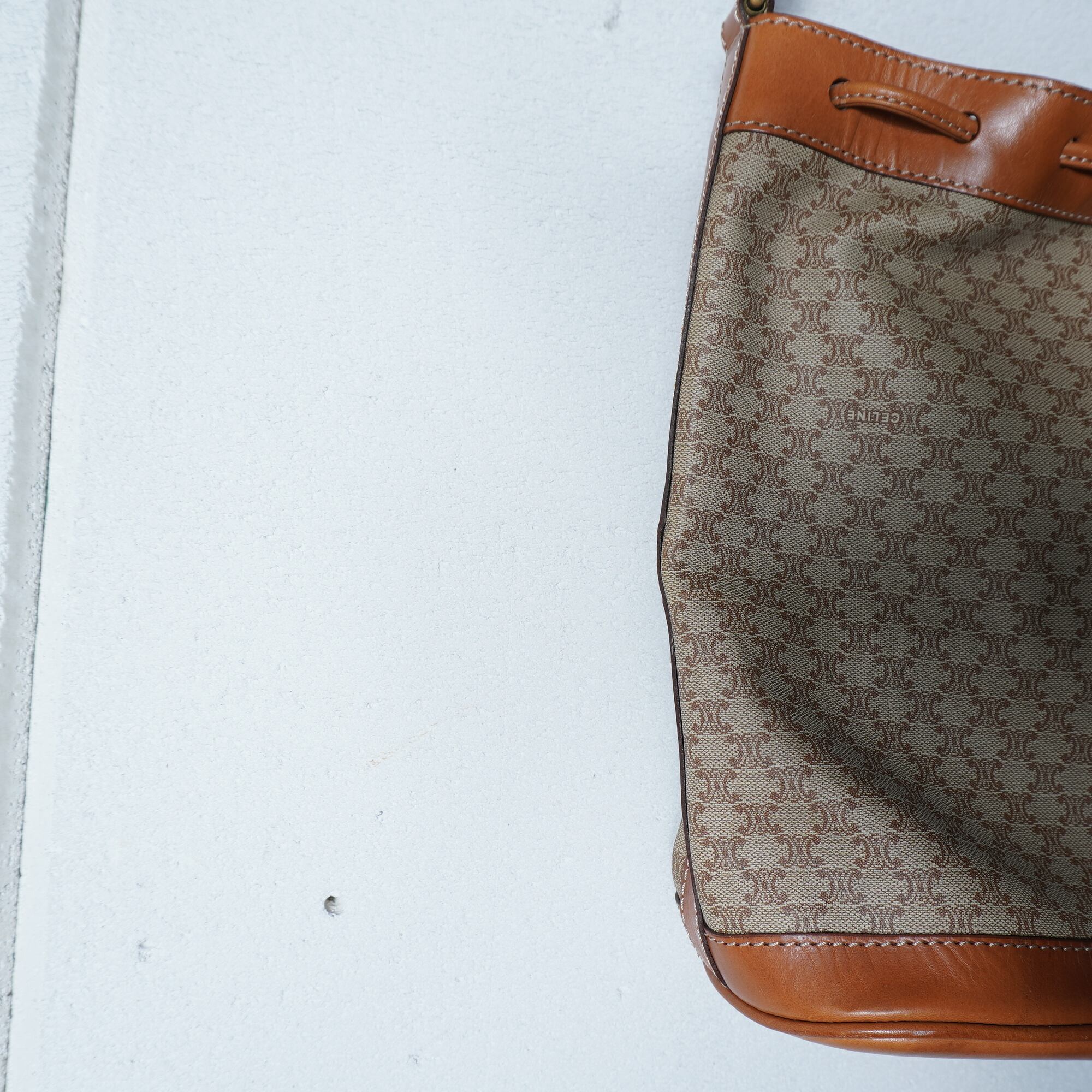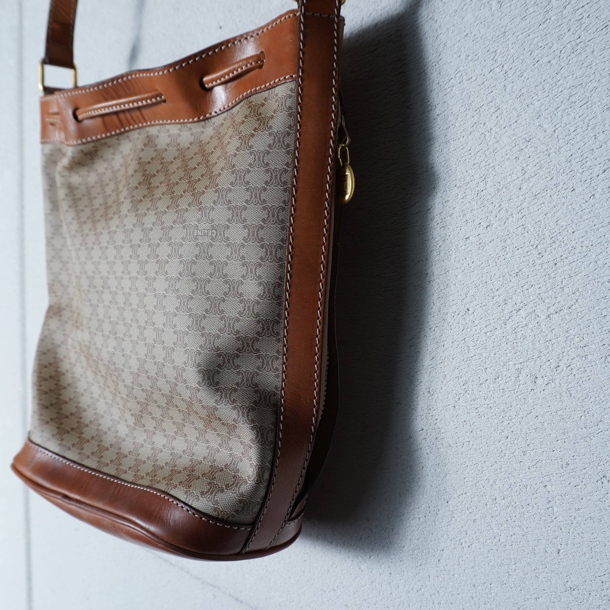【CELINE】セリーヌ トリオンフログマカダム柄レザーショルダーバッグ beige&brown