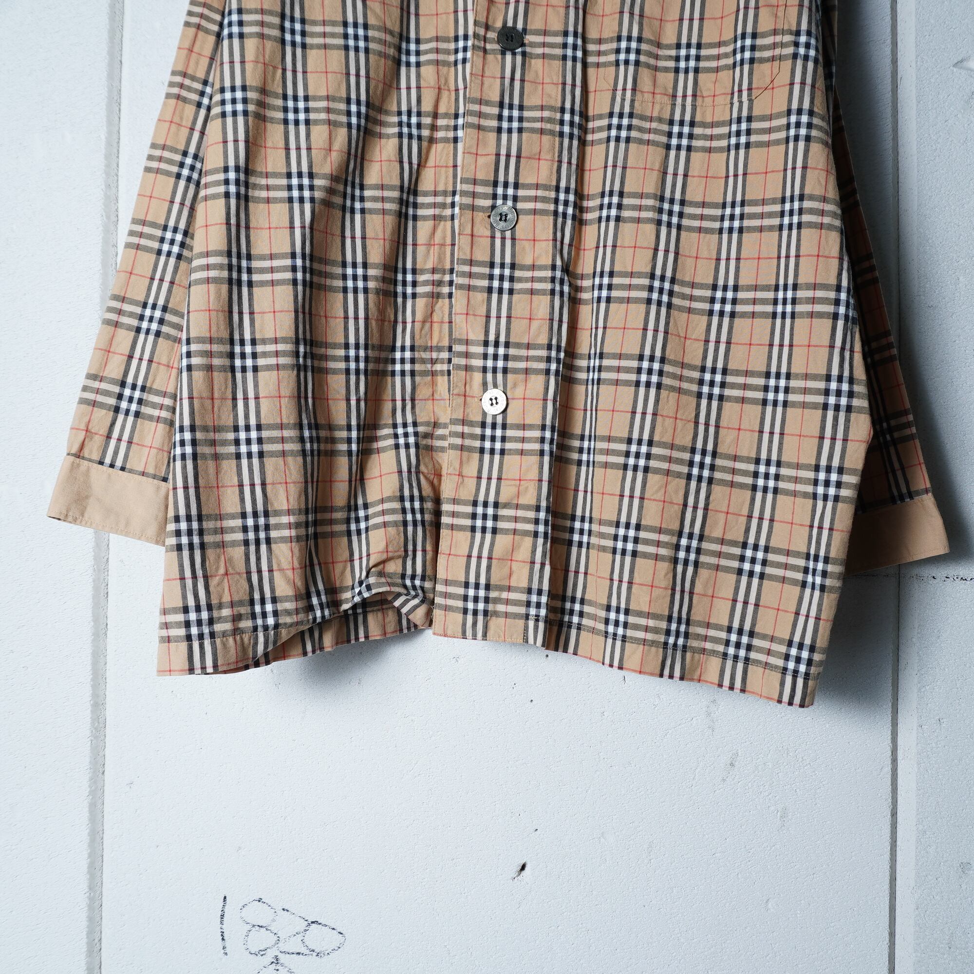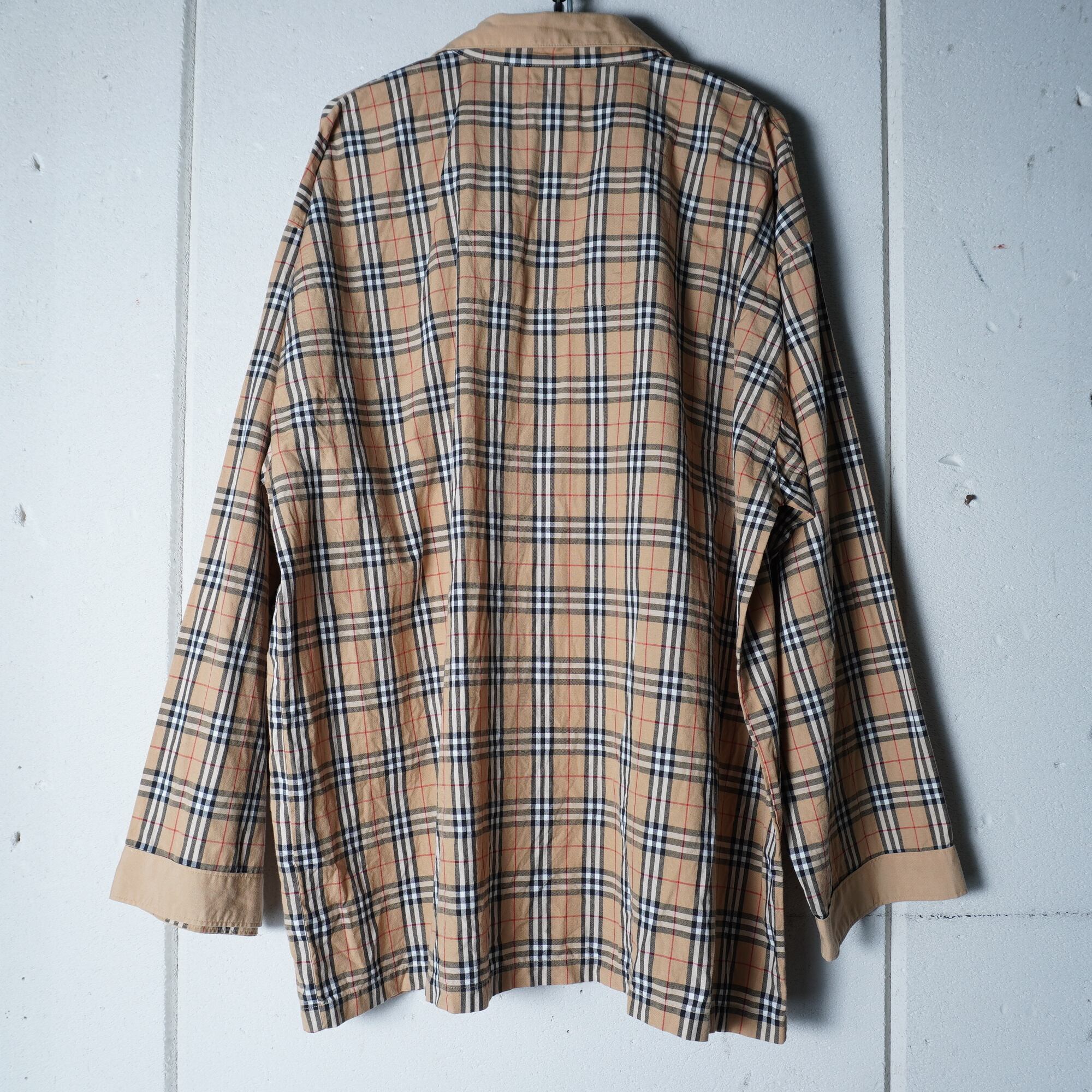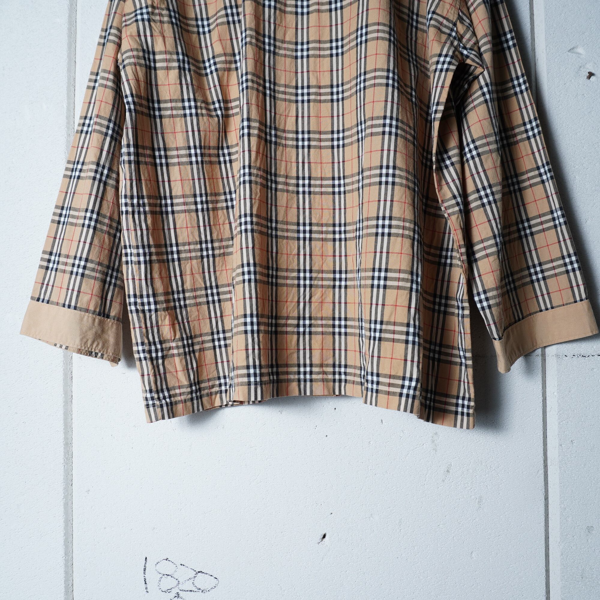 【BURBERRY】バーバリー ロゴ刺繍・ロゴボタンノバチェックパジャマシャツ beige