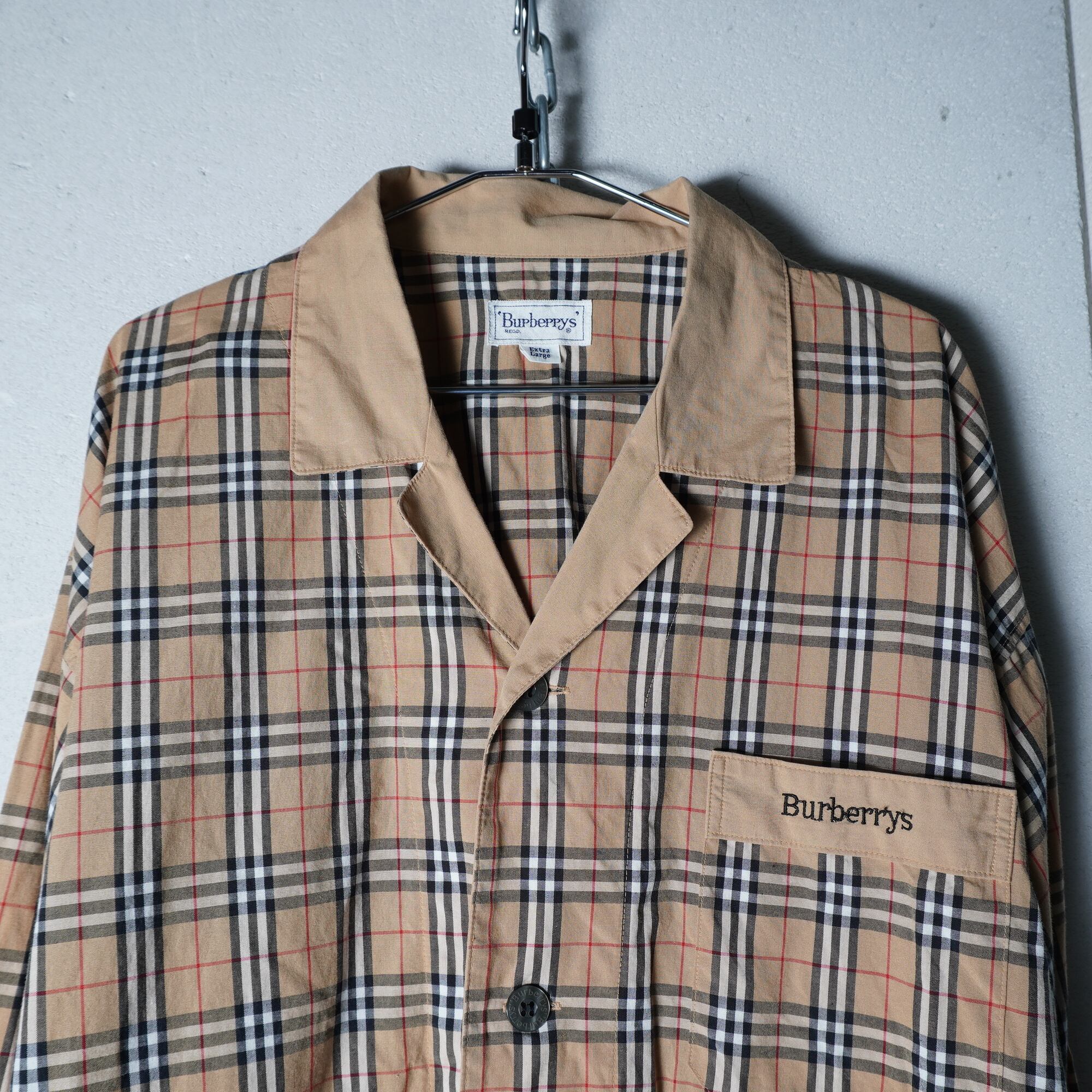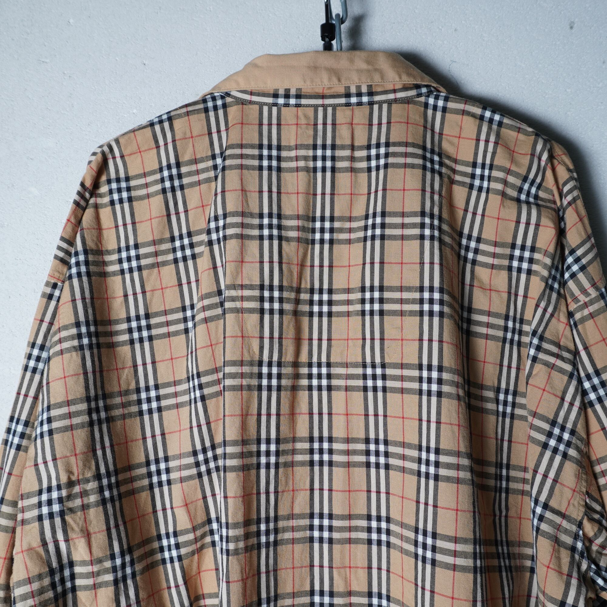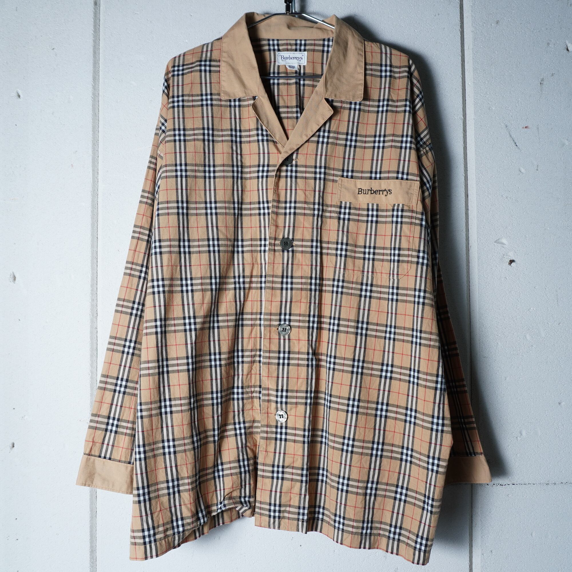 【BURBERRY】バーバリー ロゴ刺繍・ロゴボタンノバチェックパジャマシャツ beige