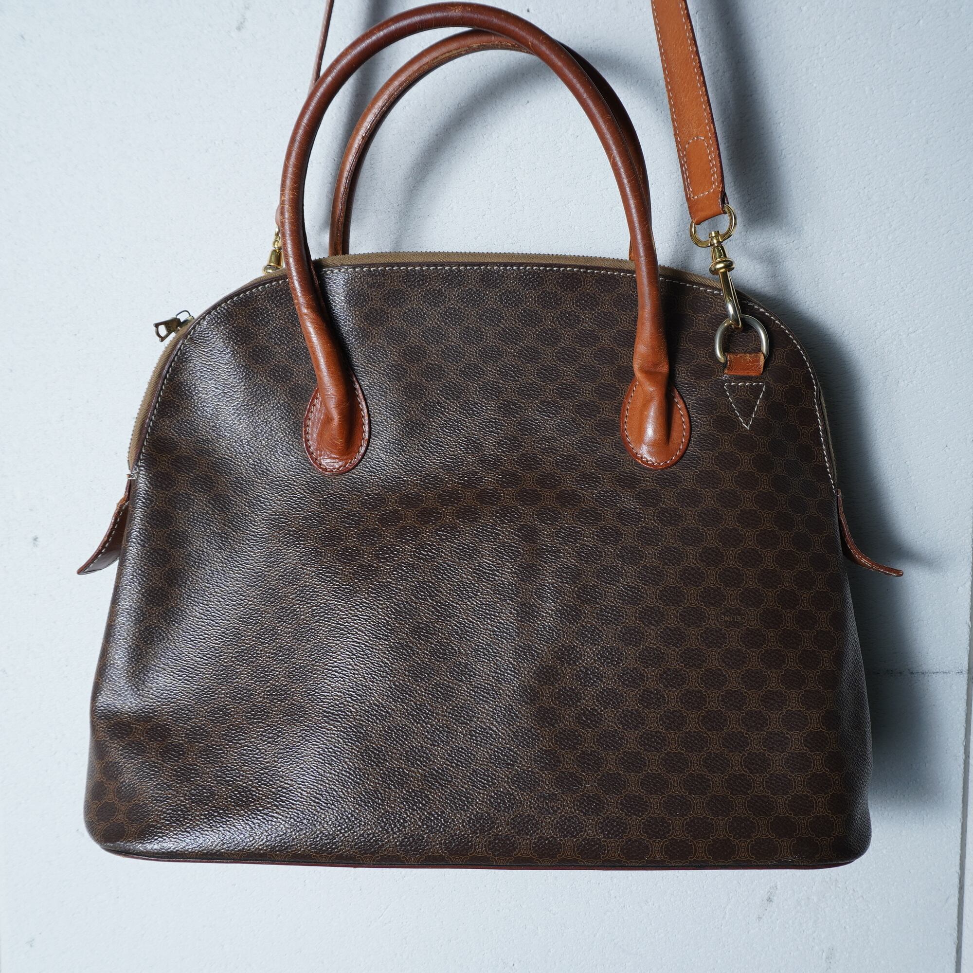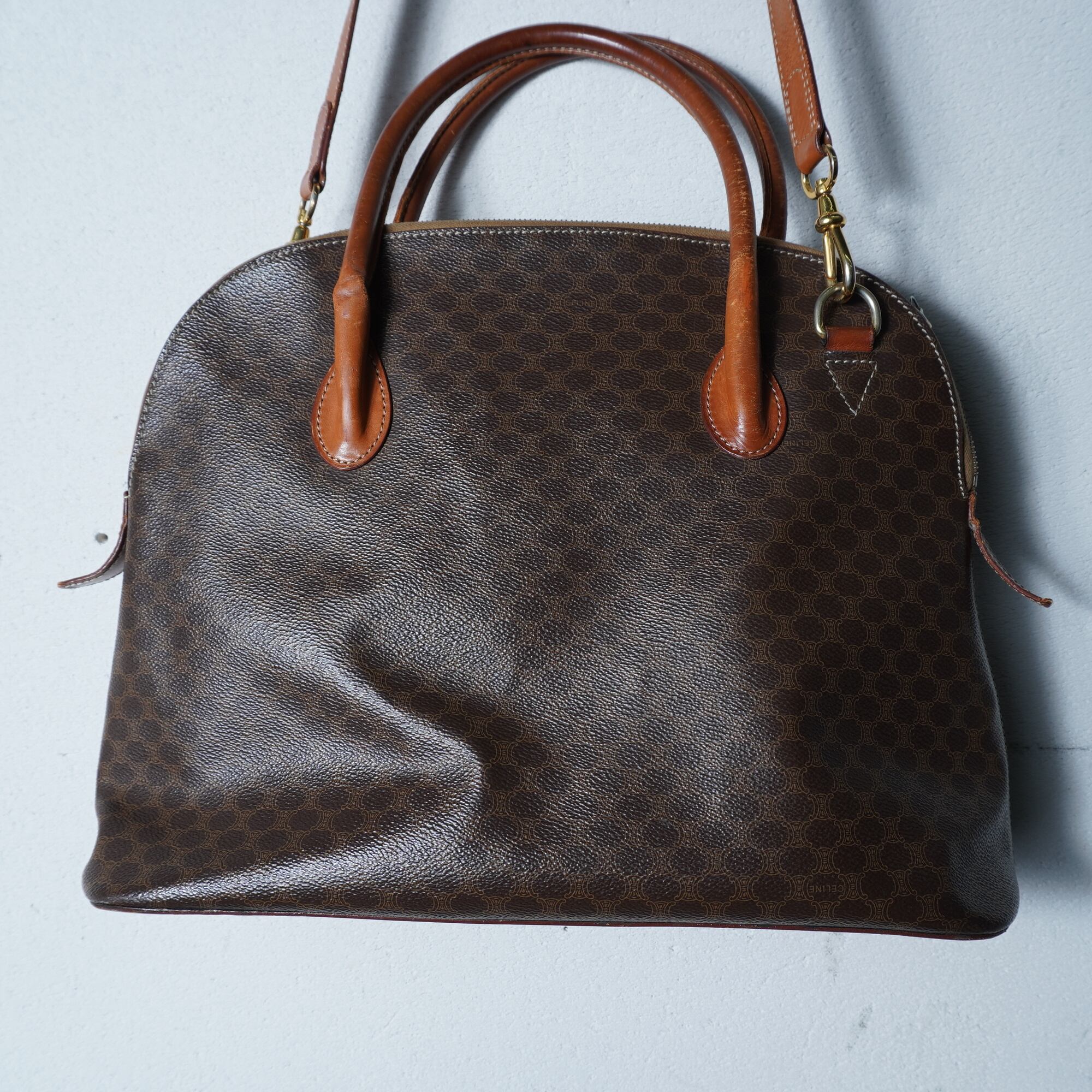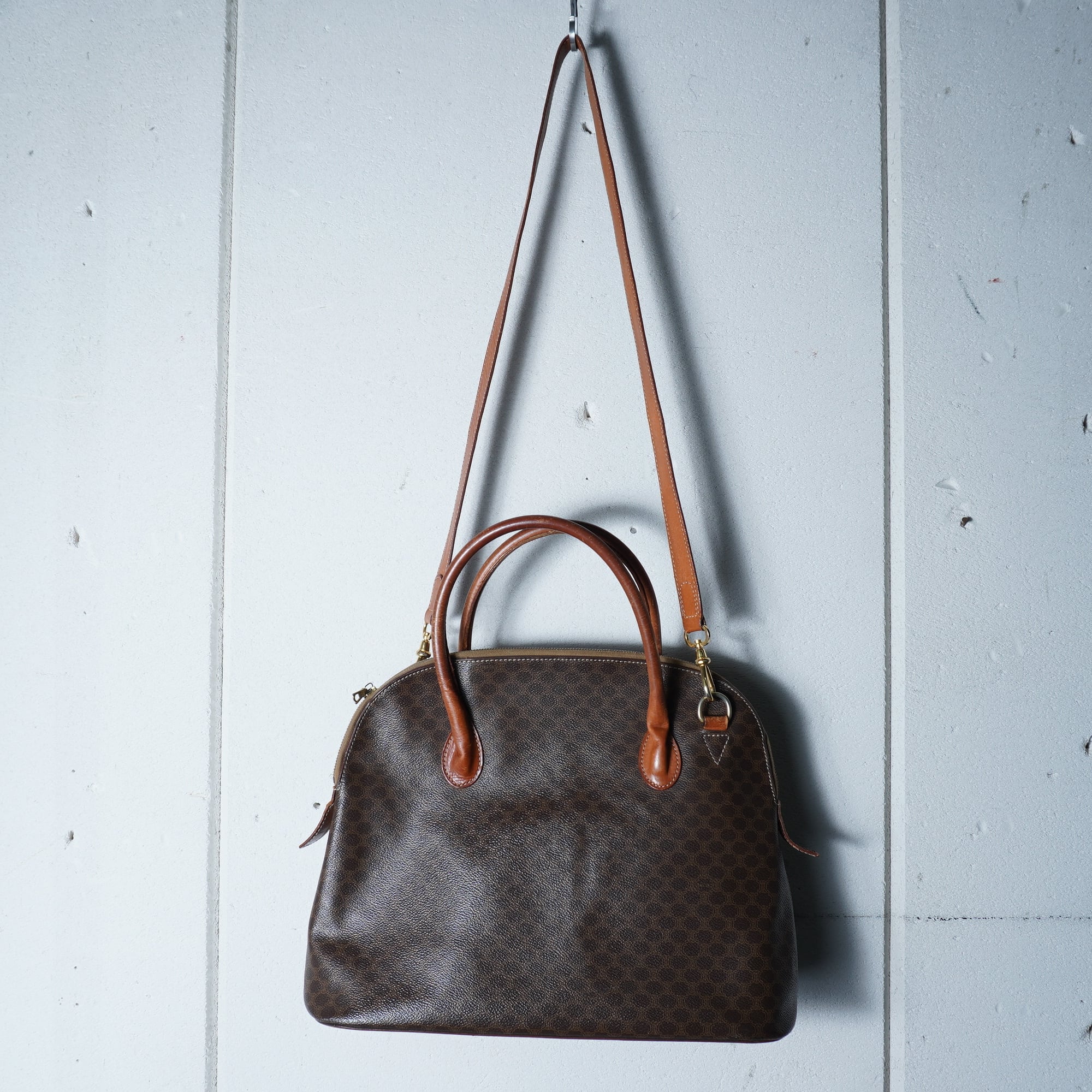【CELINE】セリーヌ マカダム柄2WAYレザーショルダーバンドバッグ brown