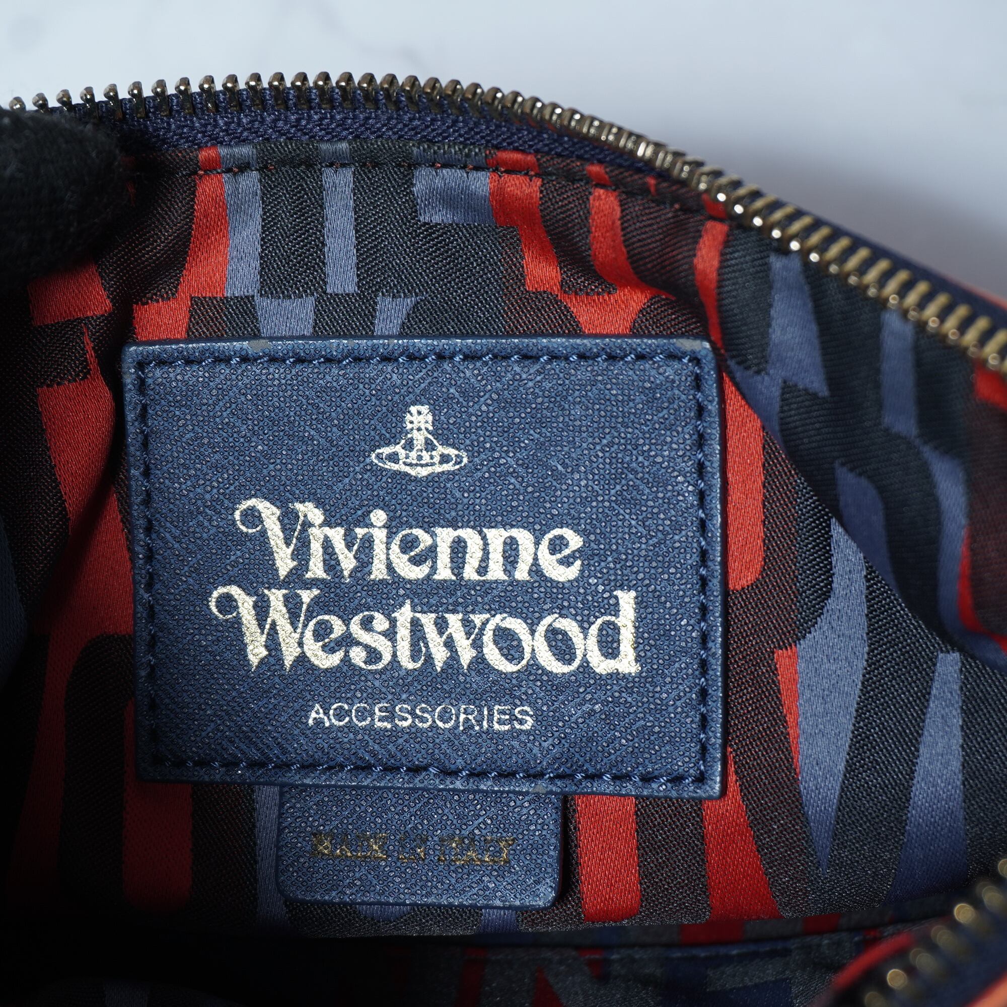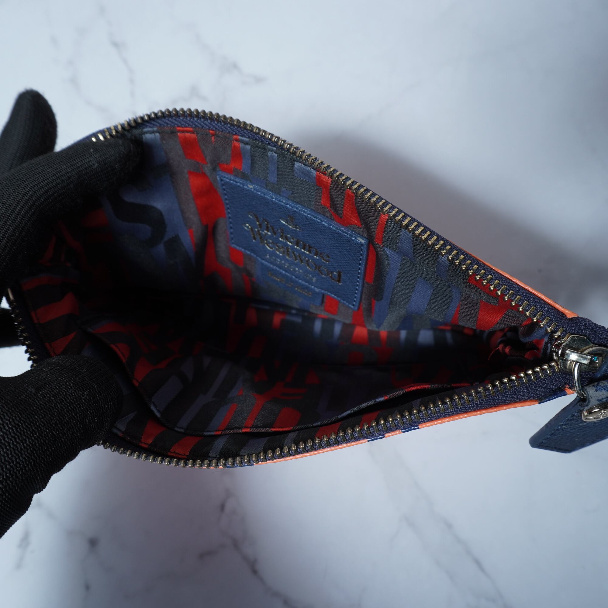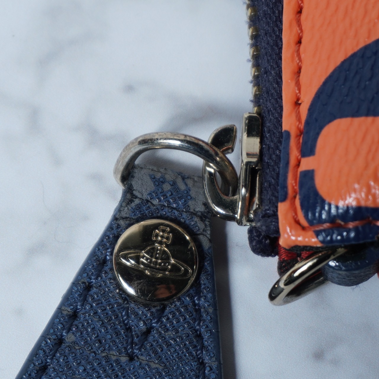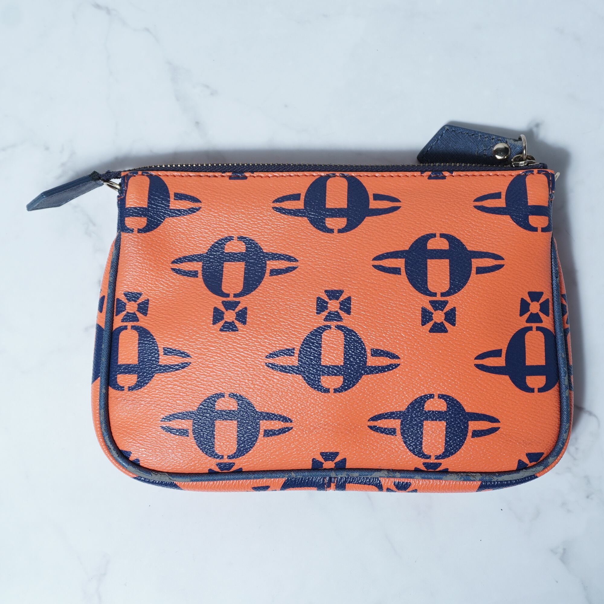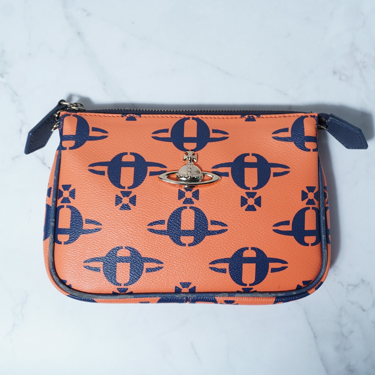 【Vivienne Westwood】ヴィヴィアンウエストウッド オーブロゴ・オーブ総柄レザーポーチ orange&navy