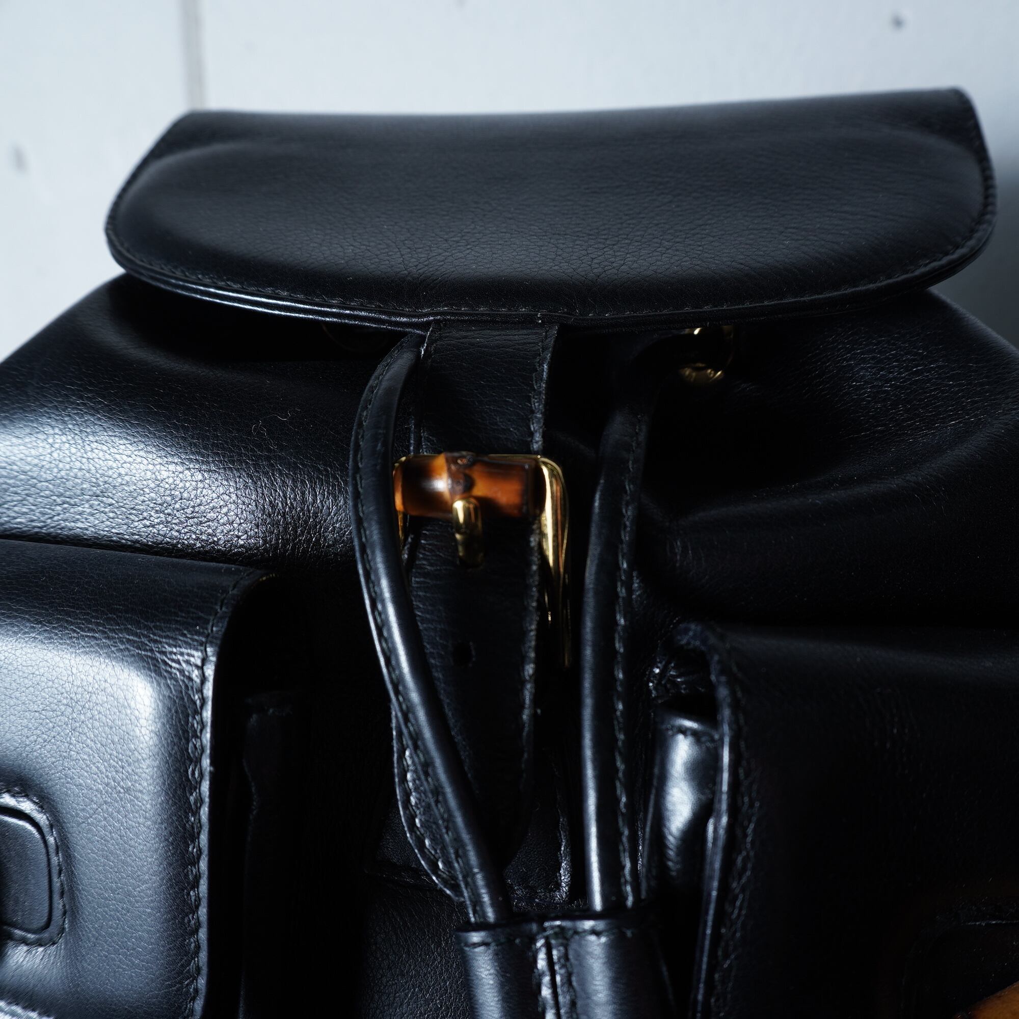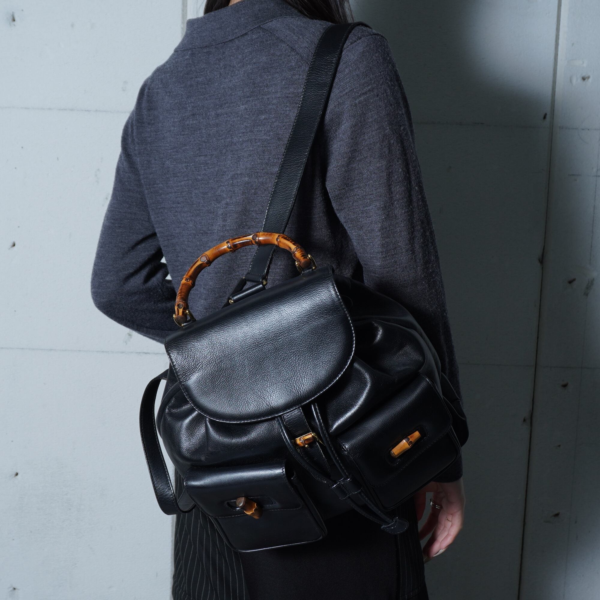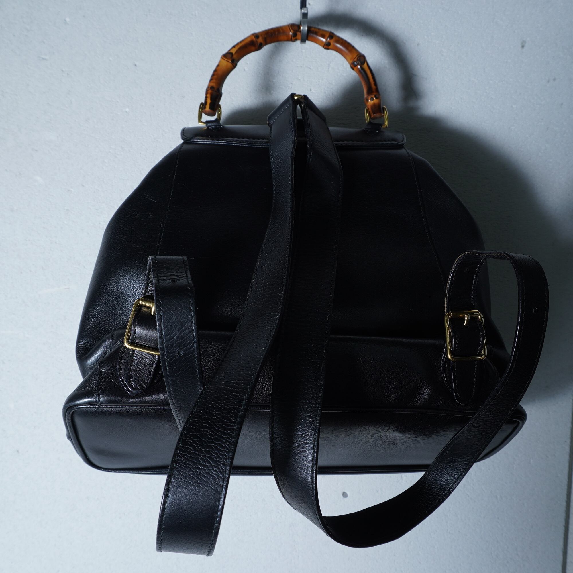 【GUCCI】グッチ 美品バンブーオールレザーバックパック black