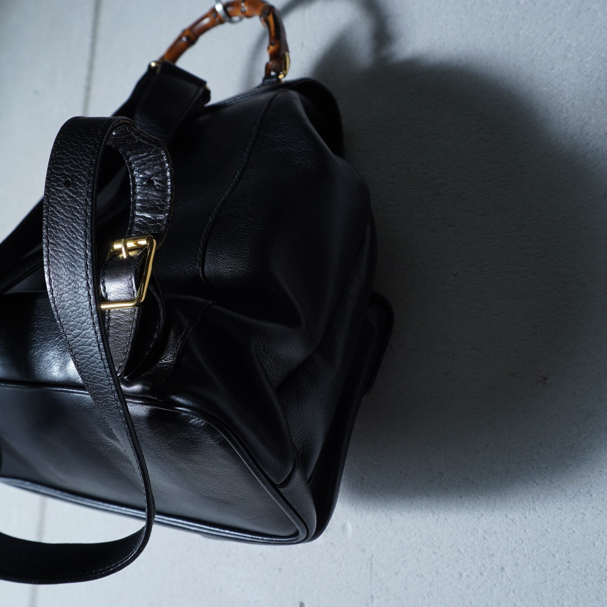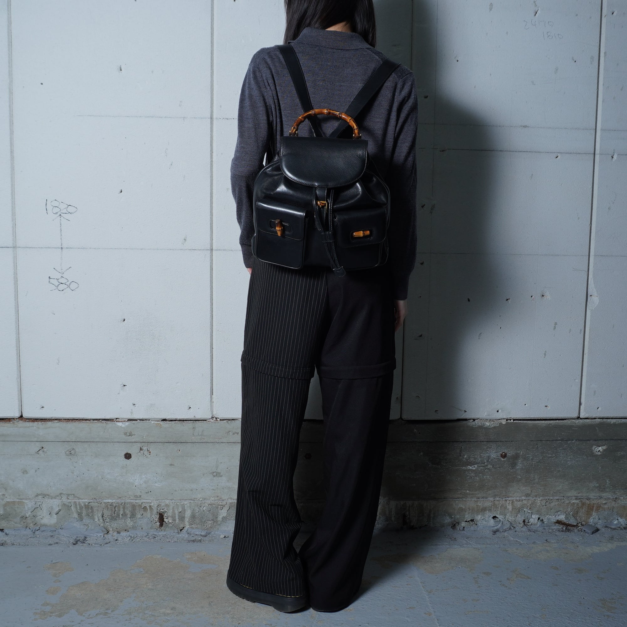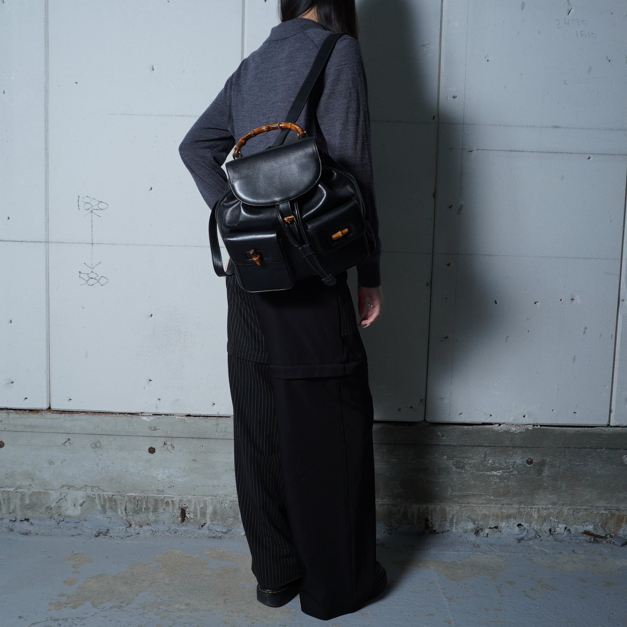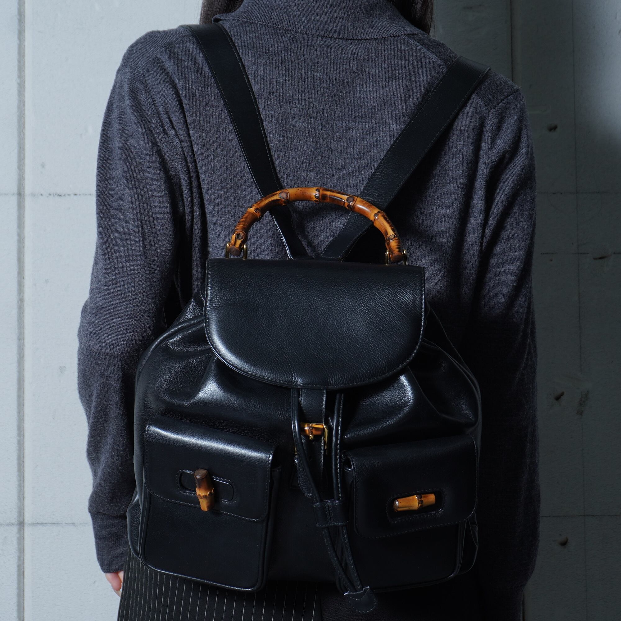 【GUCCI】グッチ 美品バンブーオールレザーバックパック black