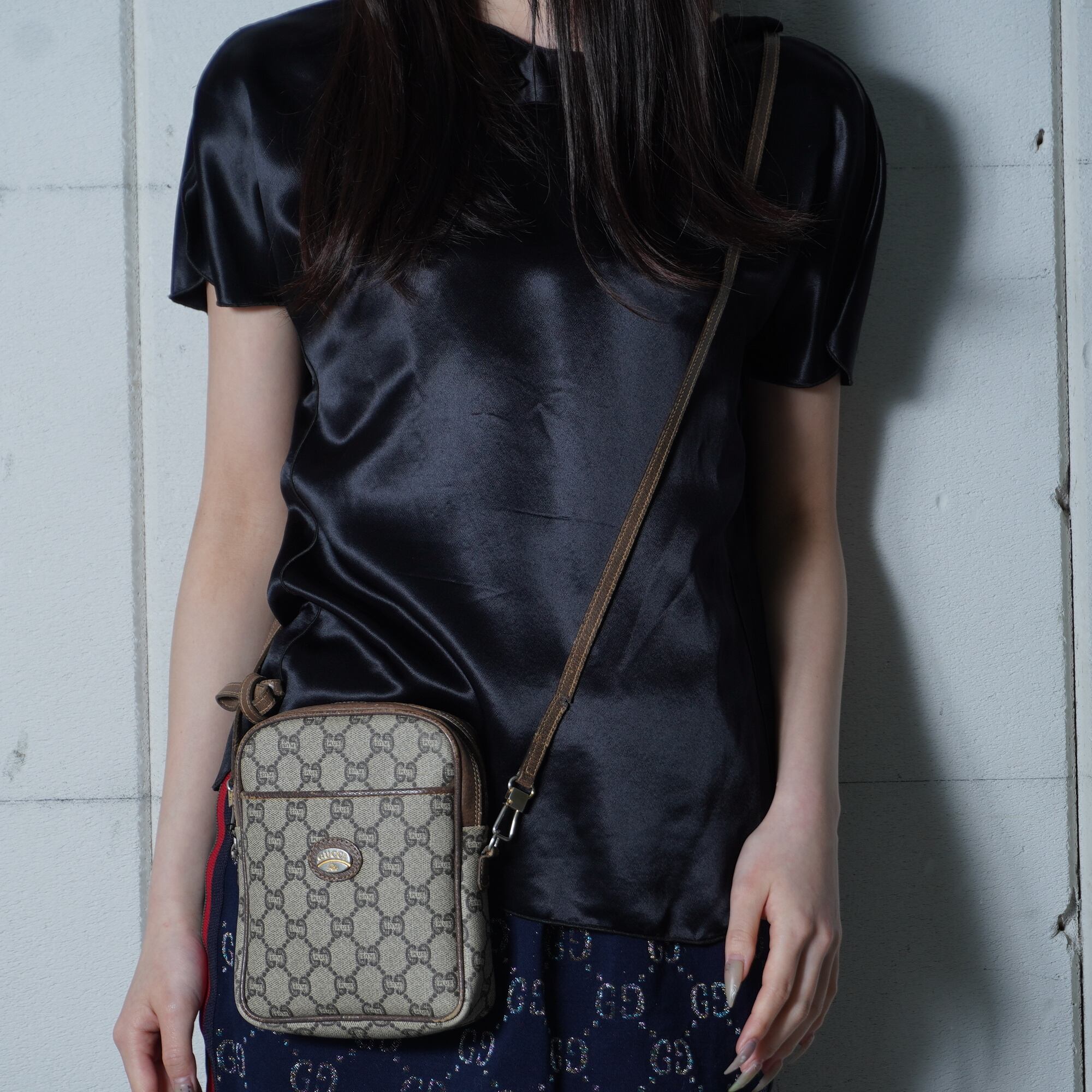 【GUCCI】グッチ GGロゴ総柄 レザーショルダーバッグ beige&brown