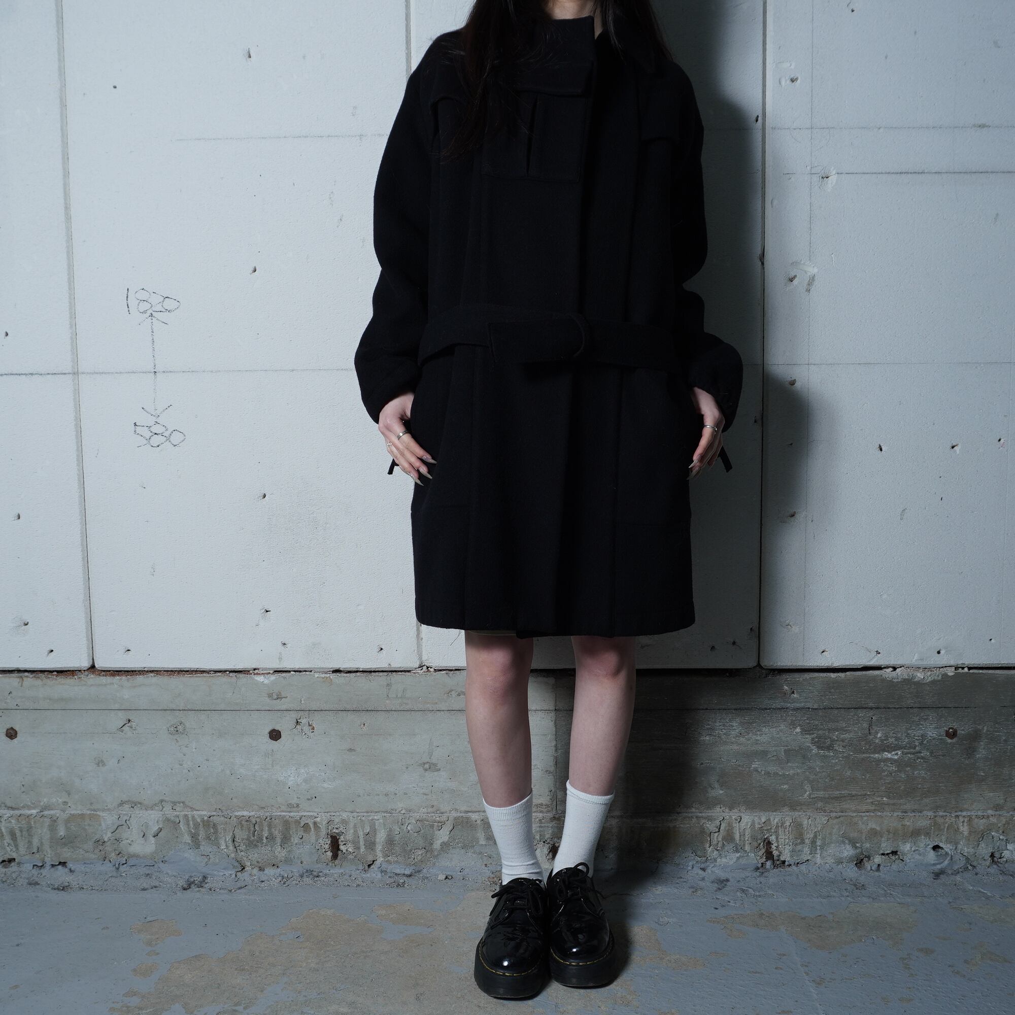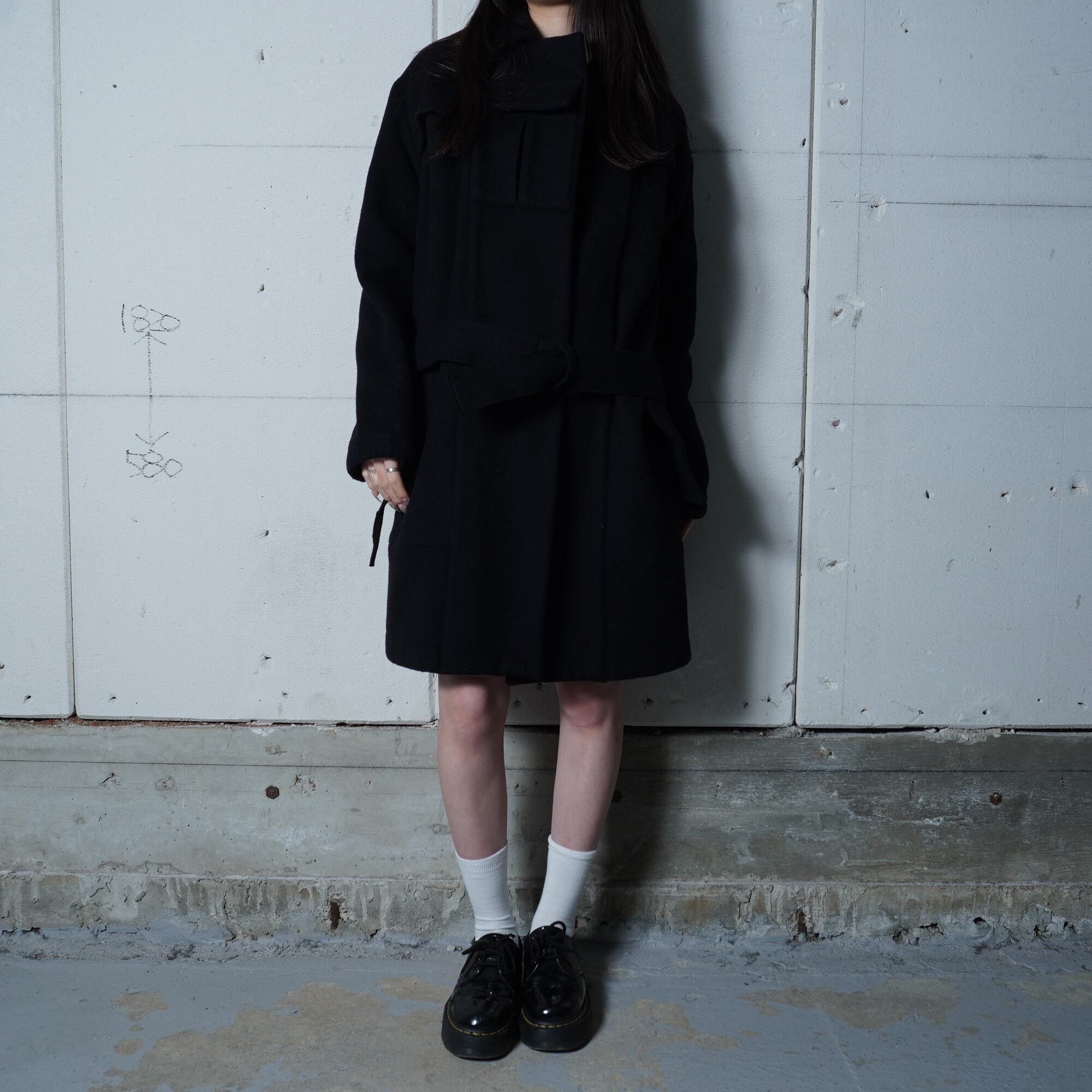 【YOHJI YAMAMOTO】99aw フランネルベルテッドコート black