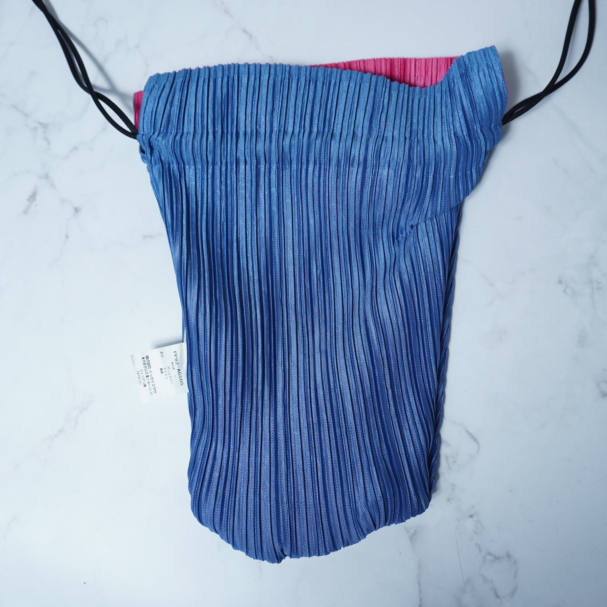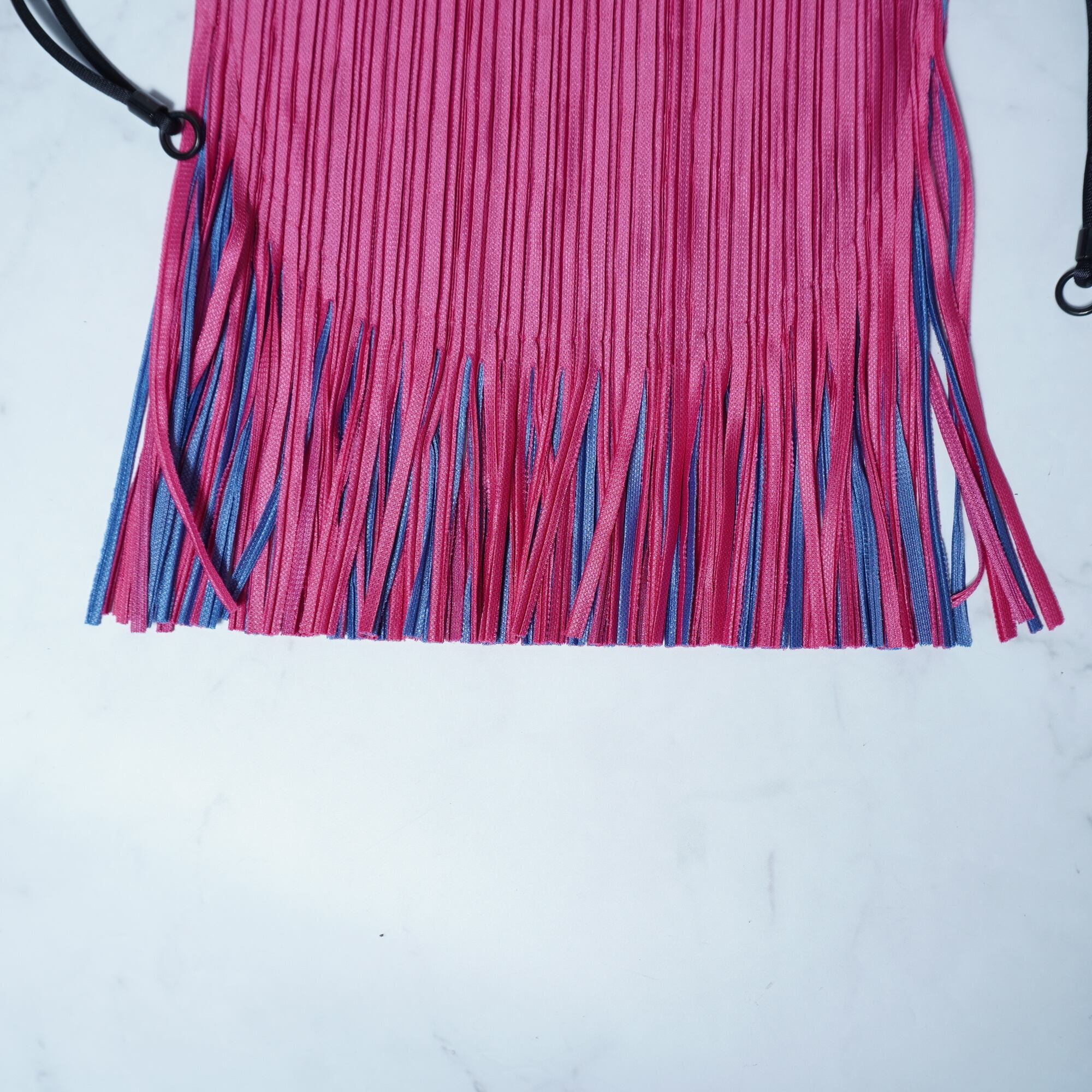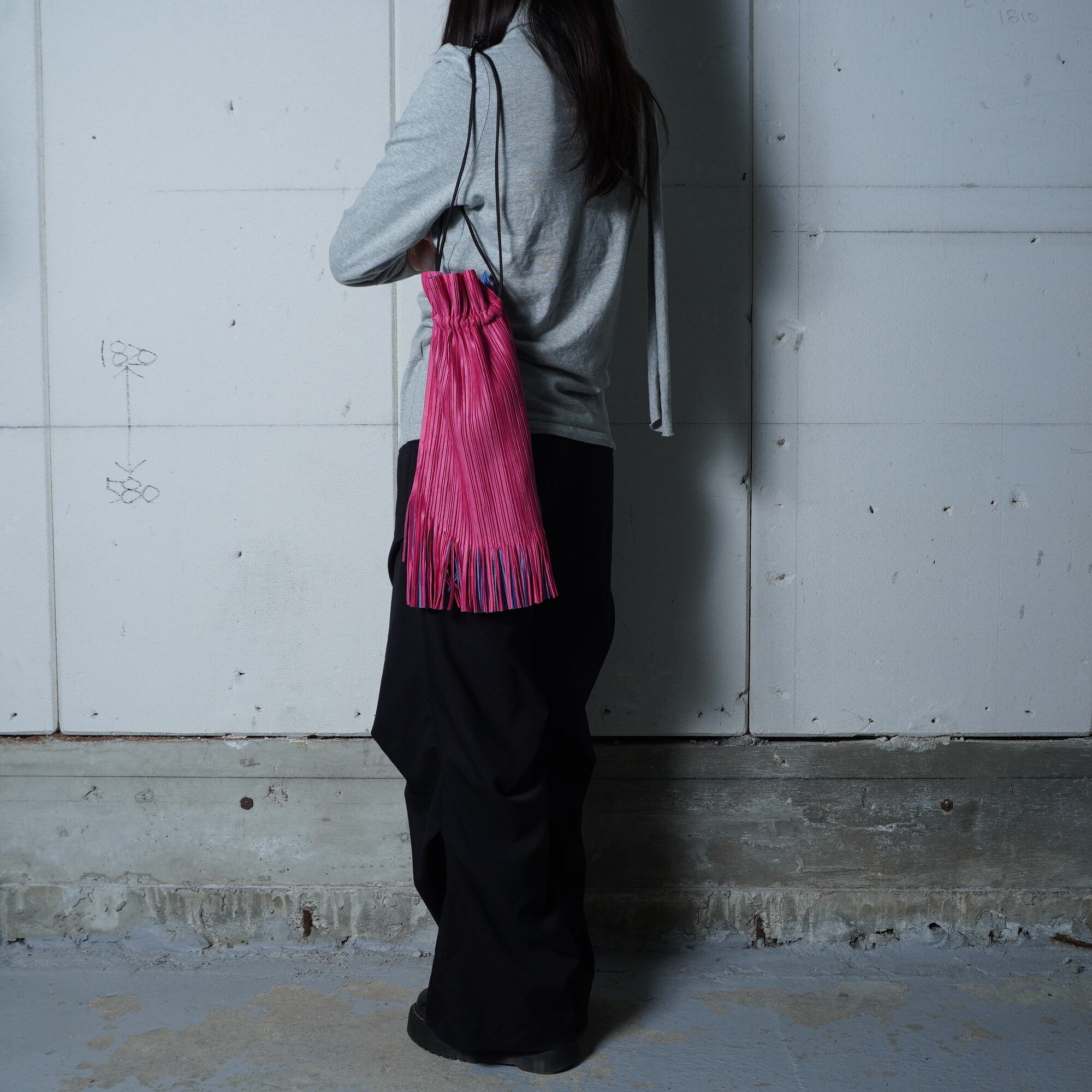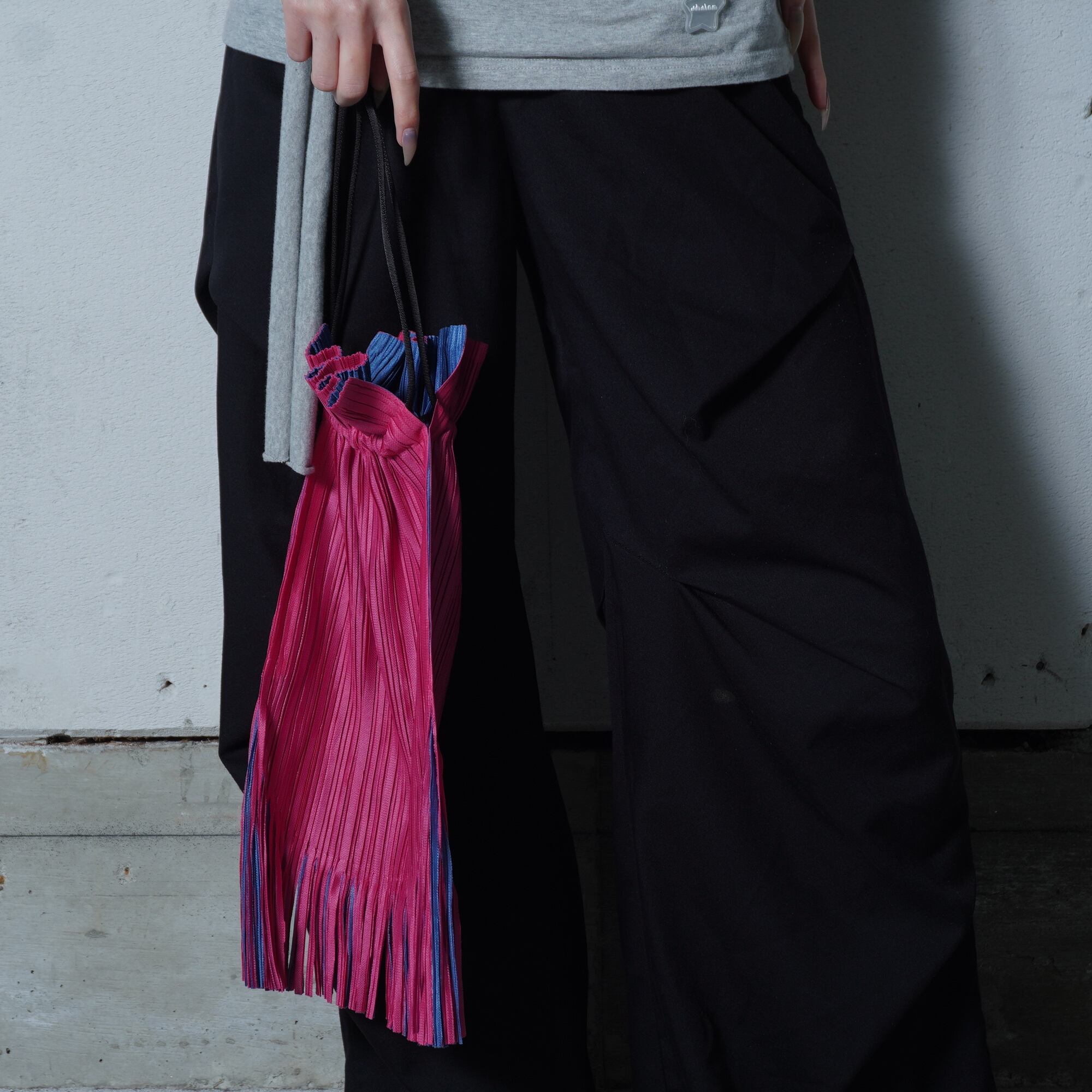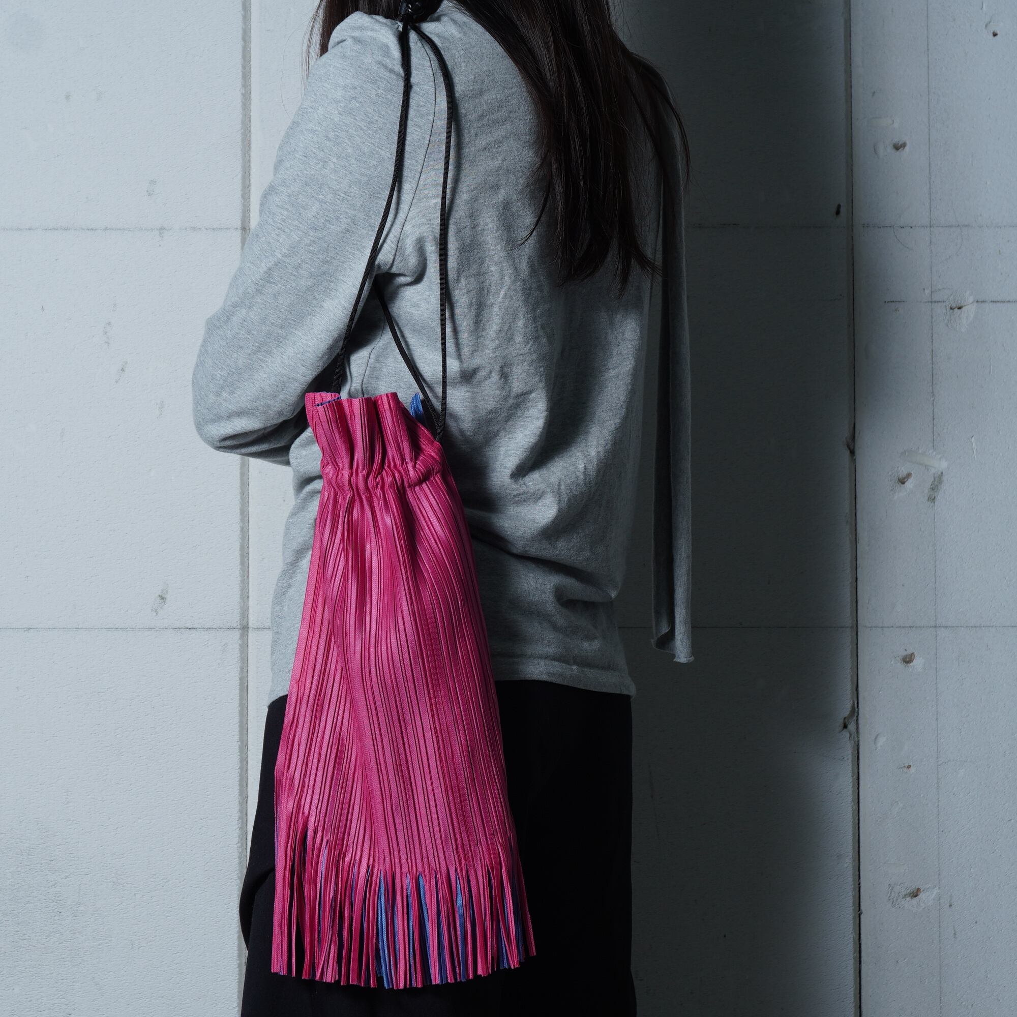 【PLEATS PLEASE】プリーツプリーズ イッセイミヤケ バイカラーフリンジ巾着バッグ pink&blue