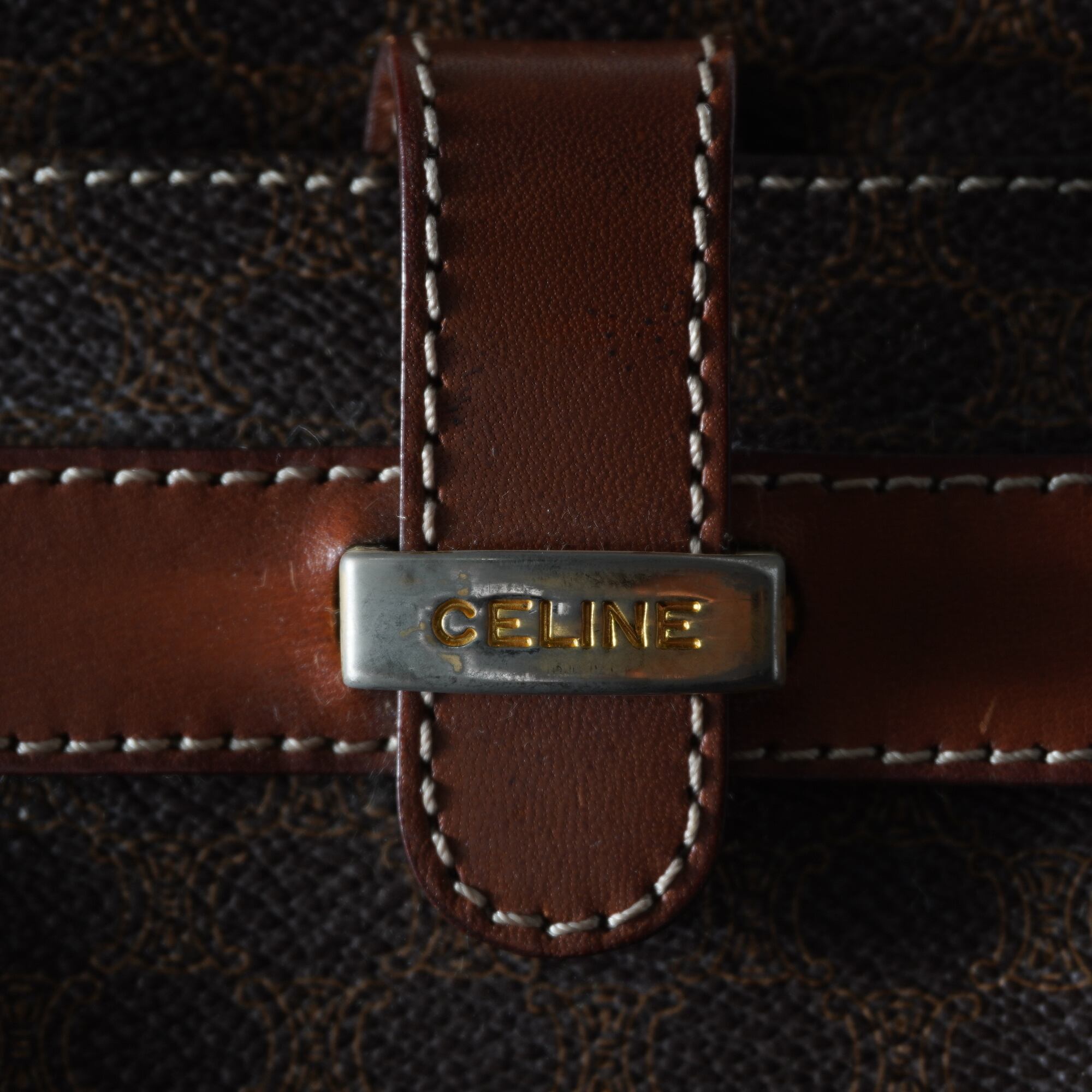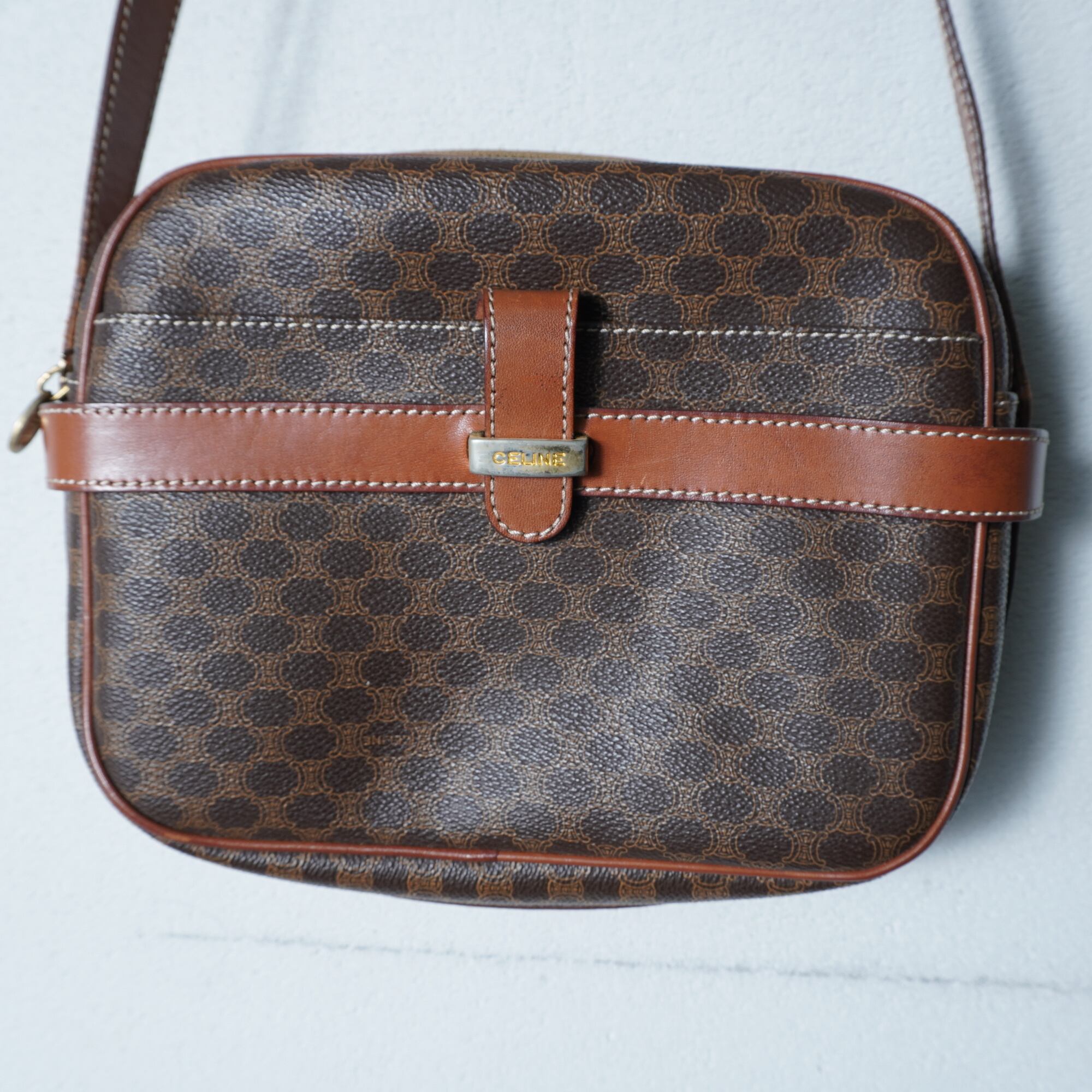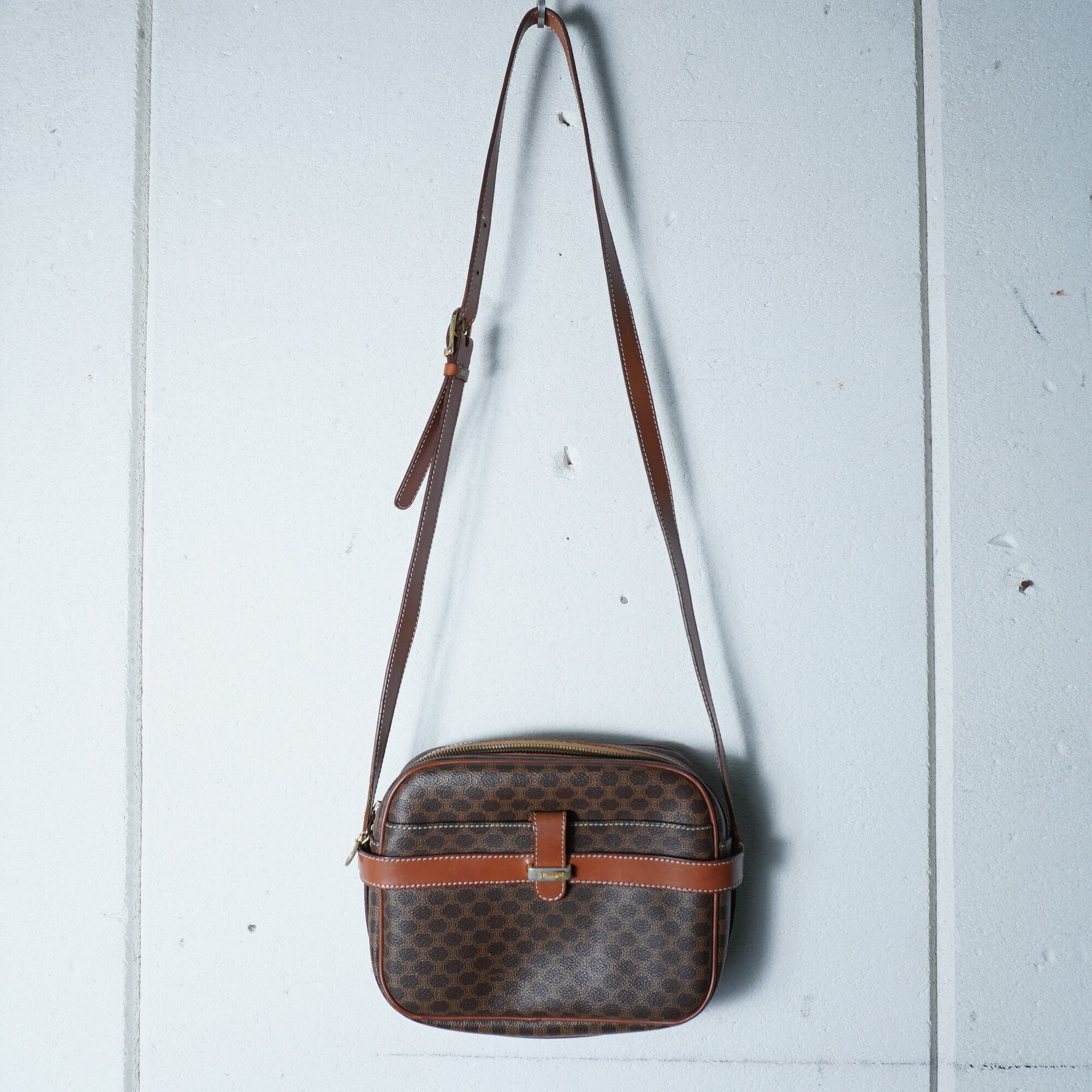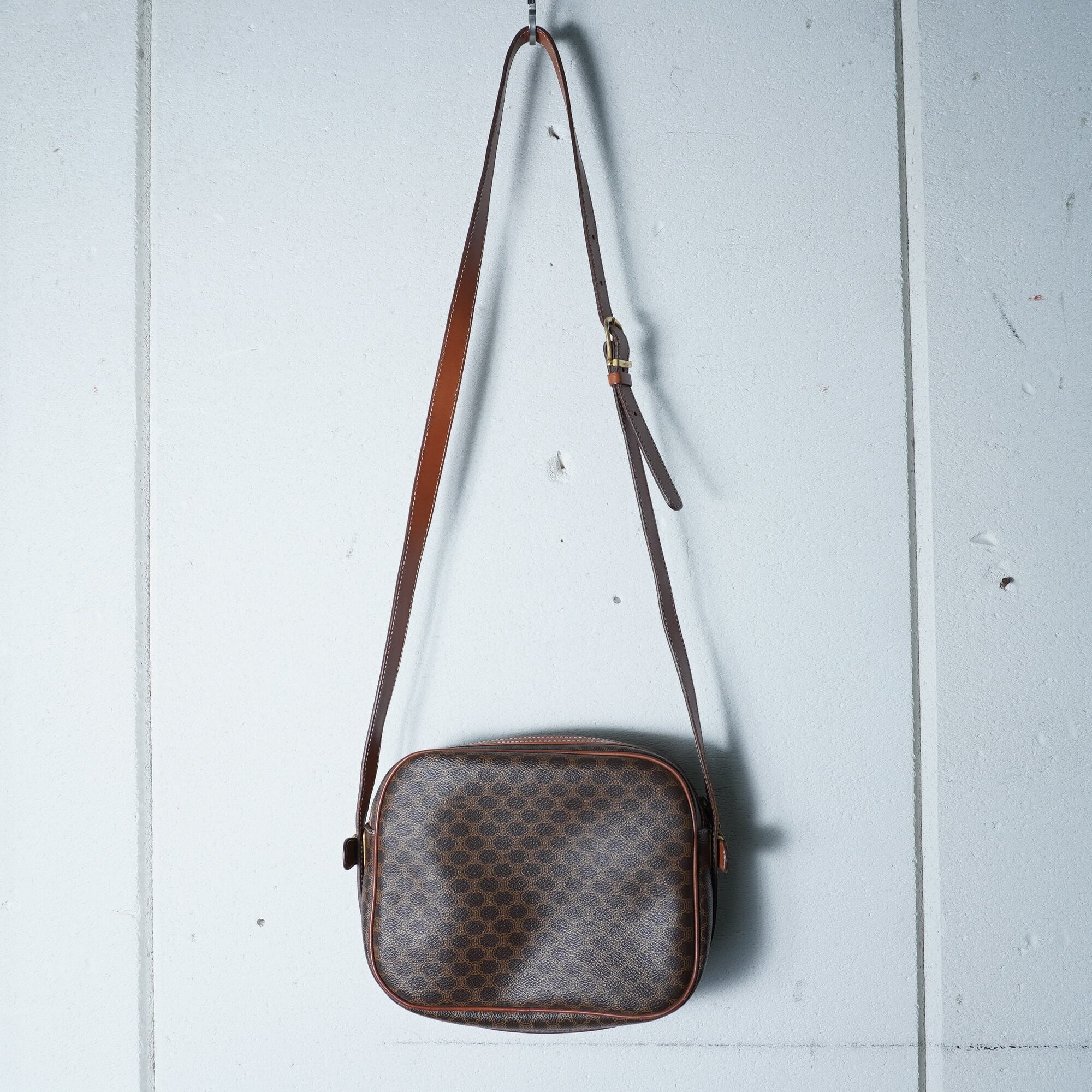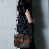 【CELINE】セリーヌ ロゴ入マカダム柄レザーショルダーバッグ brown