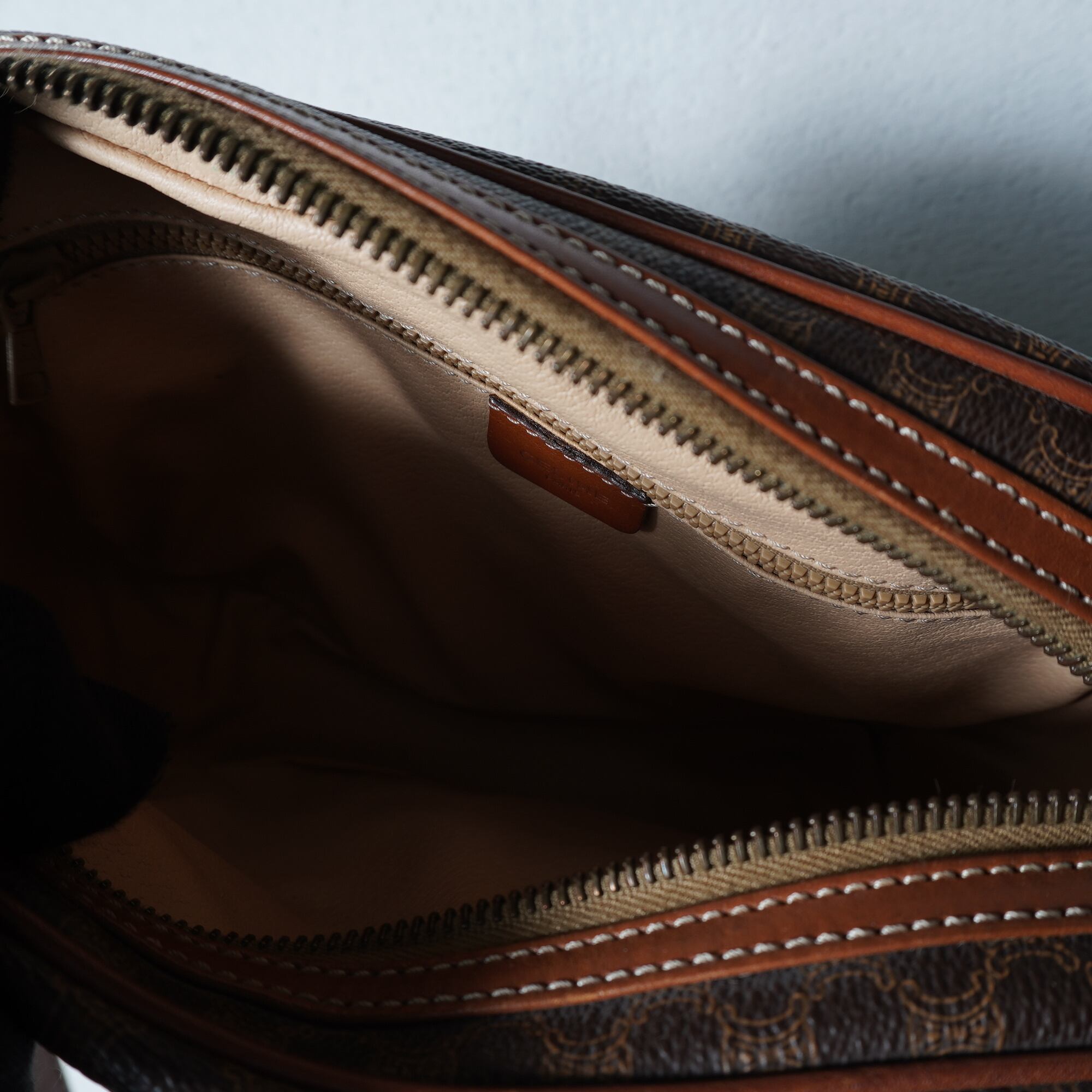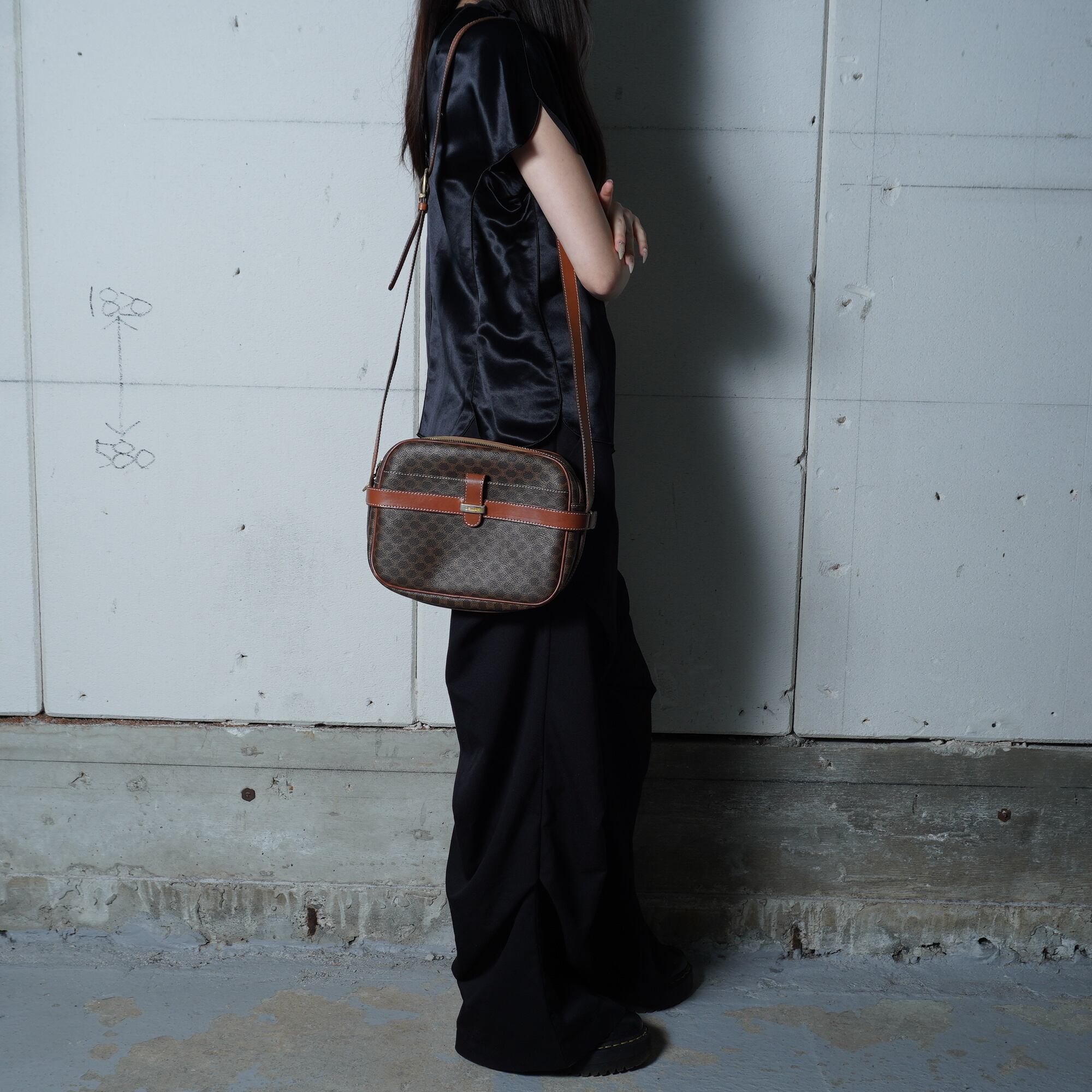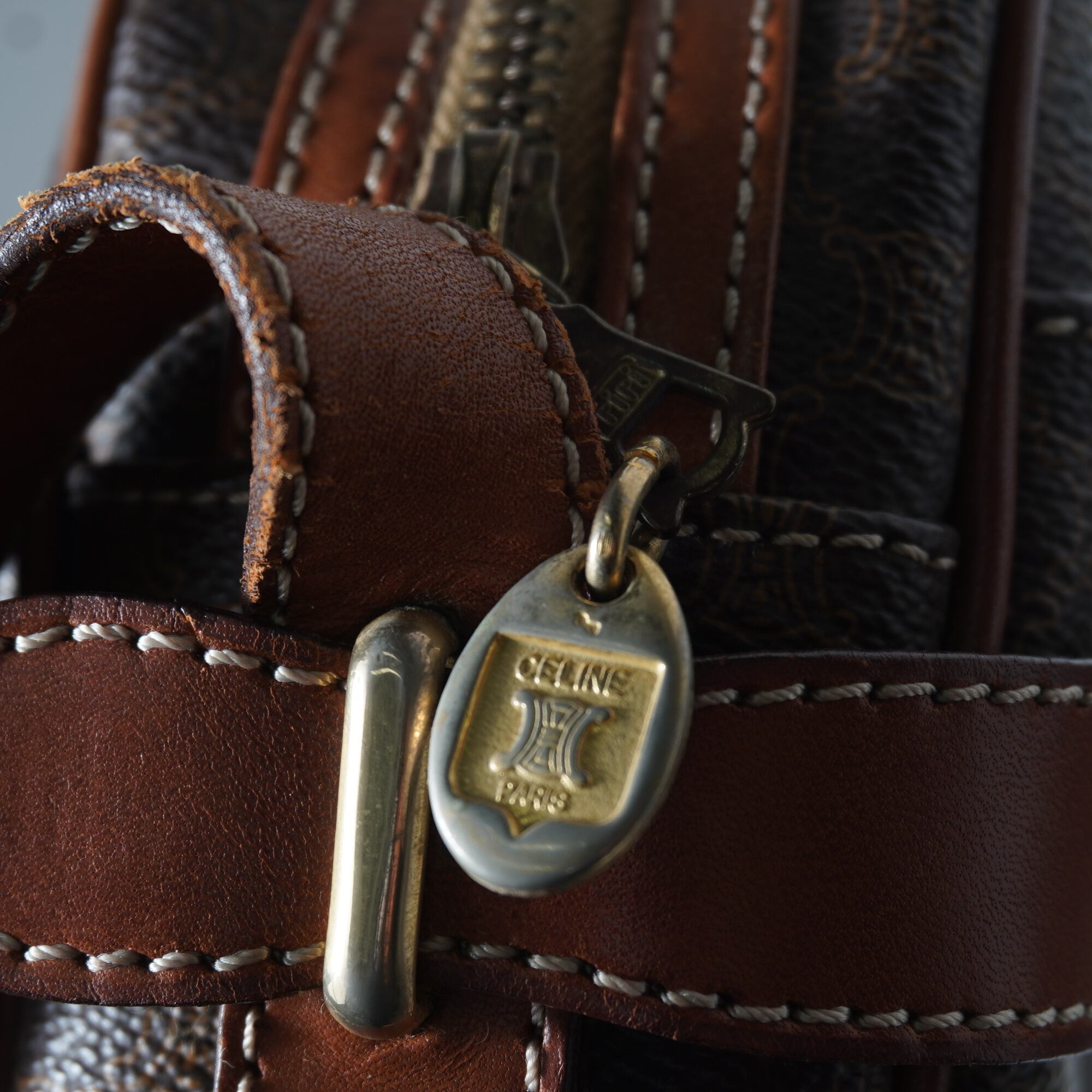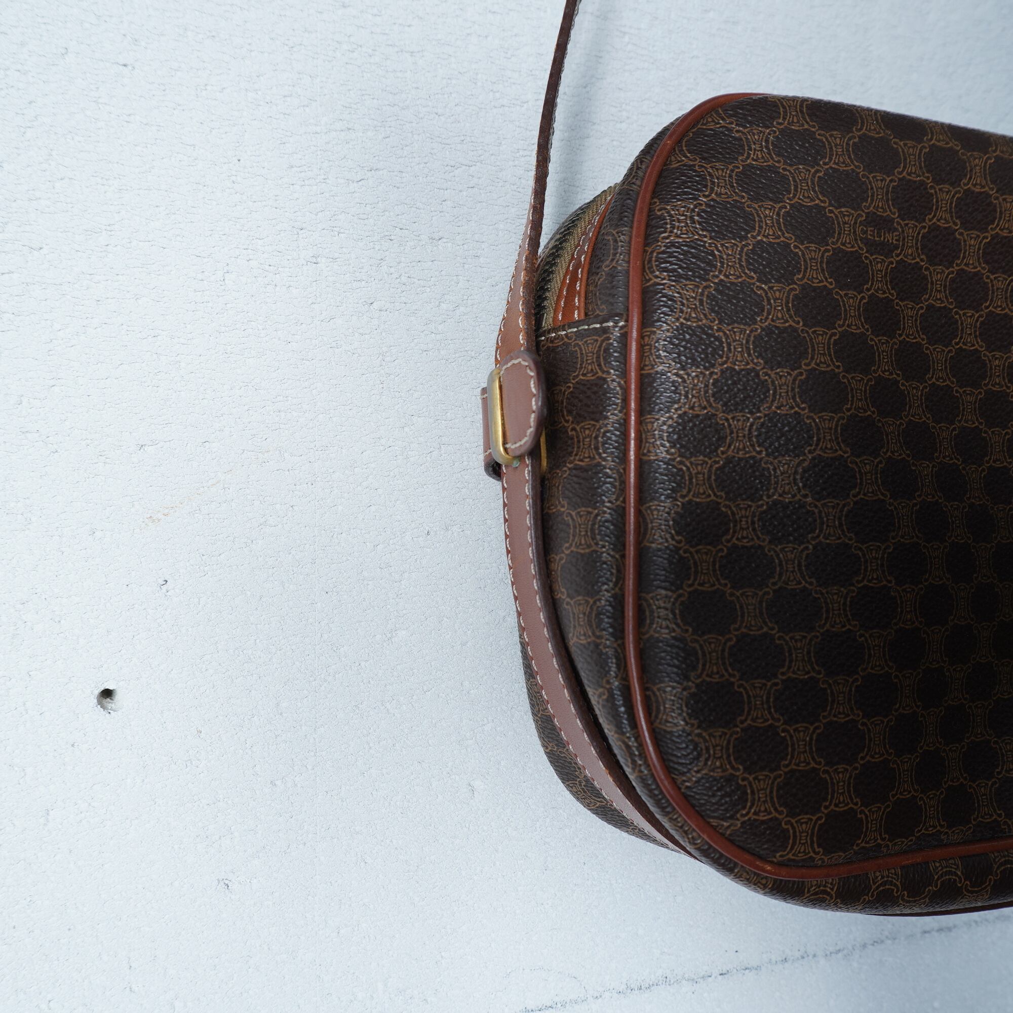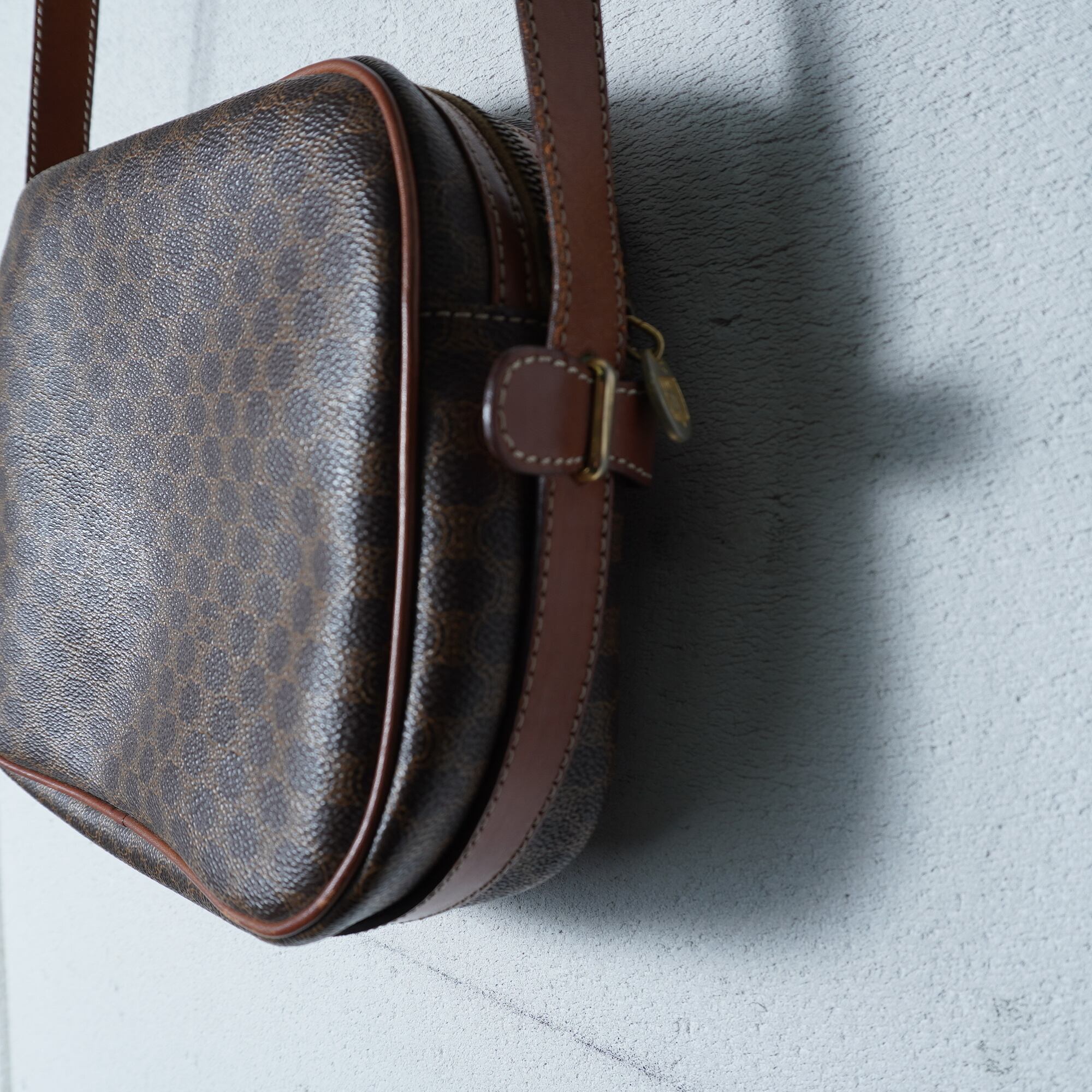 【CELINE】セリーヌ ロゴ入マカダム柄レザーショルダーバッグ brown