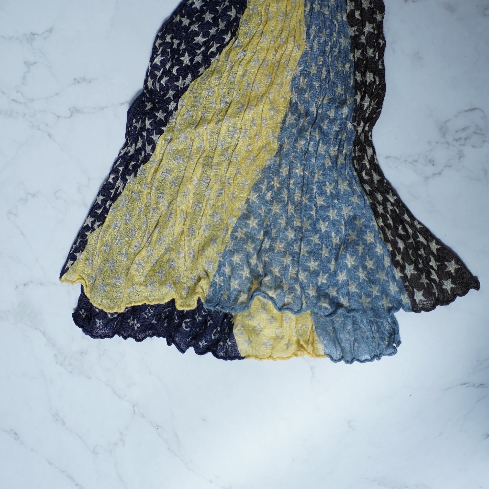【LOUIS VUITTON】ルイヴィトン モノグラム・スター・シルク混リネンストール navy&yellow&blue