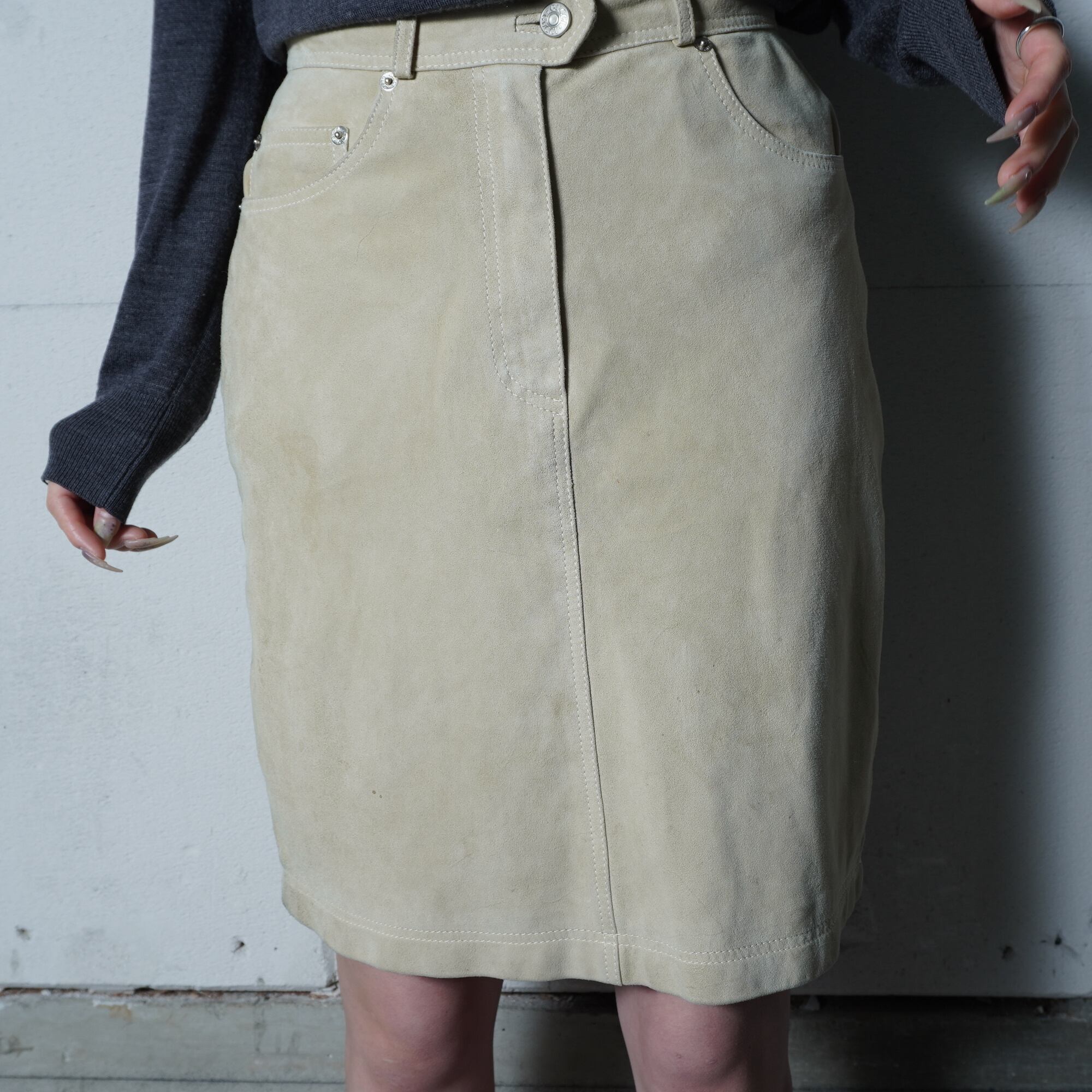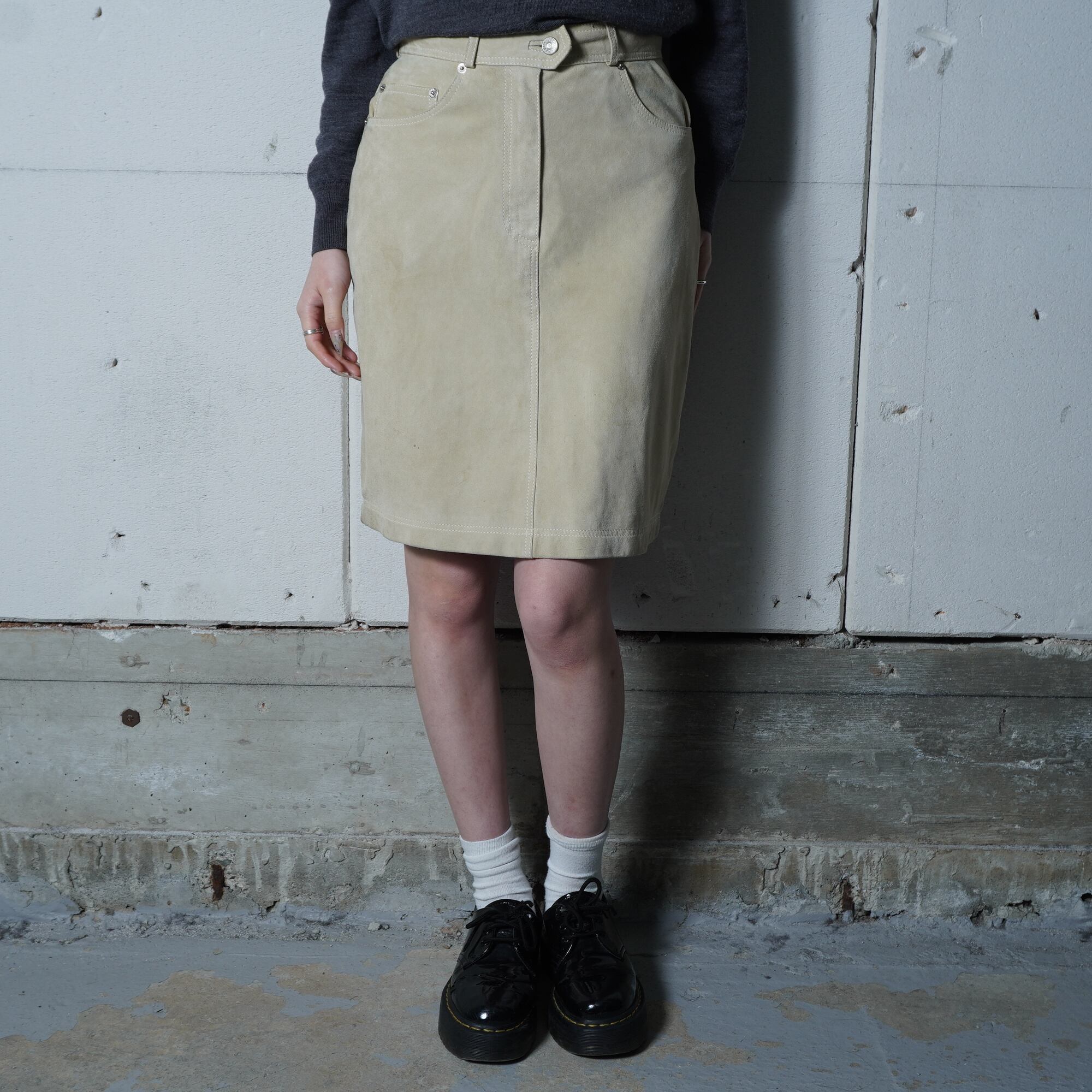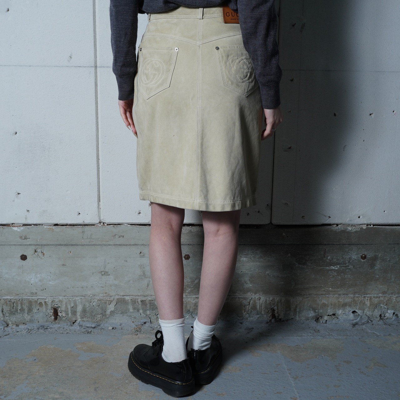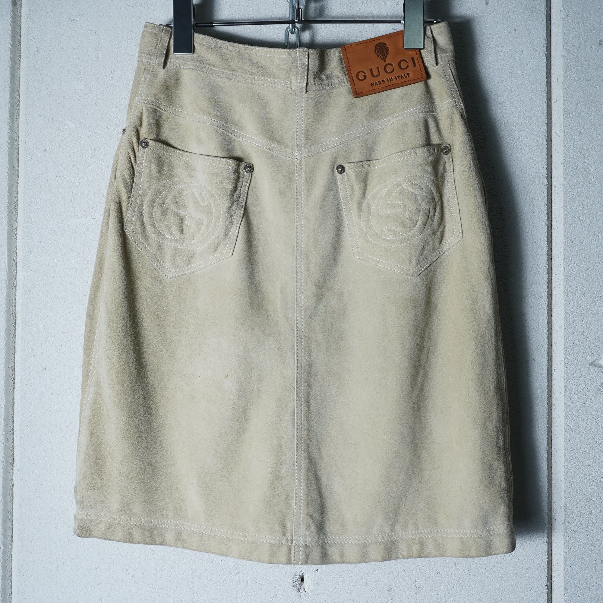 【GUCCI】グッチ インターロッキンGスエードレザースカート beige