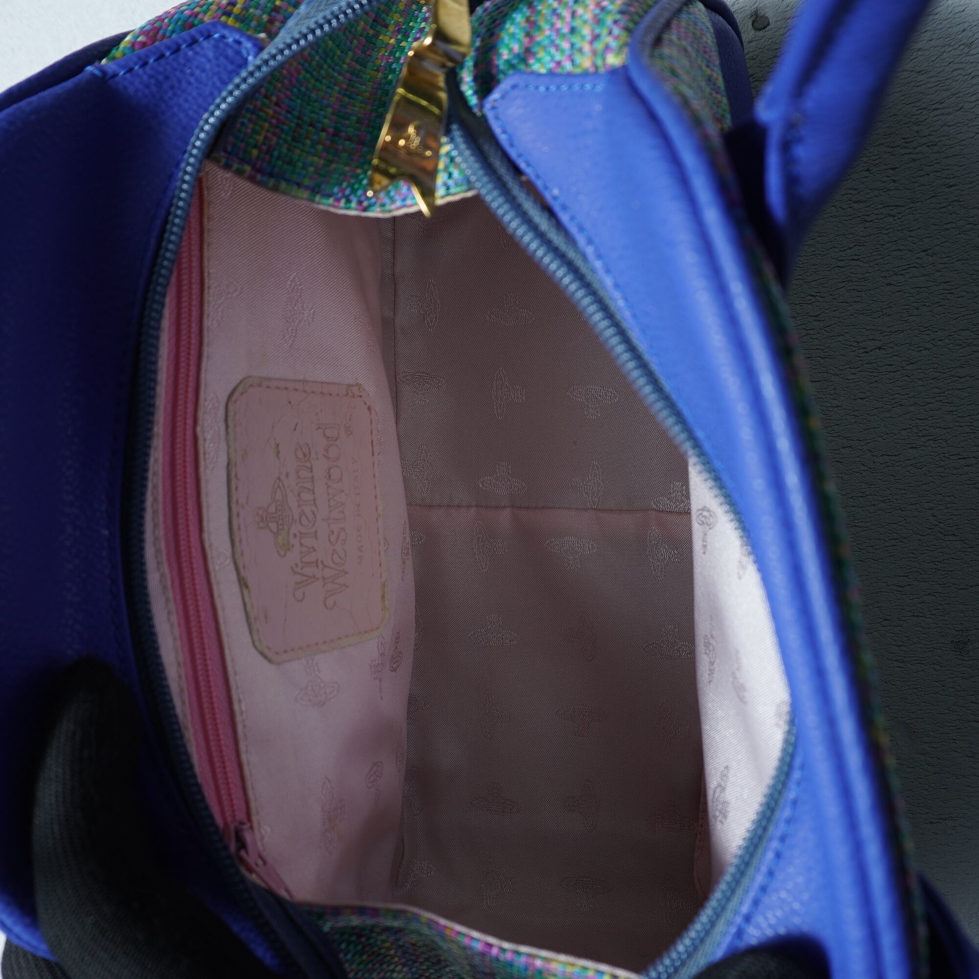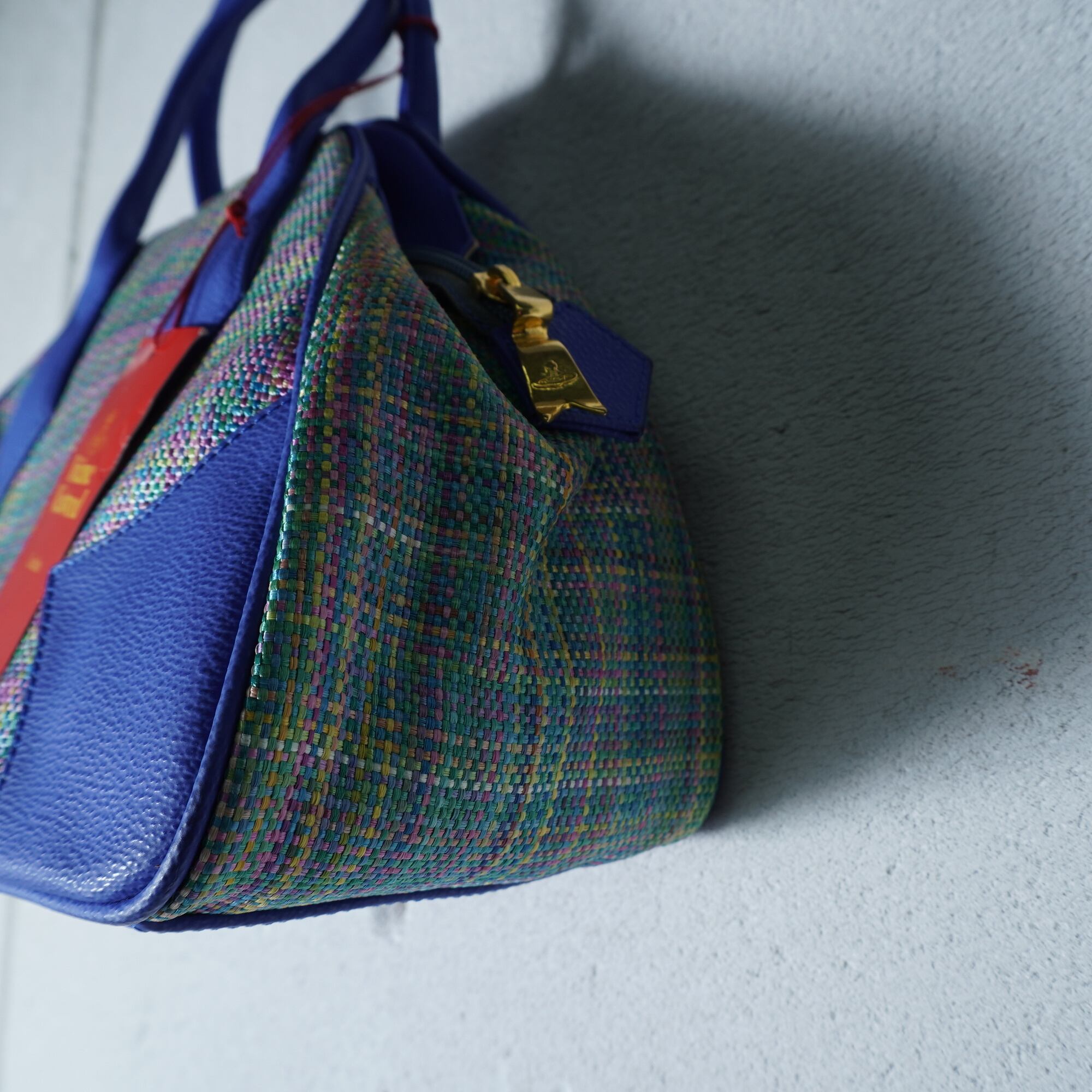【Vivienne Westwood】ヴィヴィアンウエストウッド オーブロゴ マルチ織ハンドバッグ blue&green&yellow