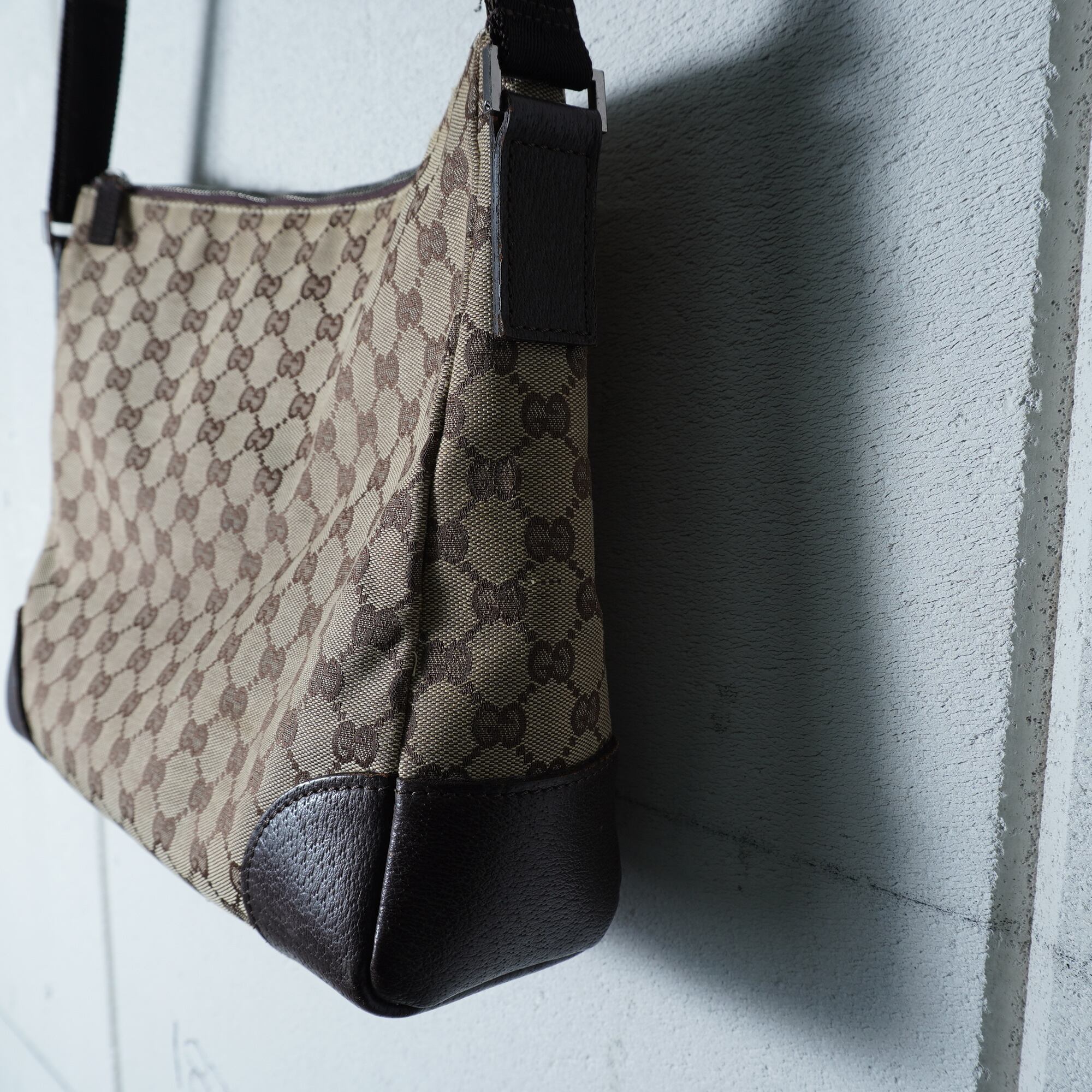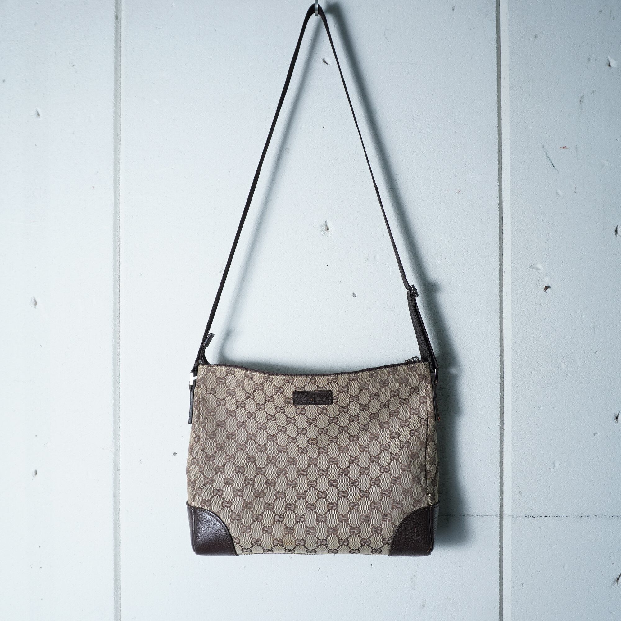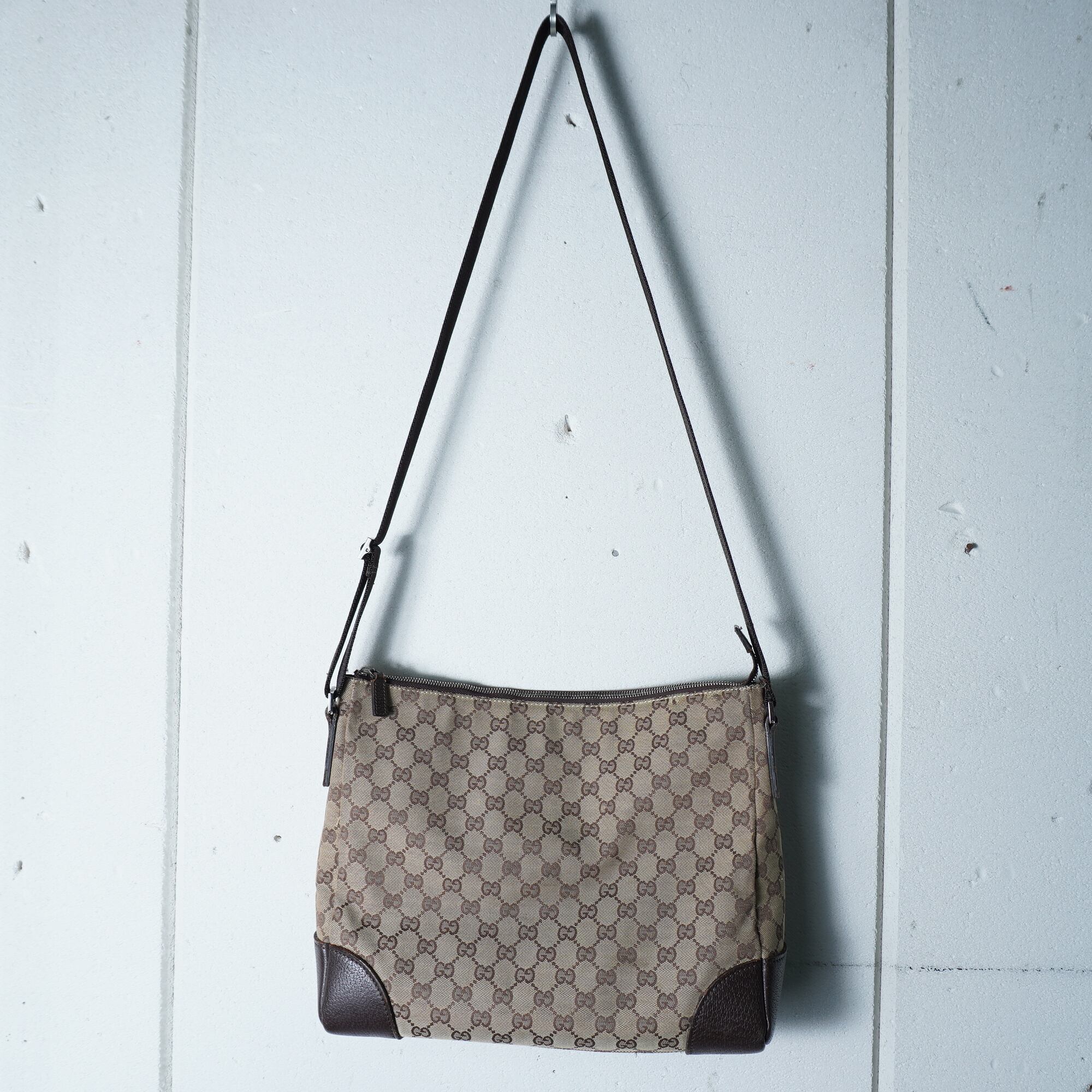 【GUCCI】グッチ GG柄キャンバス・レザーワンショルダーバッグ brown&beige