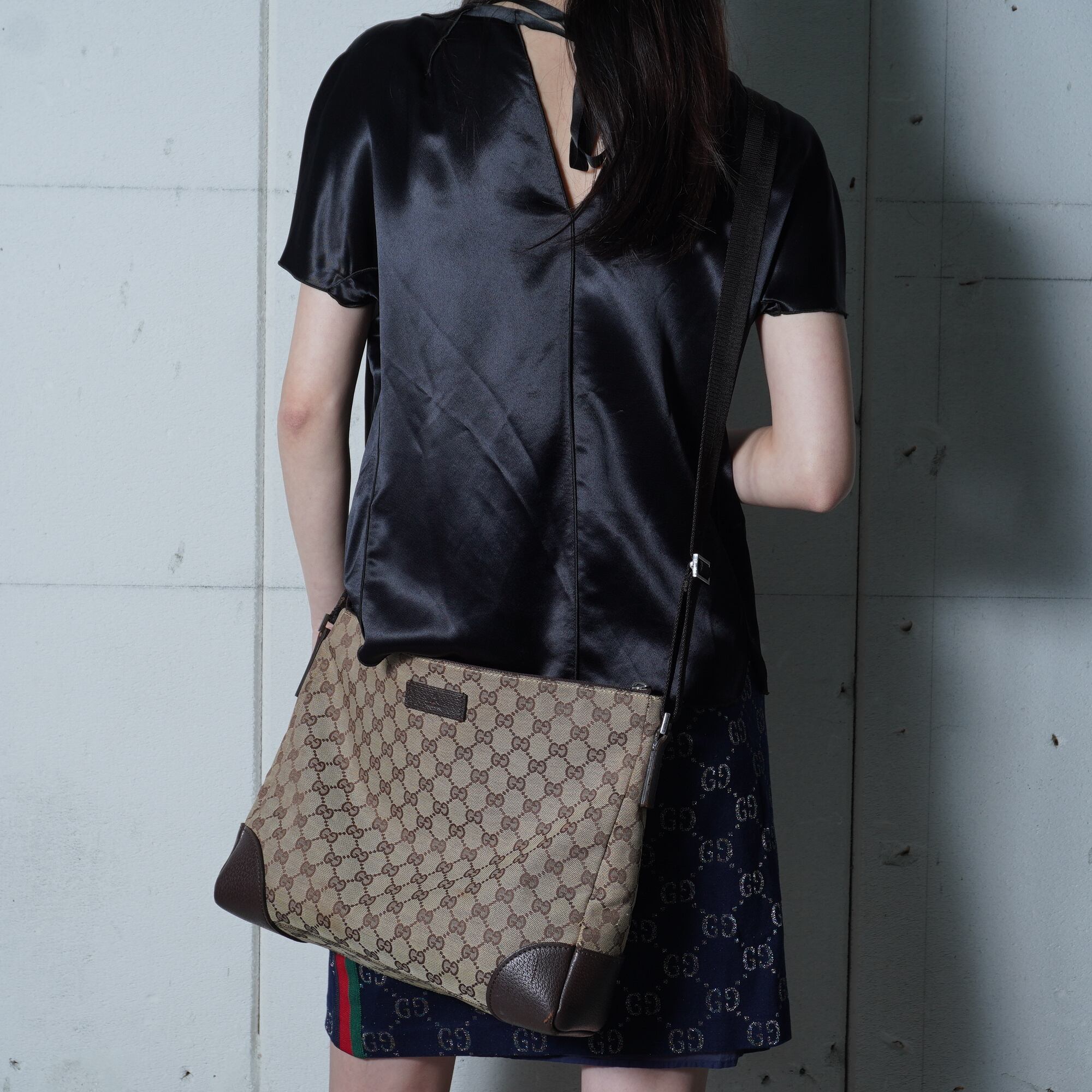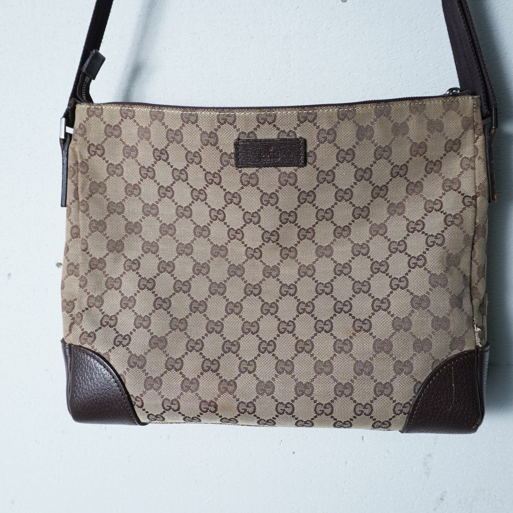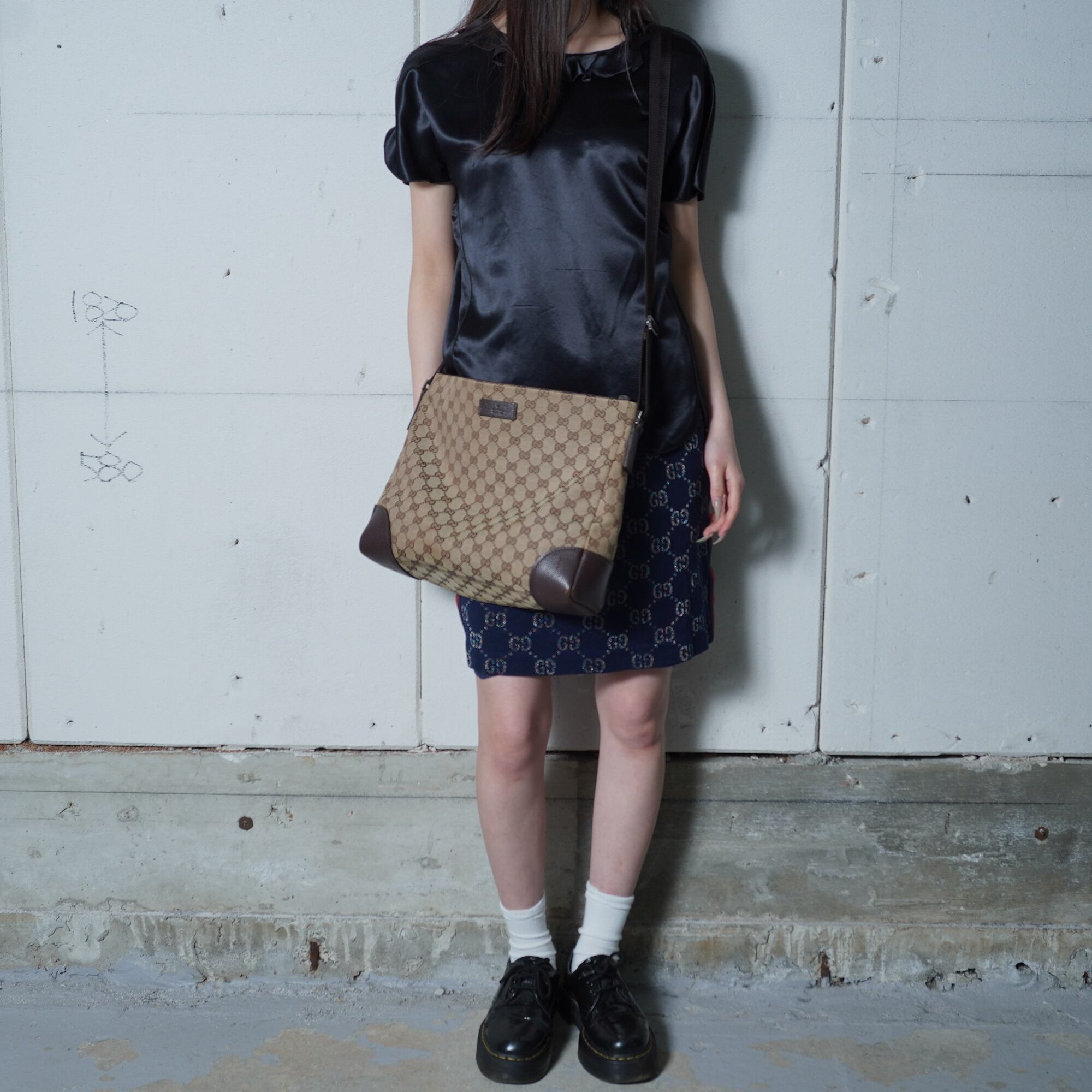 【GUCCI】グッチ GG柄キャンバス・レザーワンショルダーバッグ brown&beige