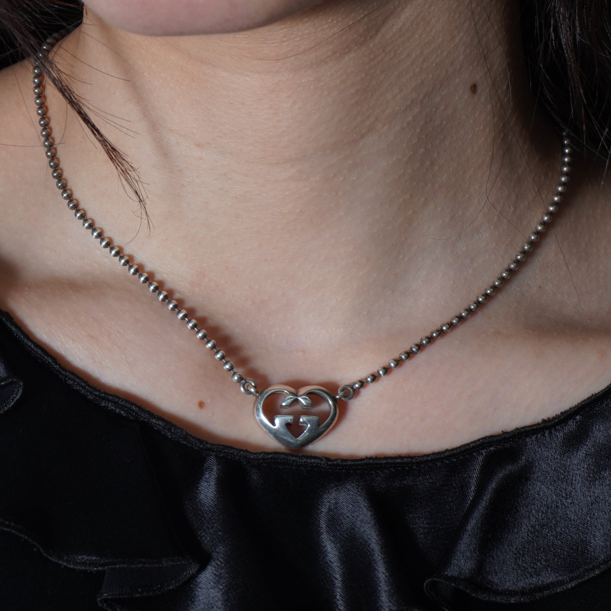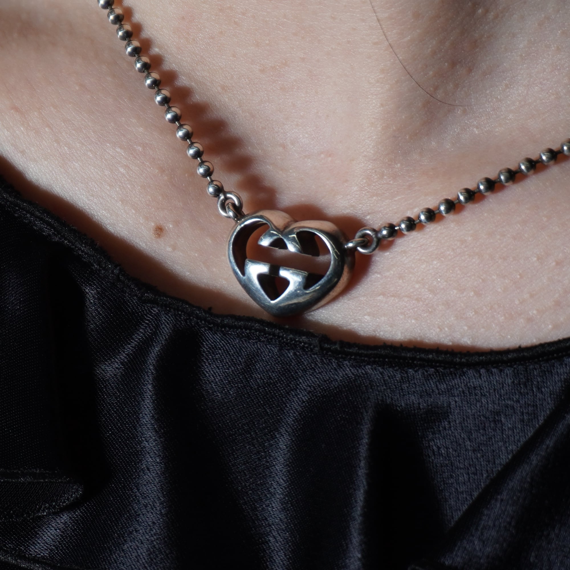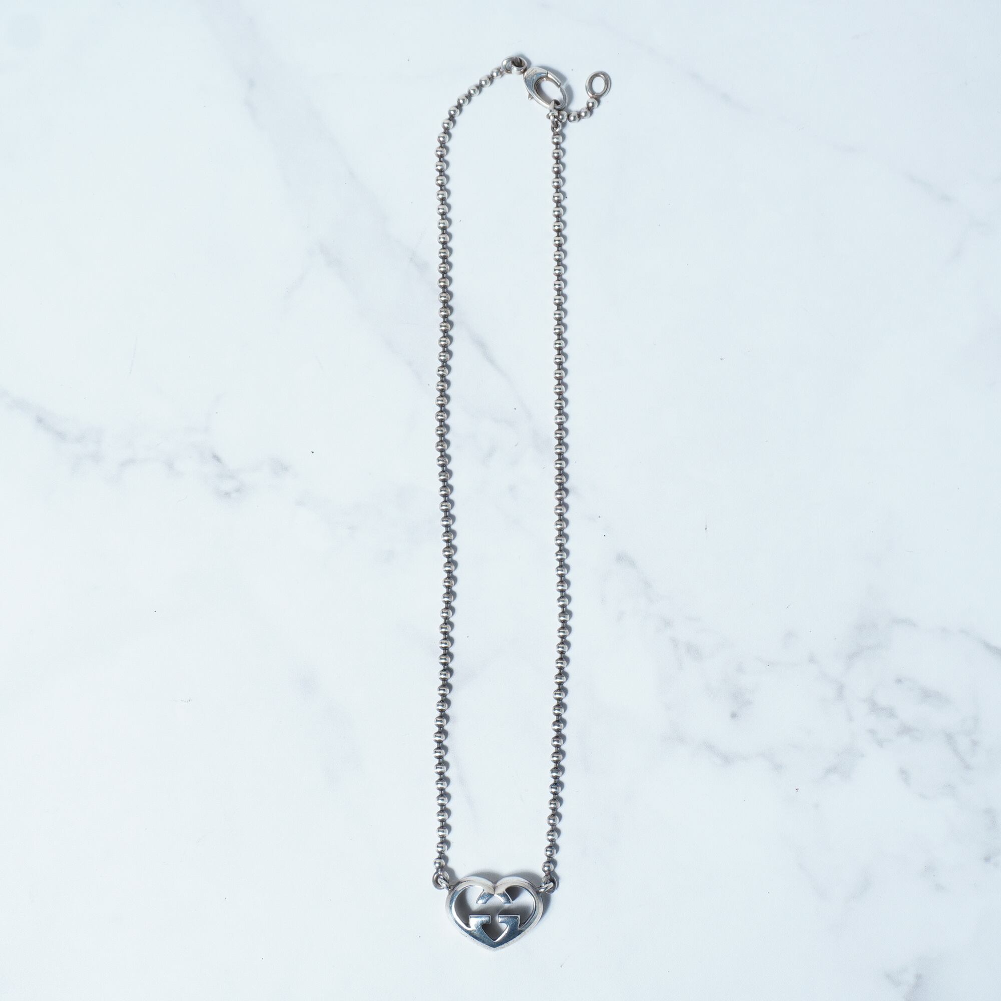 【GUCCI】グッチ シルバー925 ハートインターロッキンGネックレス