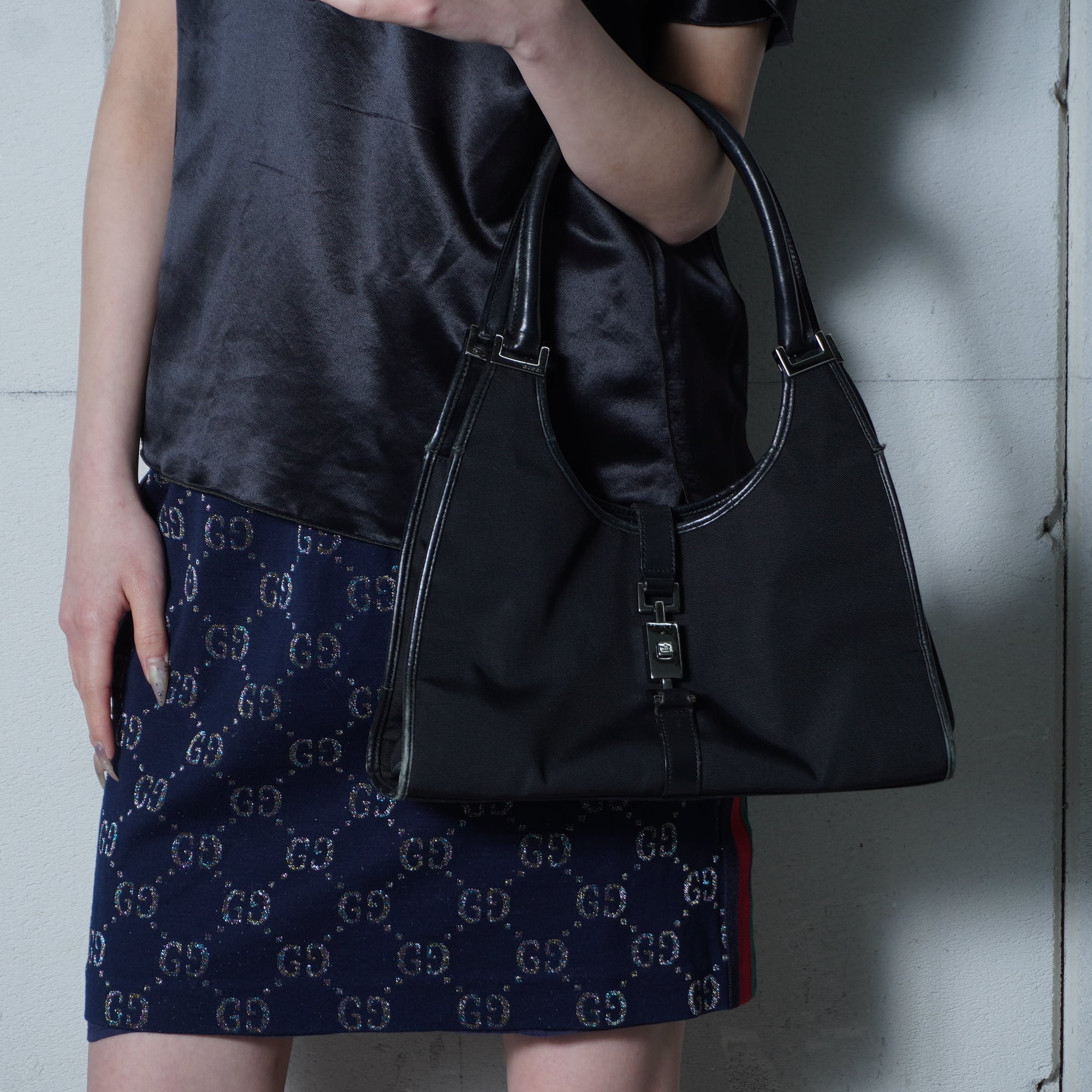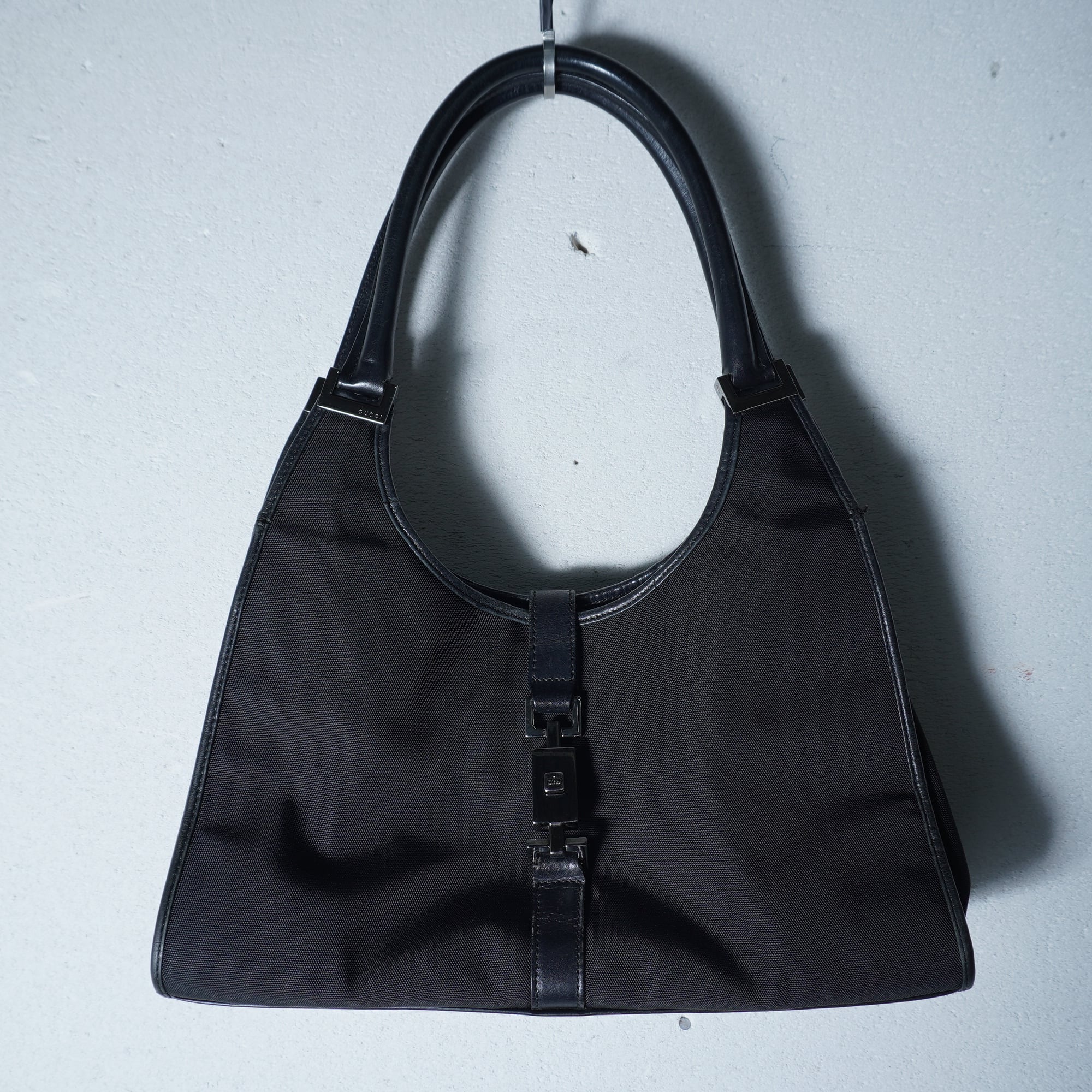 【GUCCI】グッチ ジャッキーキャンバス・レザーハンドバッグ black