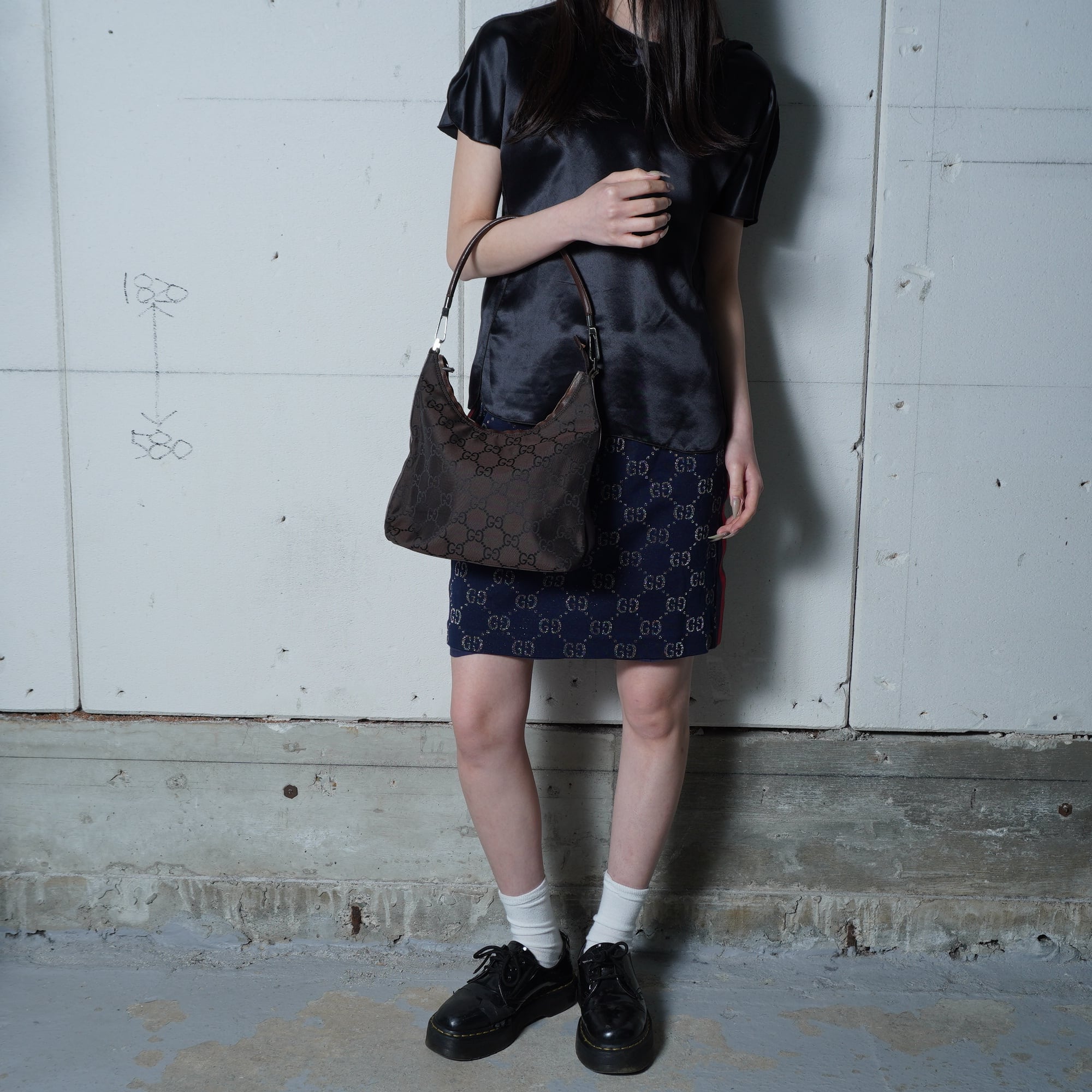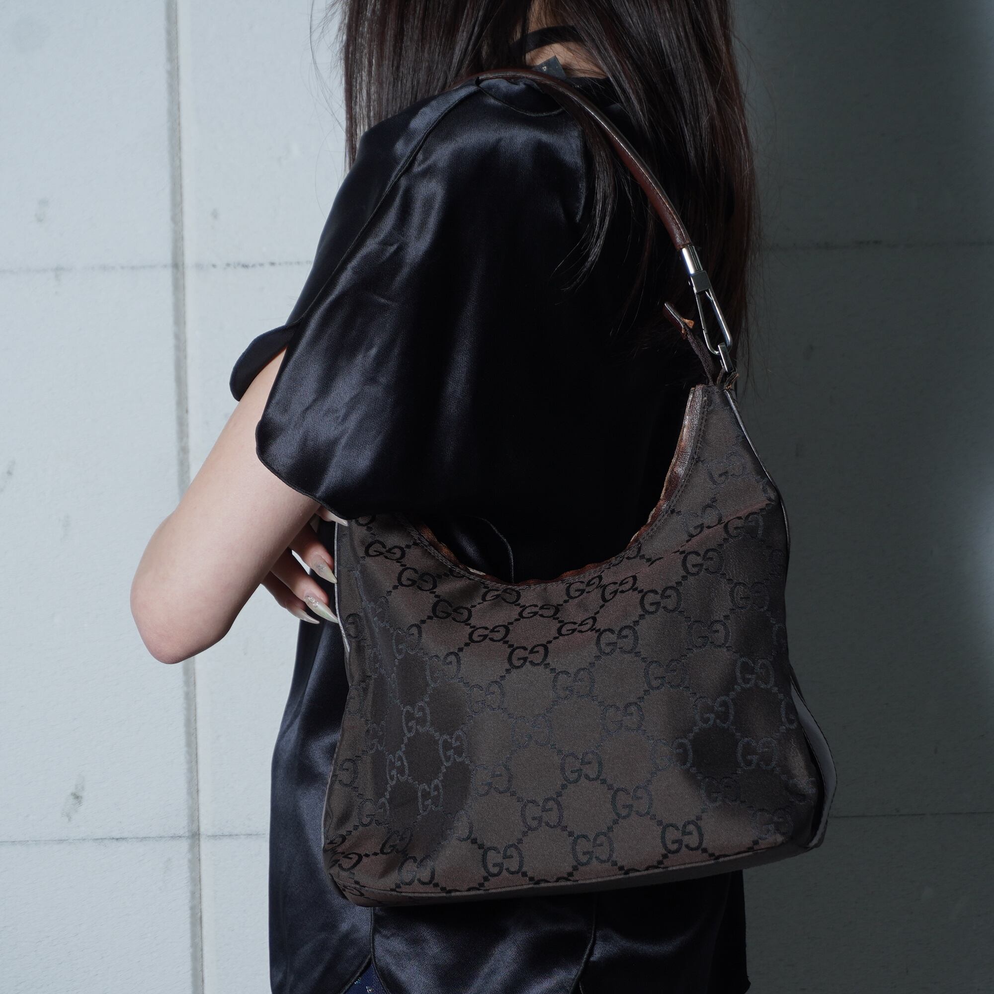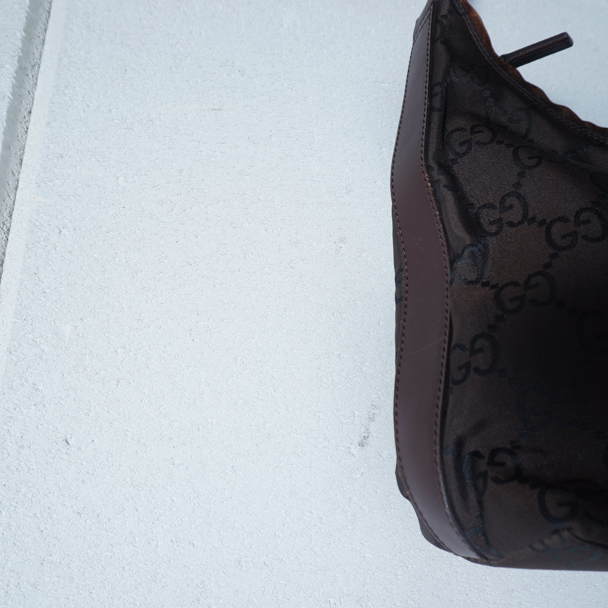 【GUCCI】グッチ GG柄キャンバス・レザーワンショルダーバッグ brown