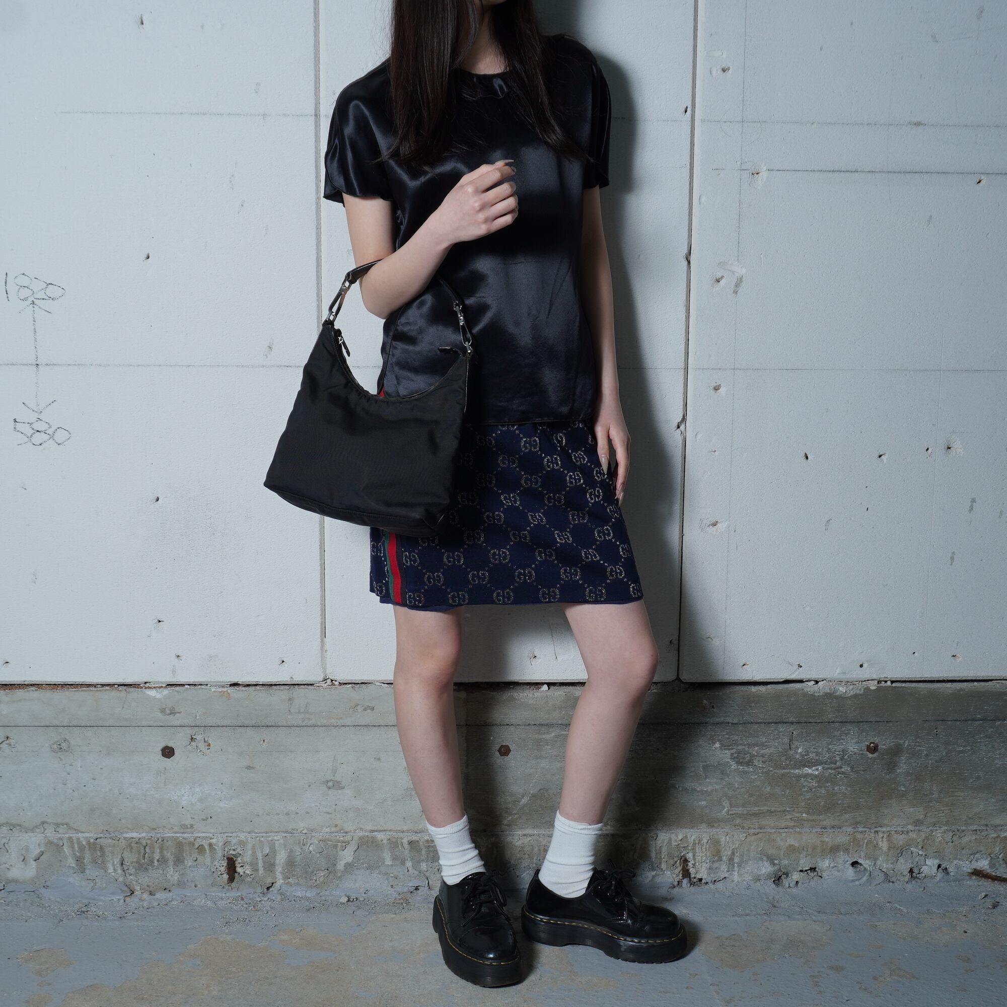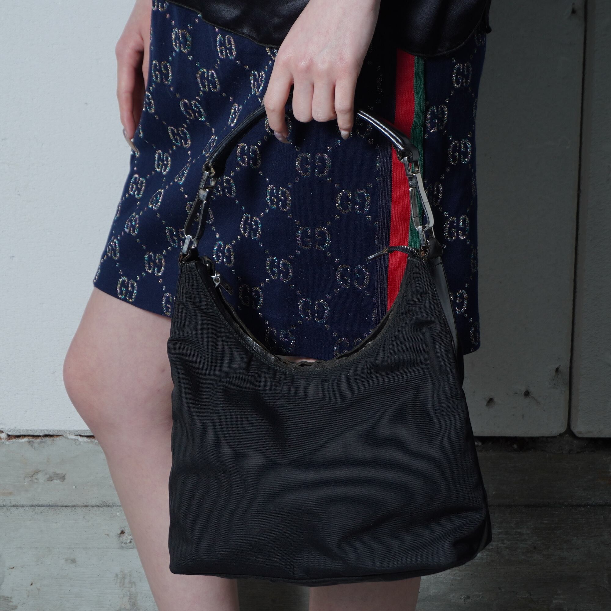 【GUCCI】グッチ ロゴ金具ナイロン・レザーワンショルダーバッグ black