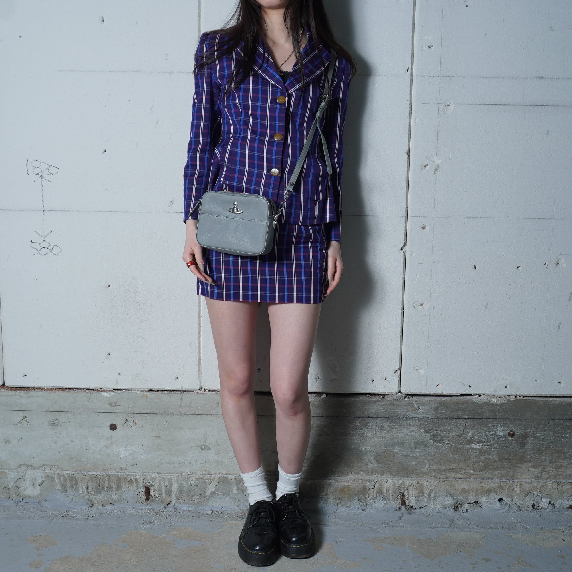 【Vivienne Westwood】ヴィヴィアンウエストウッド オーブロゴ レザーショルダーバッグ gray