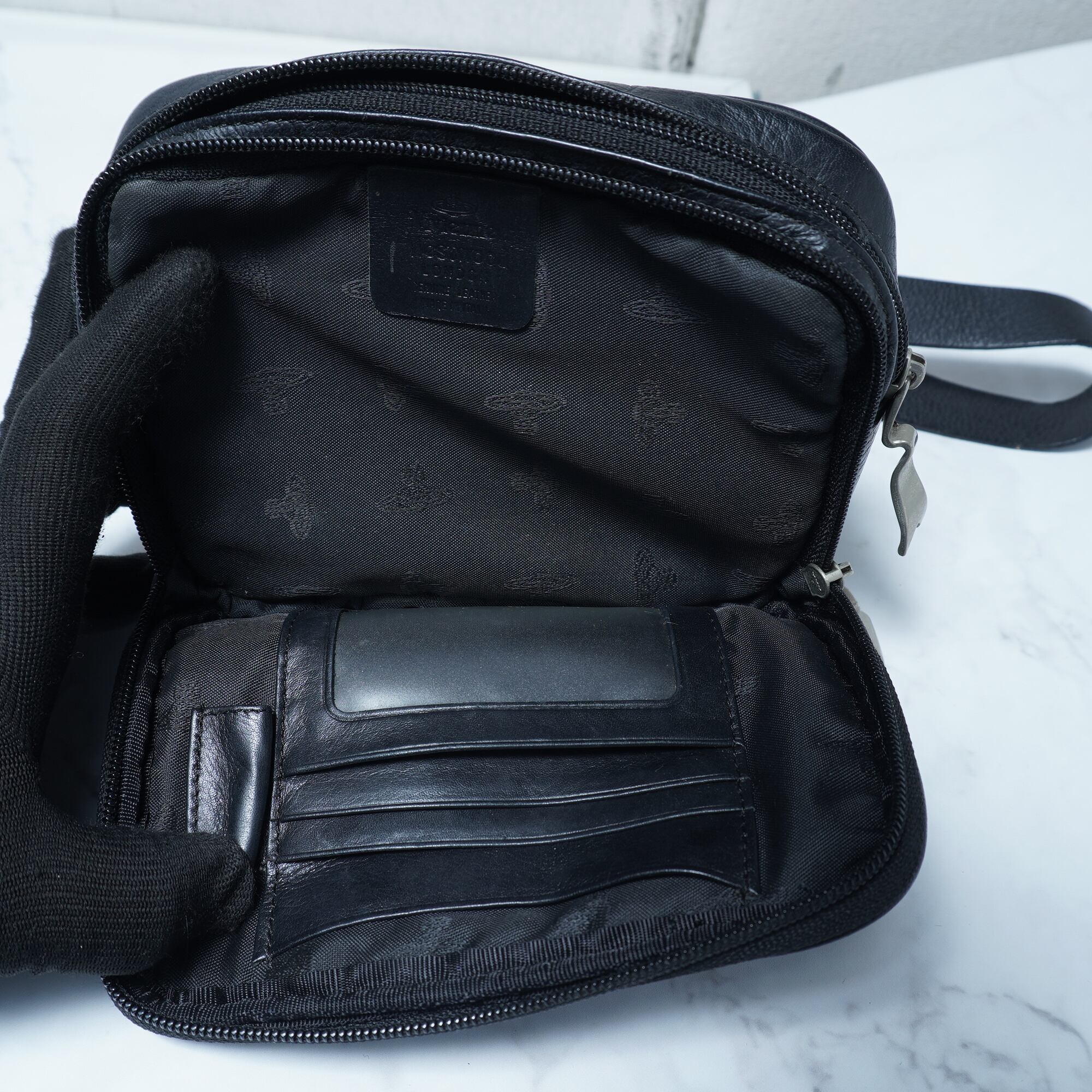 【Vivienne Westwood】ヴィヴィアンウエストウッド エンボスオーブロゴリアルレザーウエストバッグ black