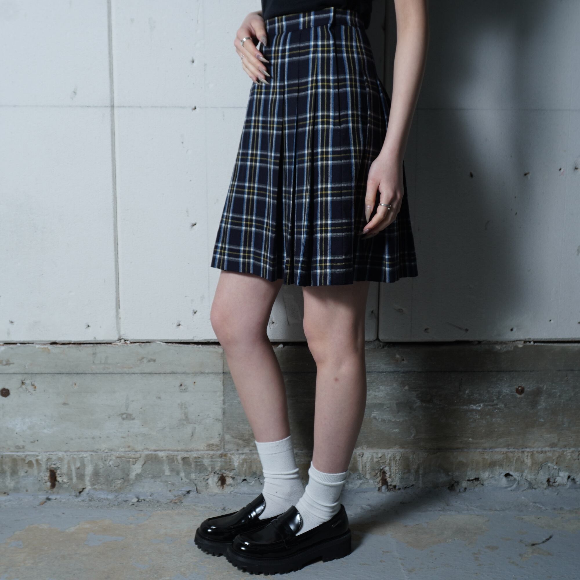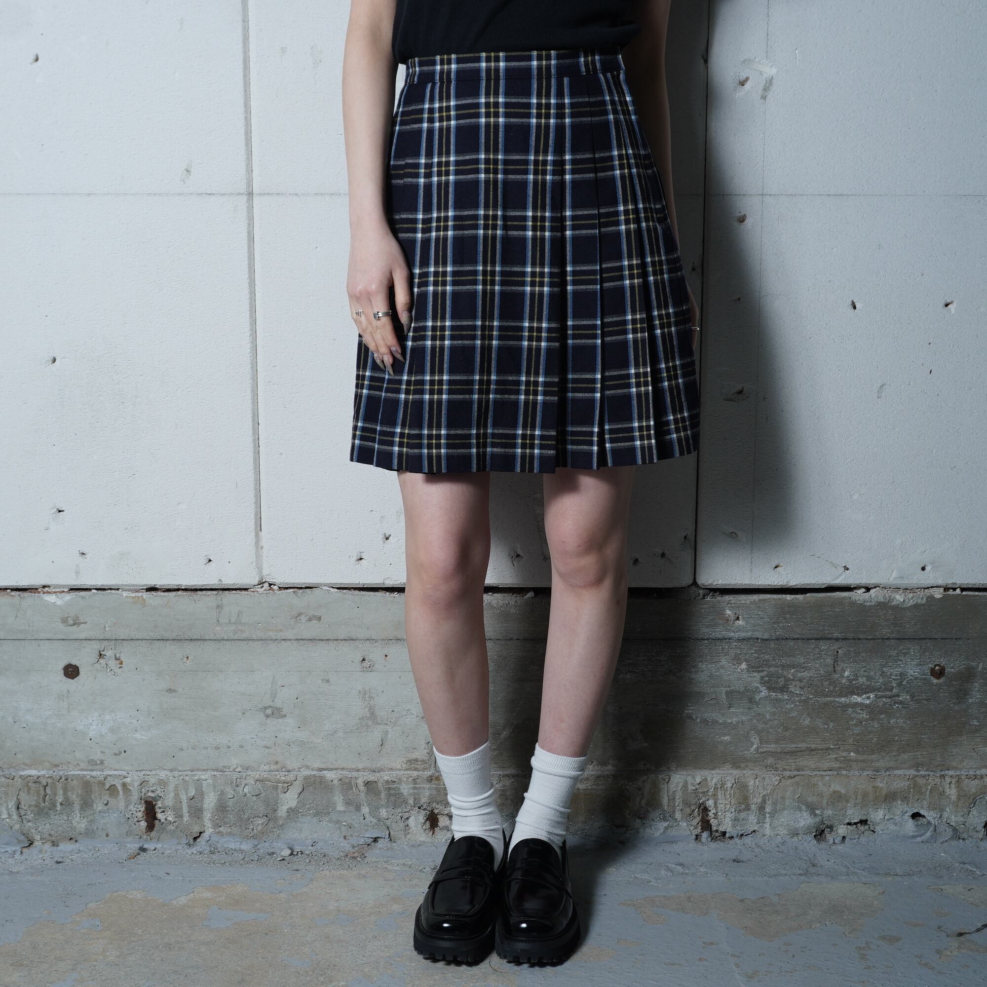 【BURBERRY】バーバリー WOOL100%ノヴァチェックプリーツスカート navy
