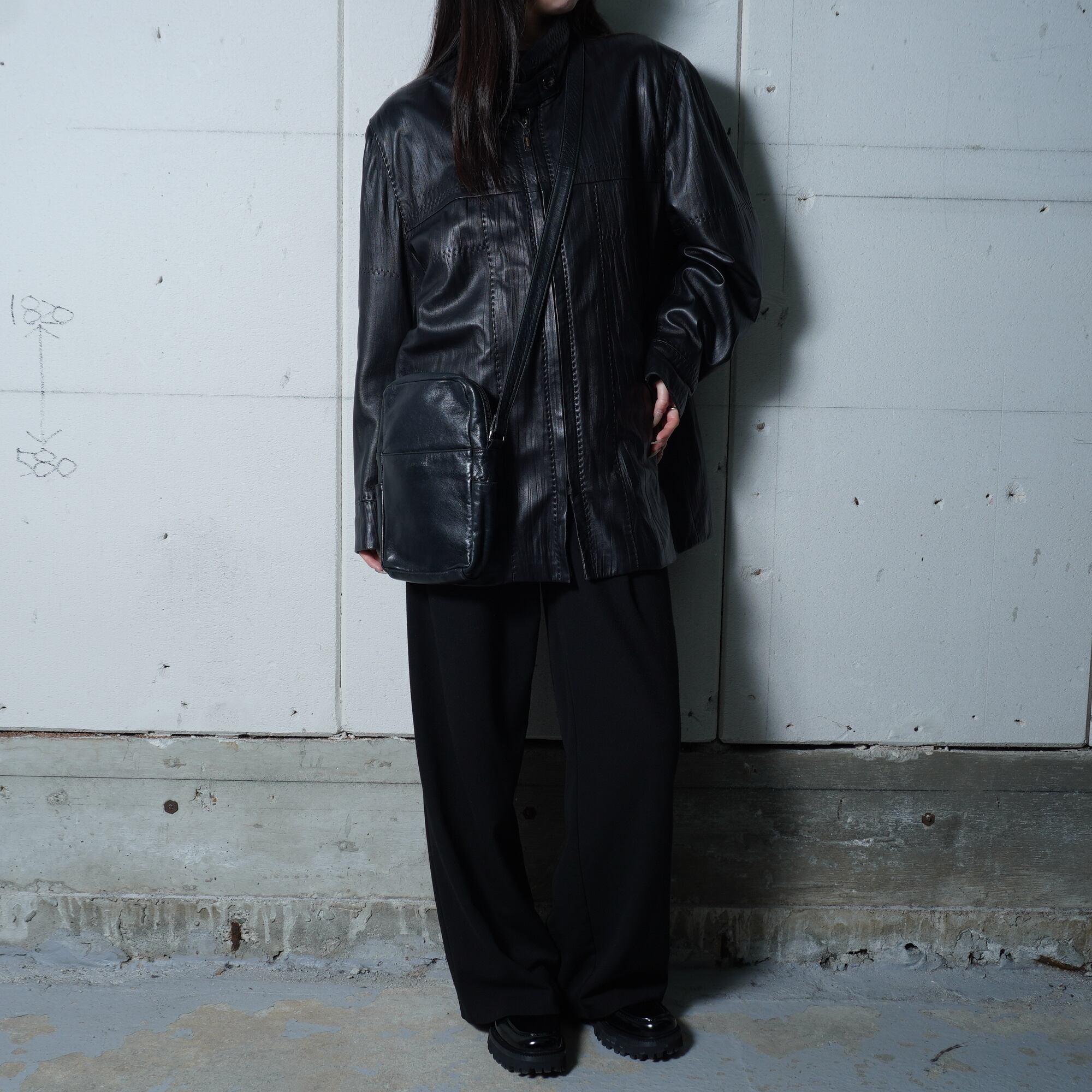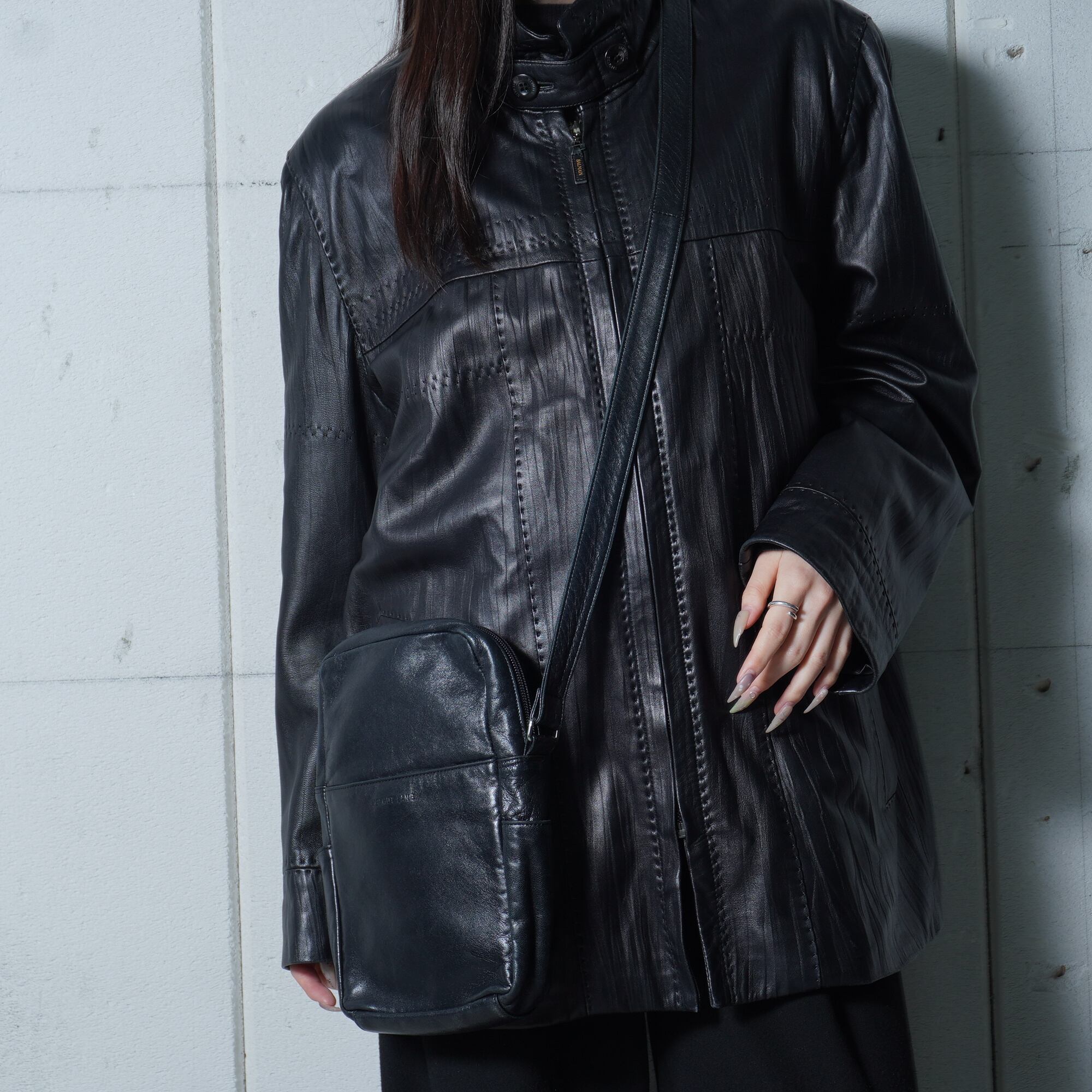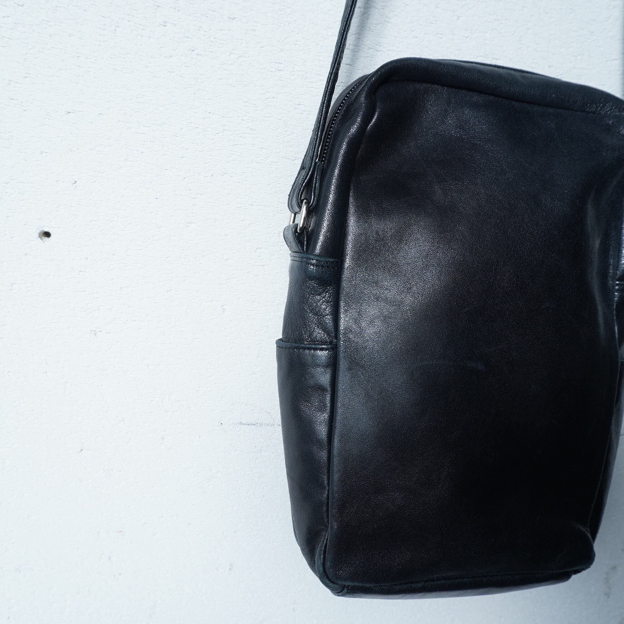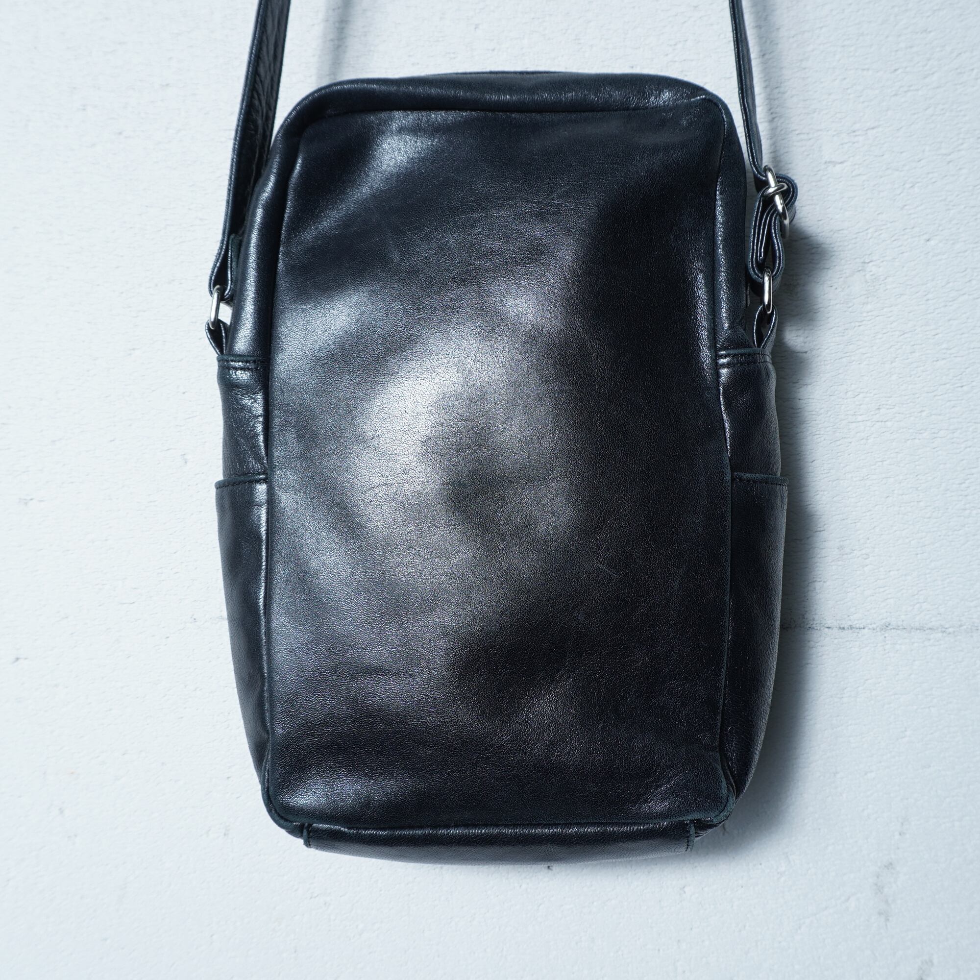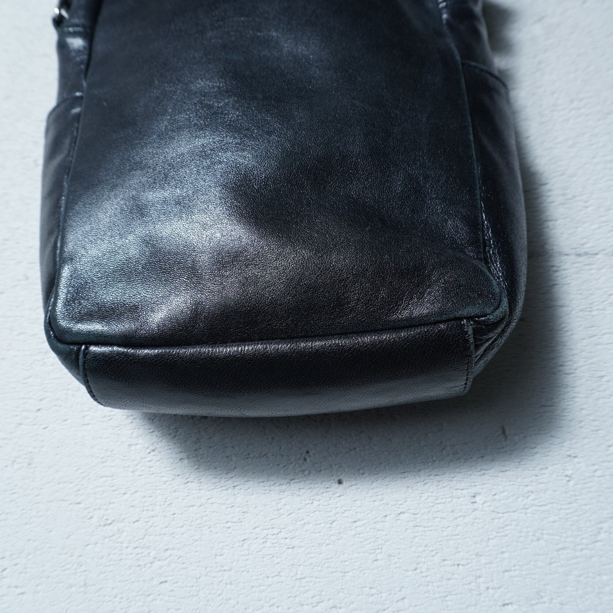 【Helmut Lang】ヘルムートラング 本人期 ロゴ入レザーショルダーバッグ black
