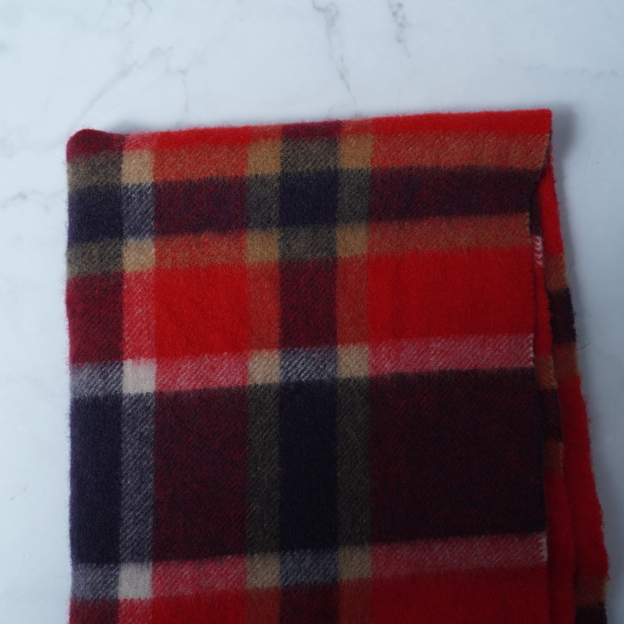 【Vivienne Westwood】ヴィヴィアンウエストウッド オーブロゴ刺繡カシミヤタータンチェックフリンジマフラー red&navy