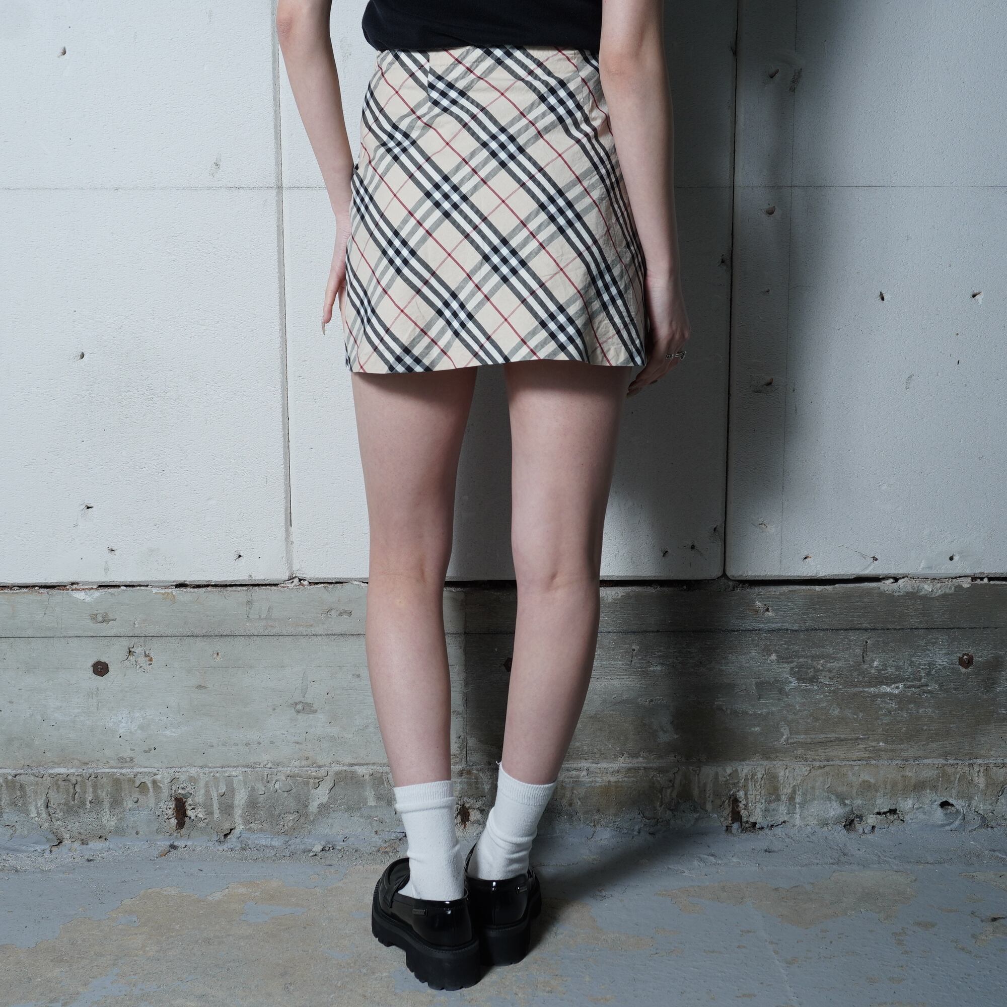 【BURBERRY】バーバリー チェックフレアミニスカート beige
