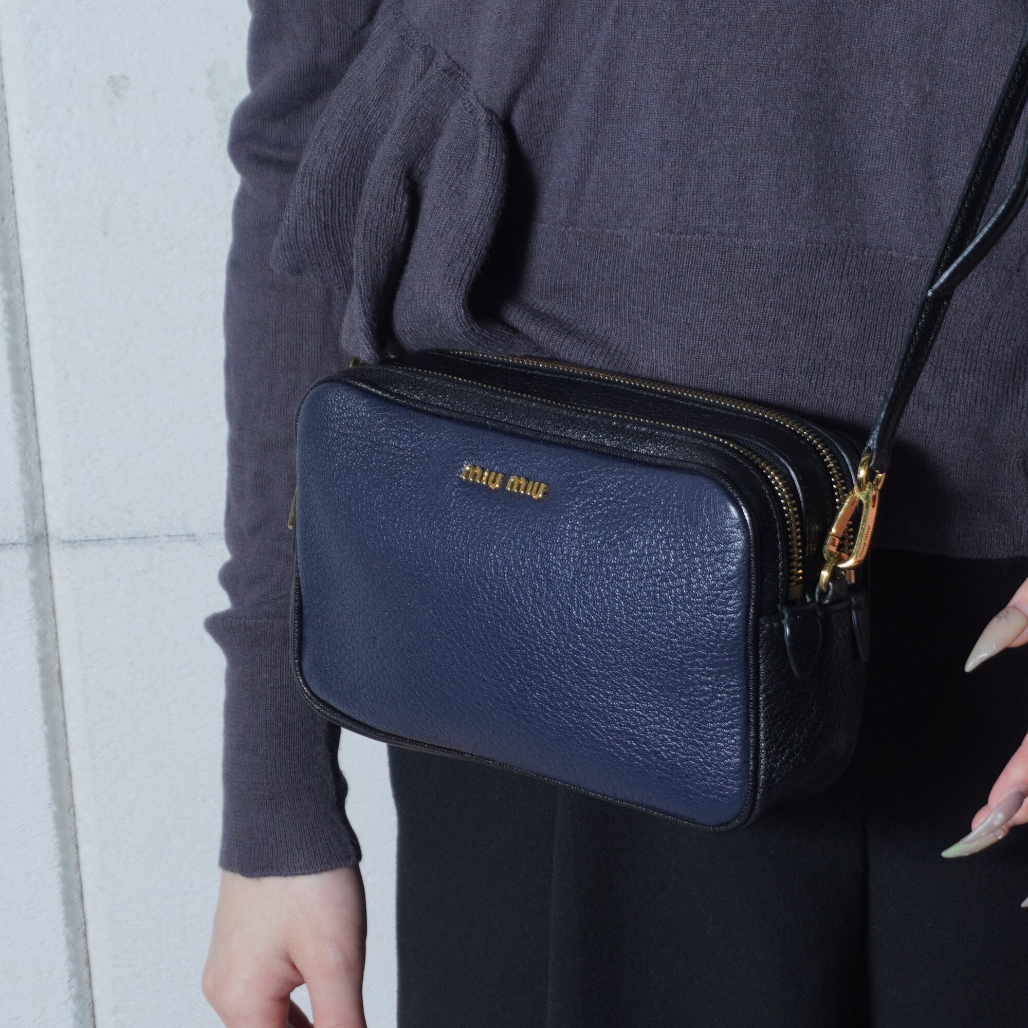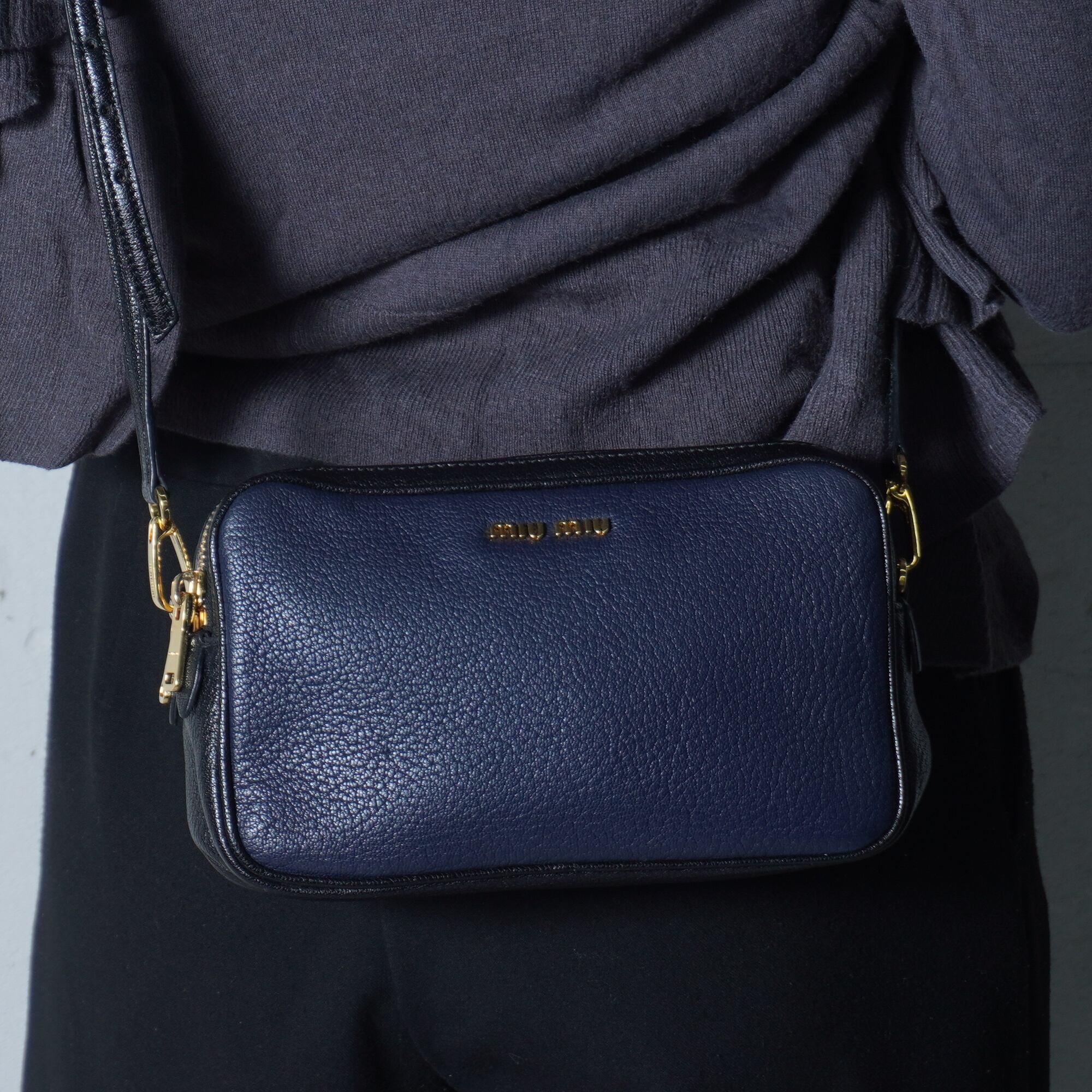 【miu miu】ミュウミュウ ロゴ入 バイカラーレザーショルダーバッグ