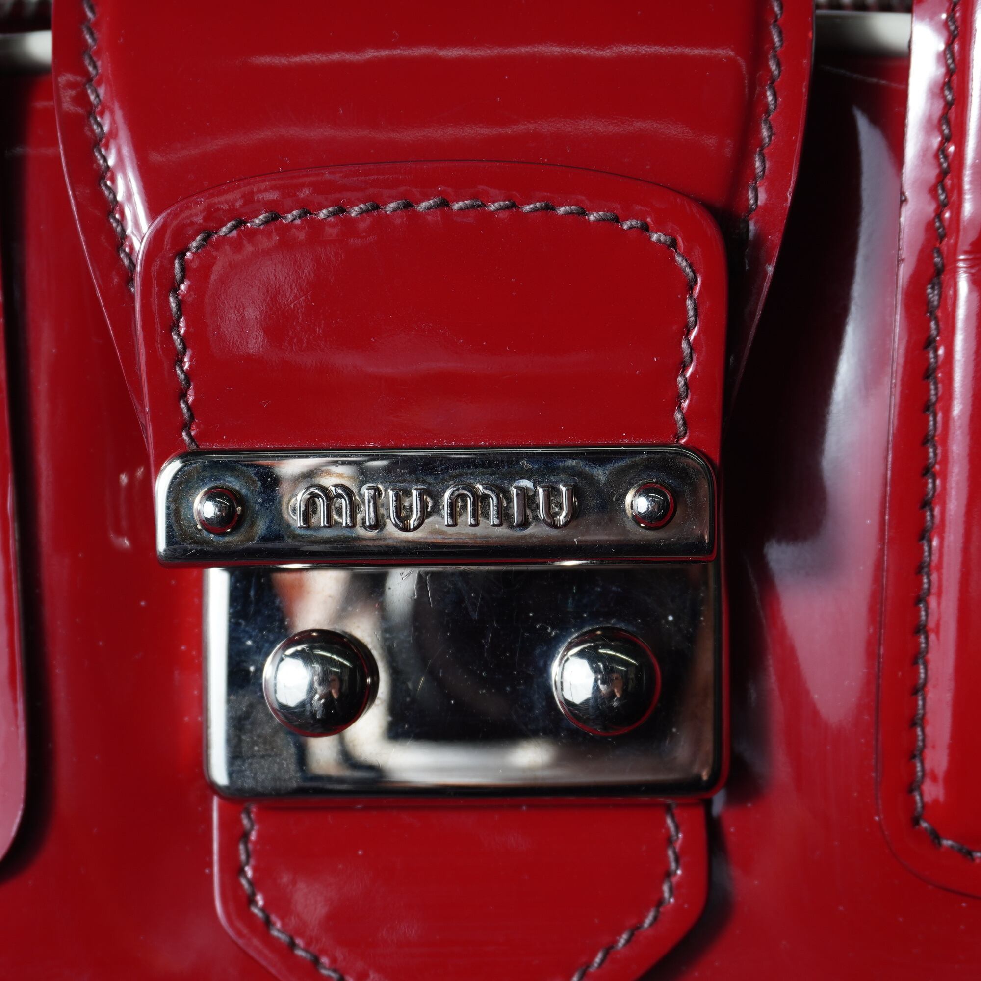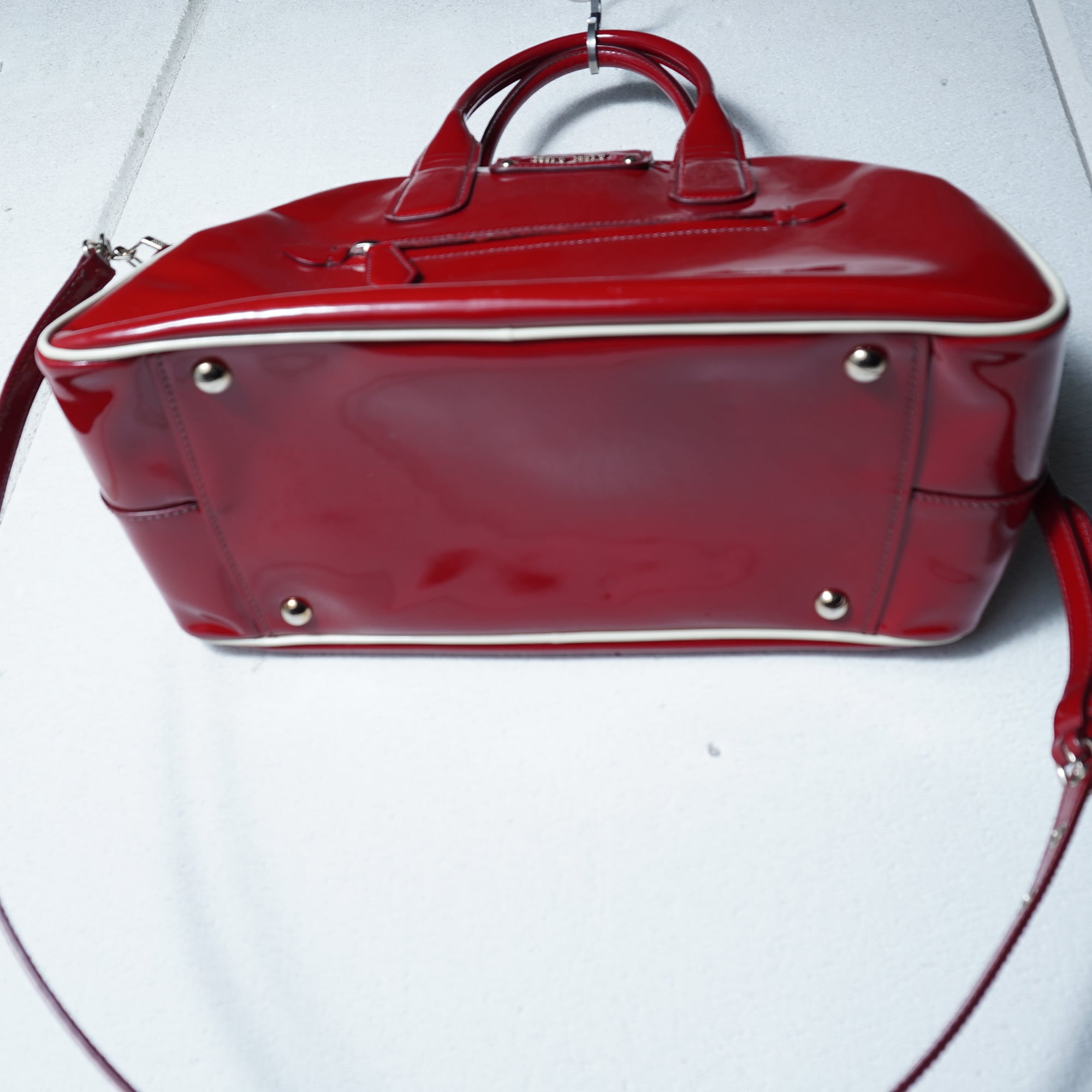 【miu miu】ミュウミュウ ロゴ入エナメルハンドバッグ red