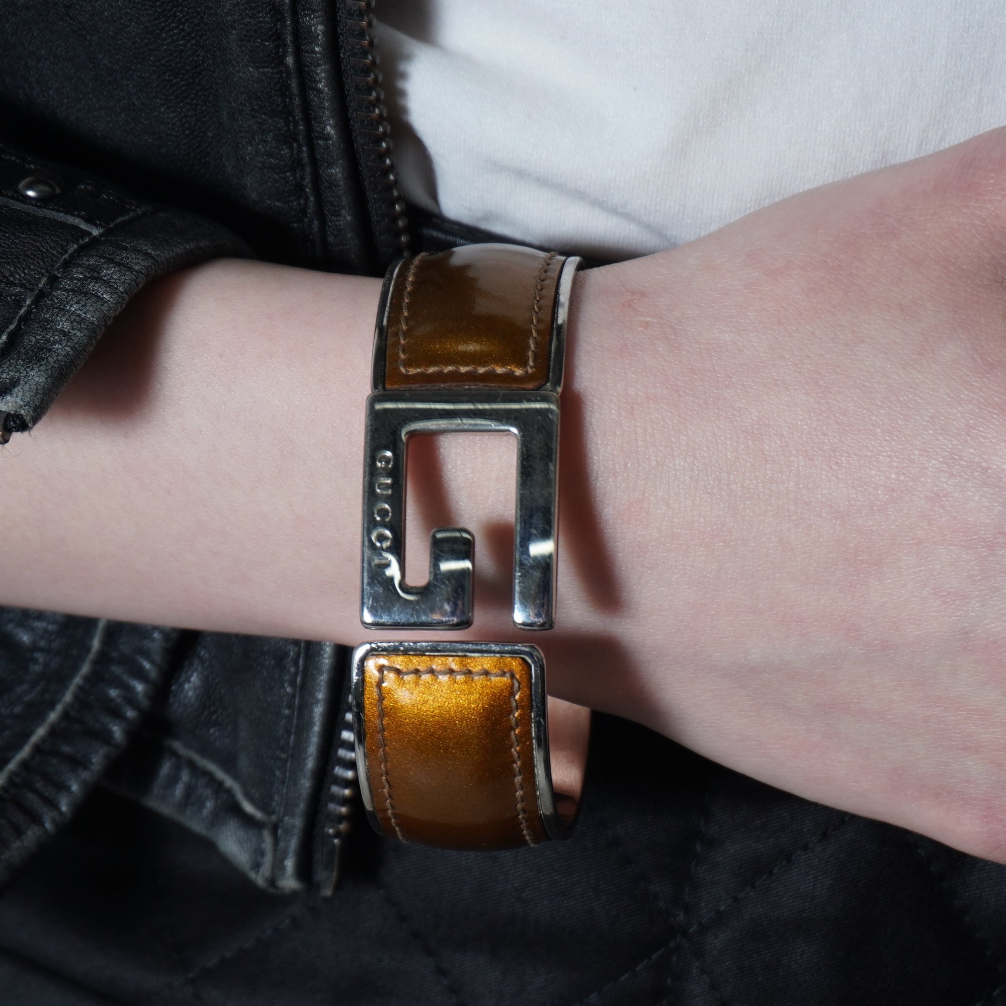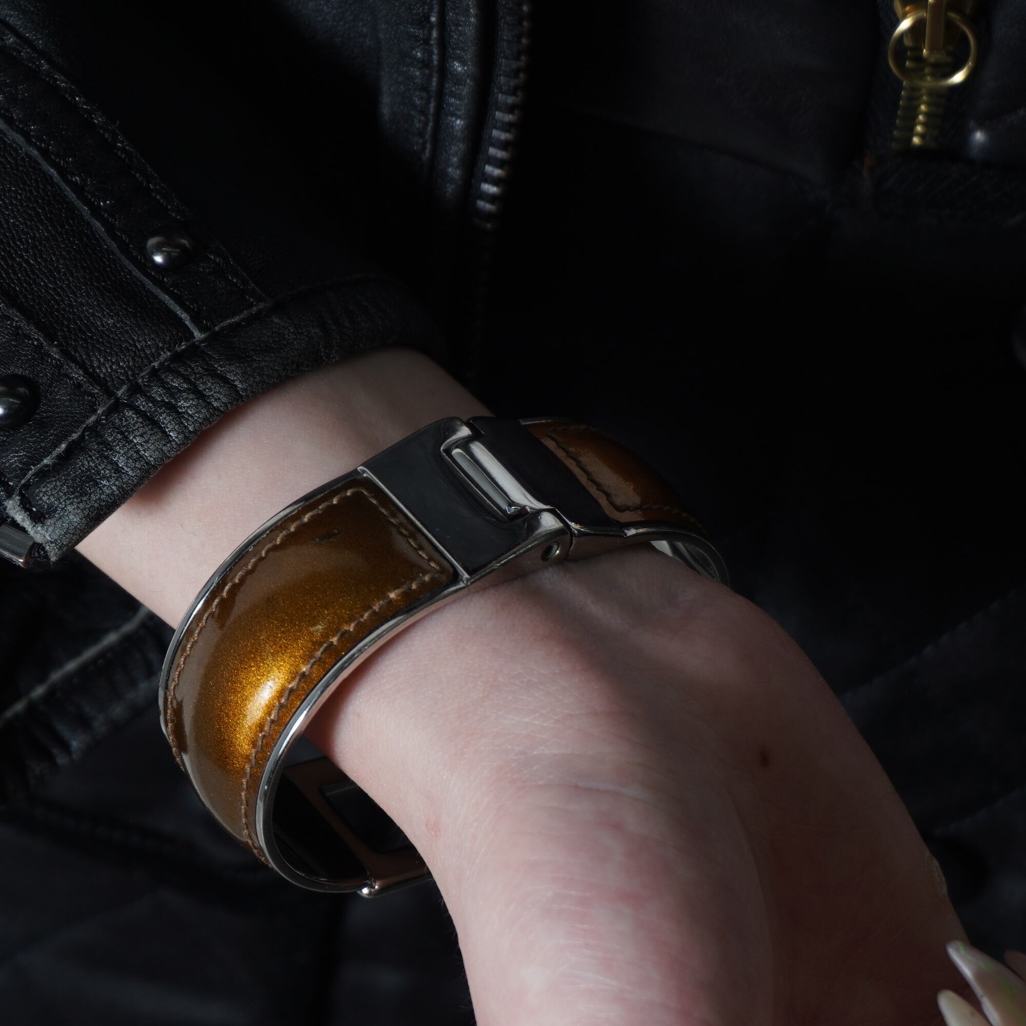 【GUCCI】グッチ Gロゴバックルエナメルバングル silver & gold
