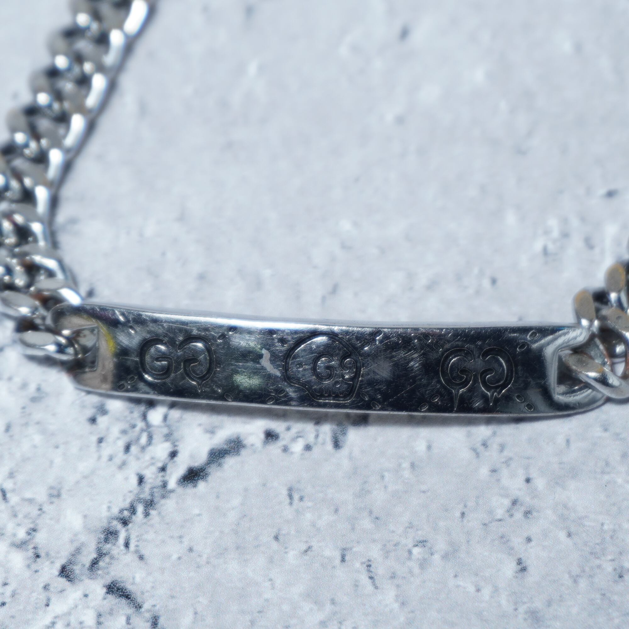 【GUCCI】グッチ シルバー925 スカルGGロゴプレートチェーンブレスレット