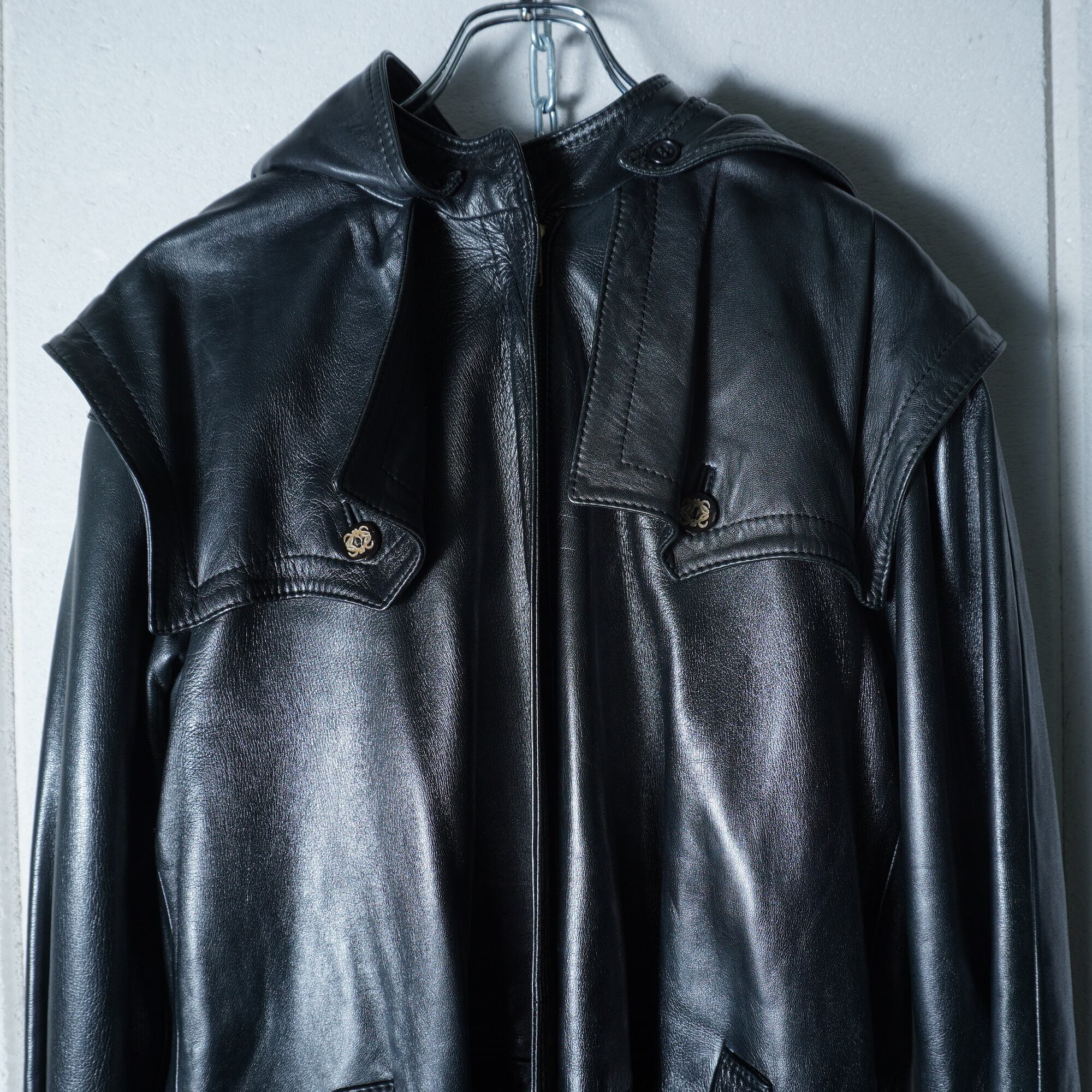 【LOEWE】ロエベ アナグラムロゴボタンナッパレザーロングコート black